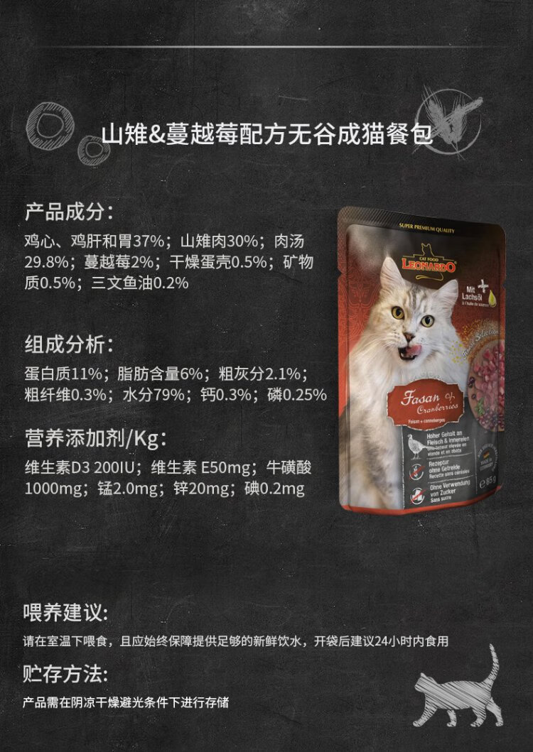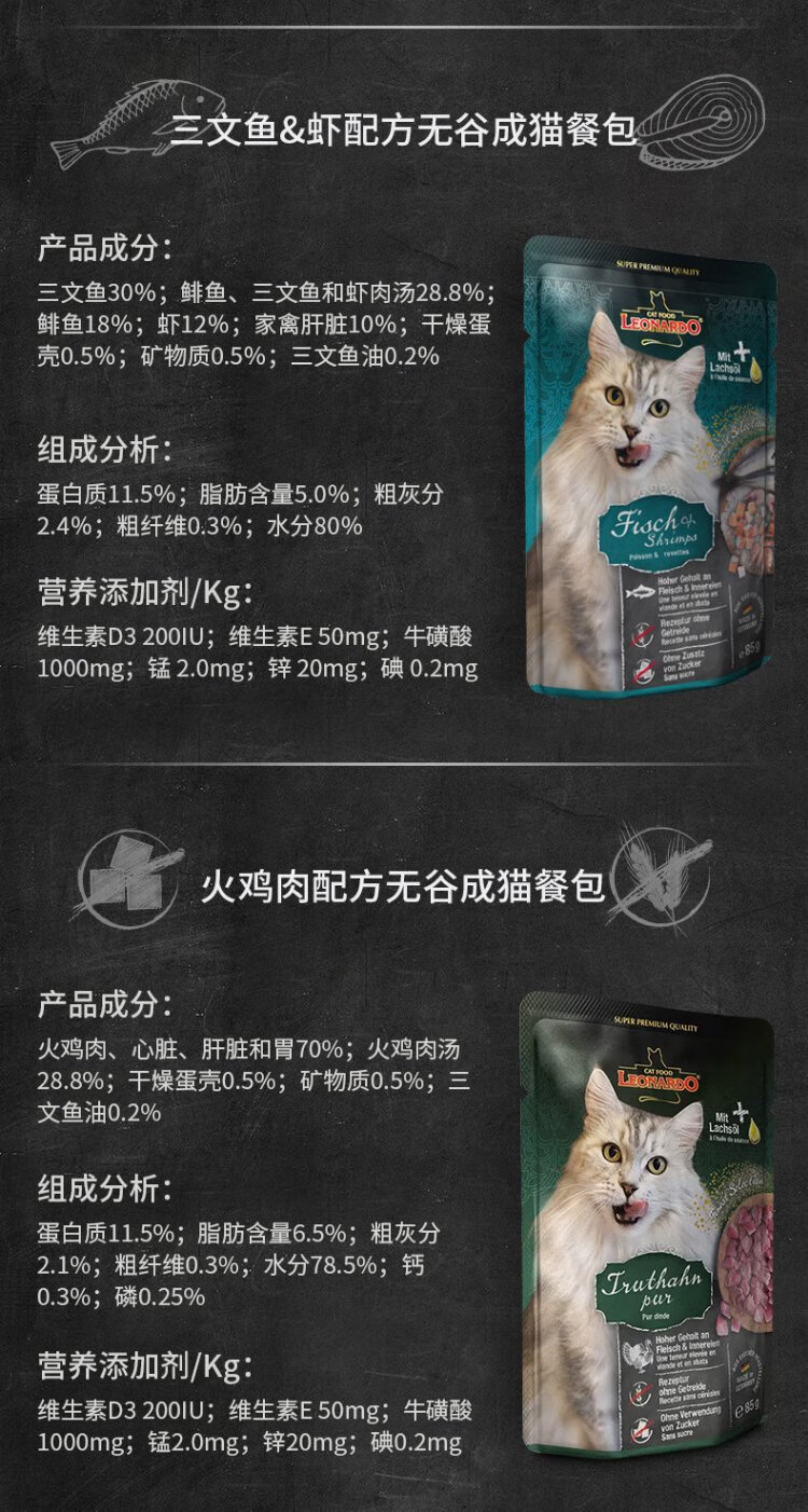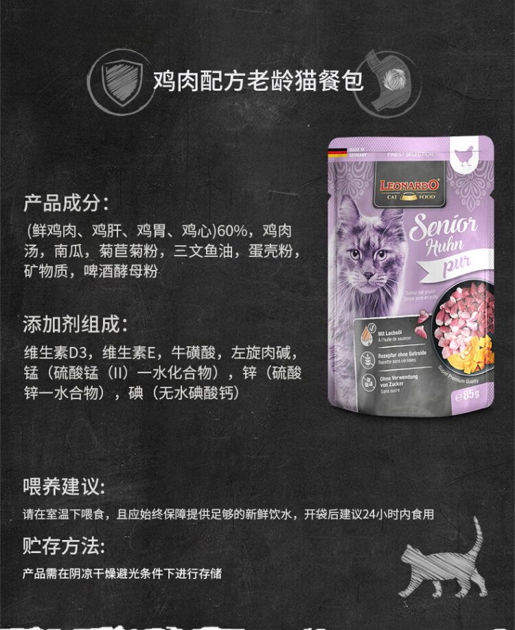 LEONARDO Cat Meal Packs Cat Wet Food Imported from Germany Nutritional Staple Food Meal Packs for Adult Cats and Kittens Poultry Formula Adult Cat Meal Packs 85g*10 Bags