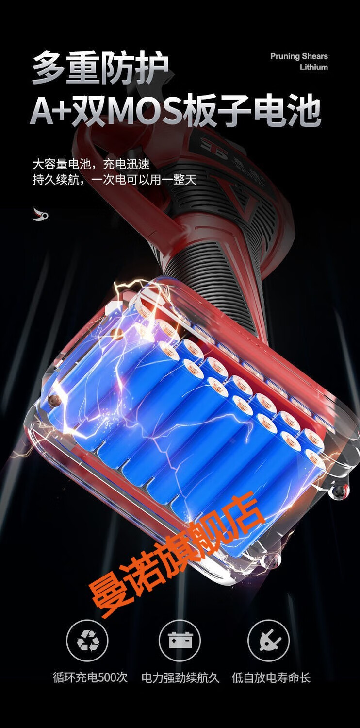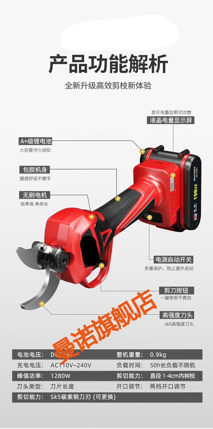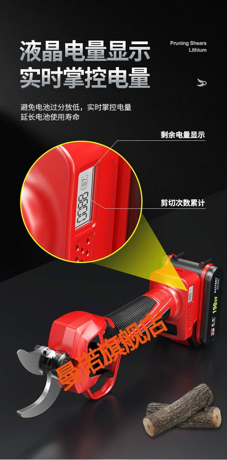 MANNUO electric pruning shears, branch pruning, wireless fruit tree shears, lithium battery rechargeable garden thick branch shears, heavy shears 5.0MM LCD version + dual batteries + free 2 knives