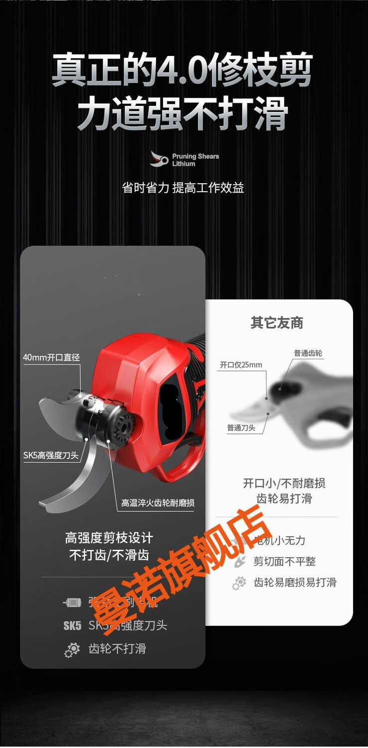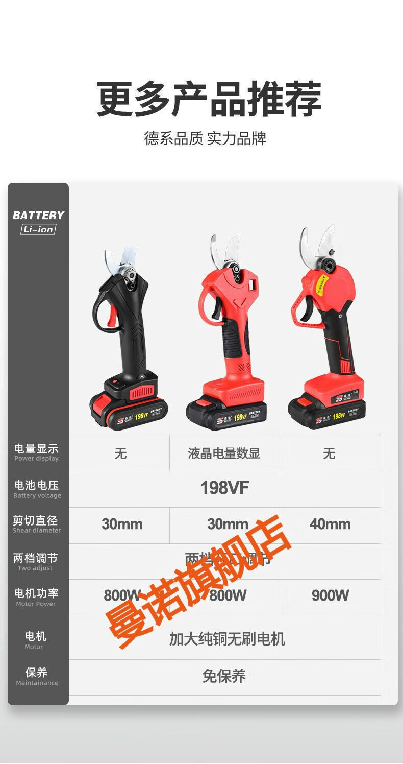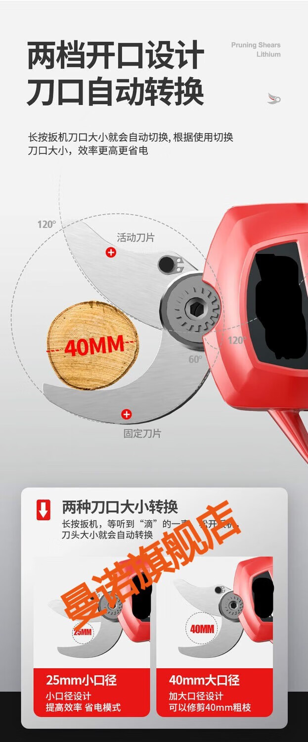 MANNUO electric pruning shears, branch pruning, wireless fruit tree shears, lithium battery rechargeable garden thick branch shears, heavy shears 5.0MM LCD version + dual batteries + free 2 knives