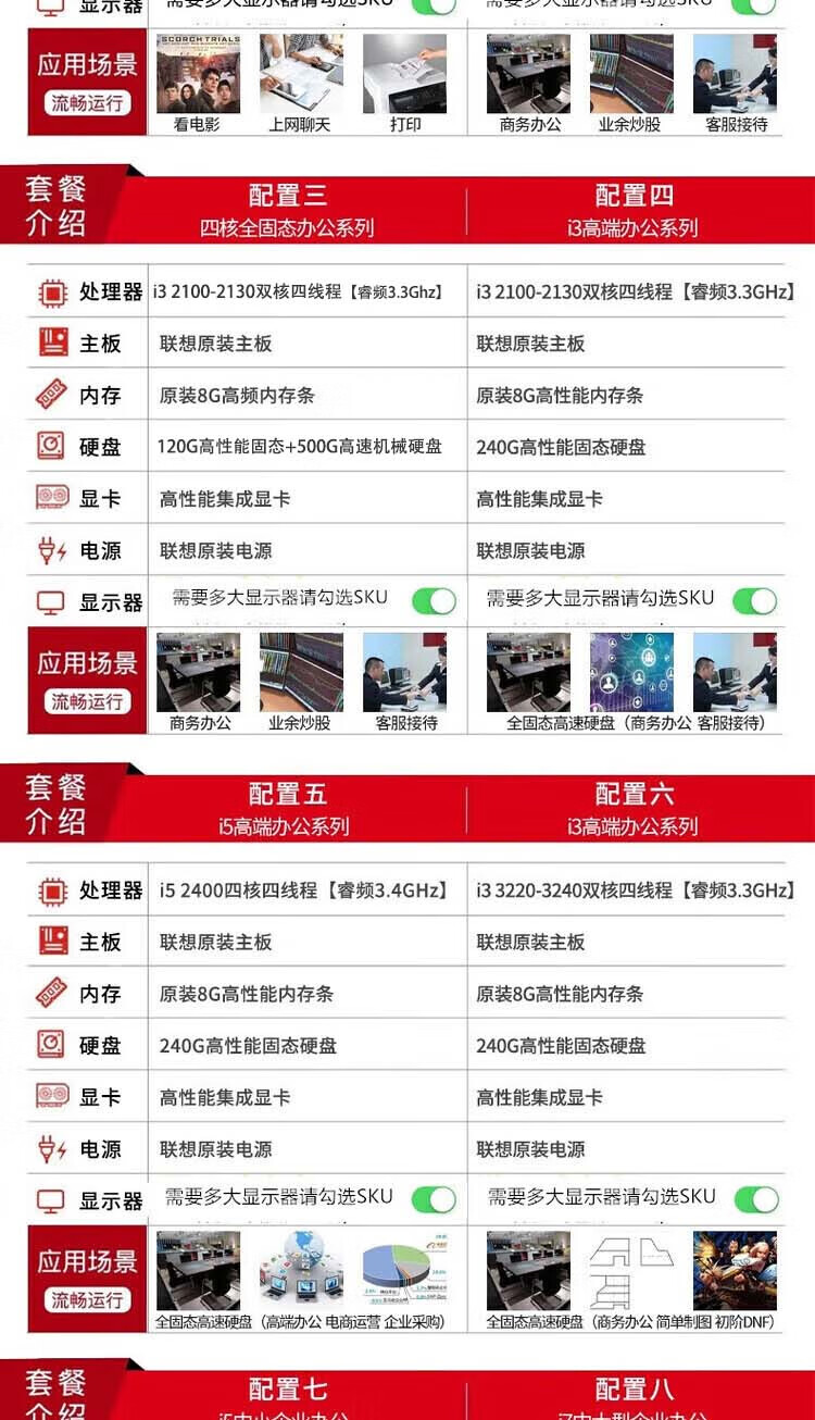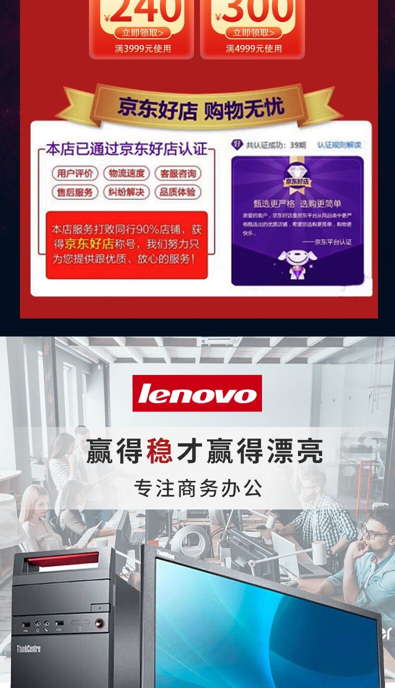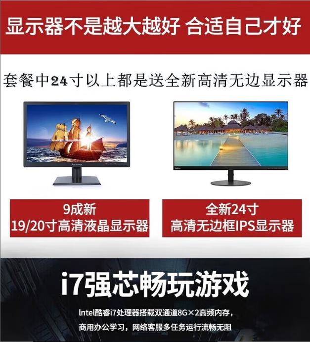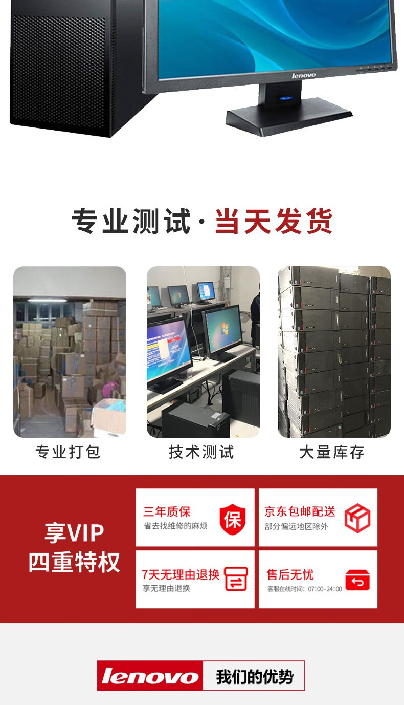 Lenovo second-hand desktop computer i3 i5 i7 business office home game entertainment host monitor complete desktop computer office computer package six I3 third generation 8G 240G office audio and video host + 19-inch monitor 9 new 90% new
