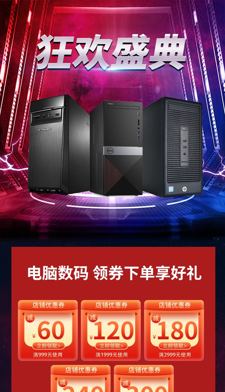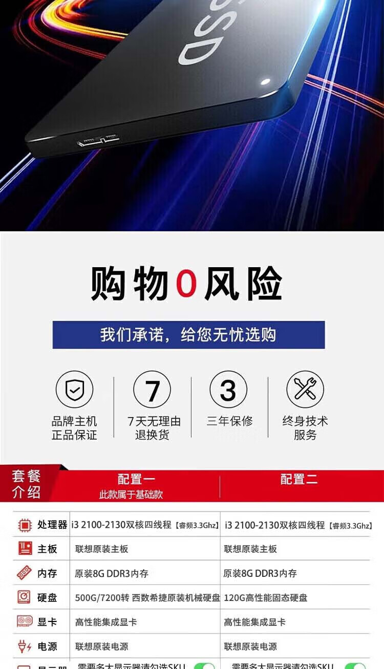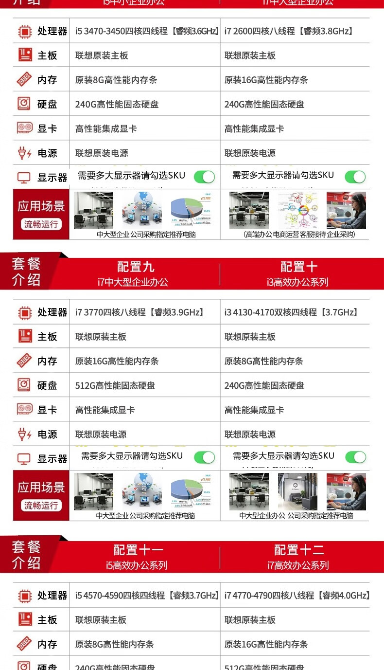 Lenovo second-hand desktop computer i3 i5 i7 business office home game entertainment host monitor complete desktop computer office computer package six I3 third generation 8G 240G office audio and video host + 19-inch monitor 9 new 90% new