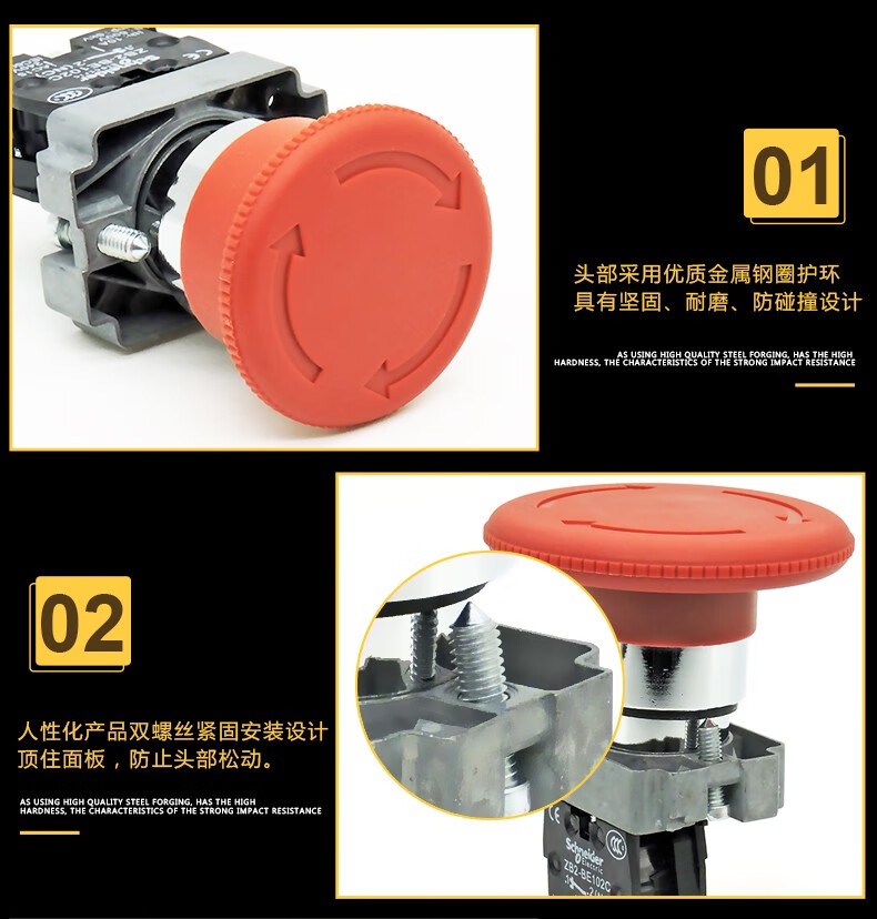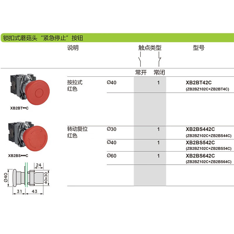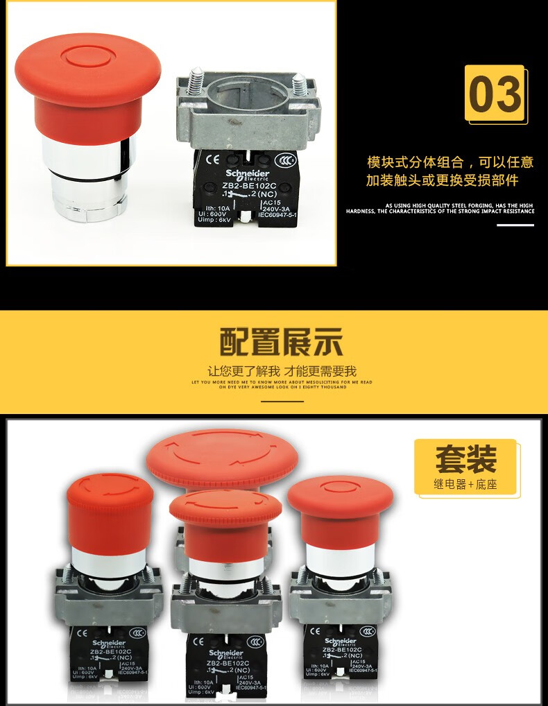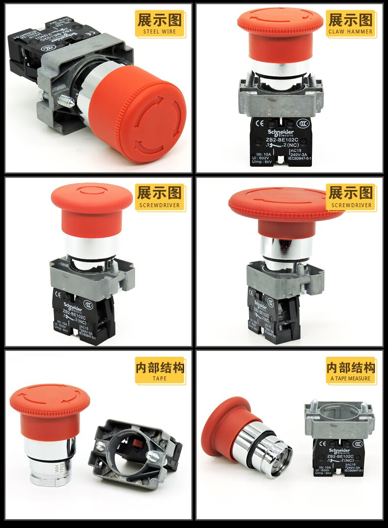 Original Schneider XB2BS emergency stop button switch red self-locking rotation reset XB2-BT pull-out normally open ZB2BE101 normally closed 102C XB2-BS542C 40 mushroom 1 normally closed
