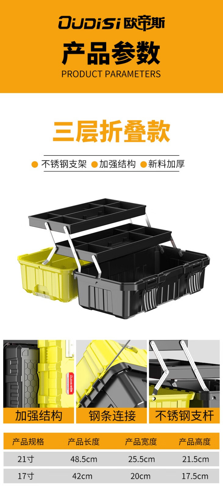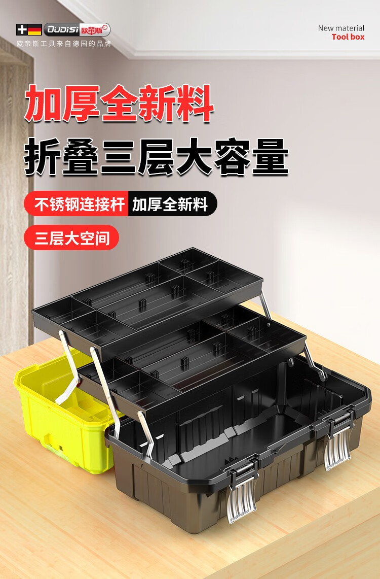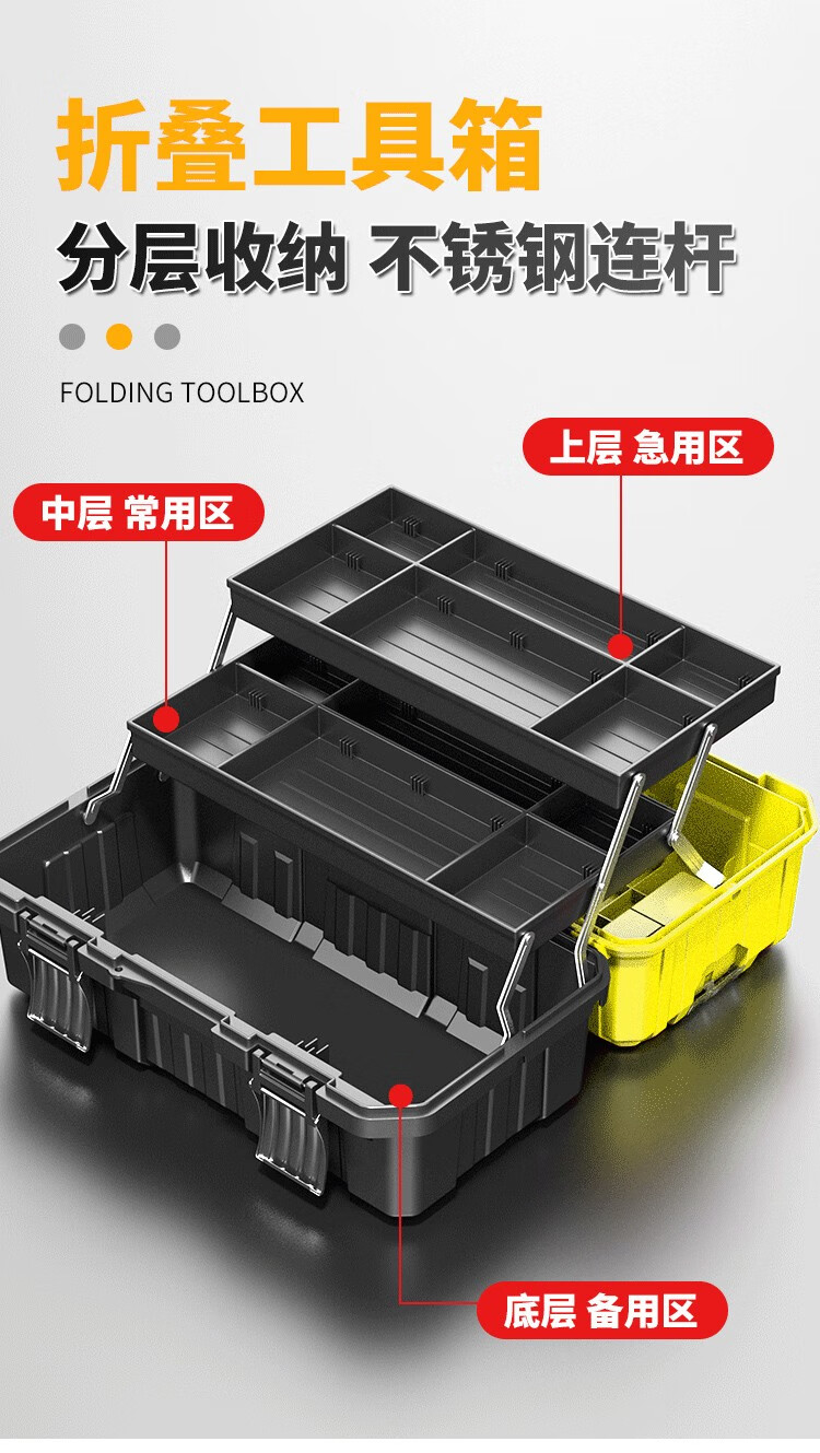 Otis tool box storage box household tool box electrician special industrial grade hardware empty box car 14-inch double-layer plastic tool box