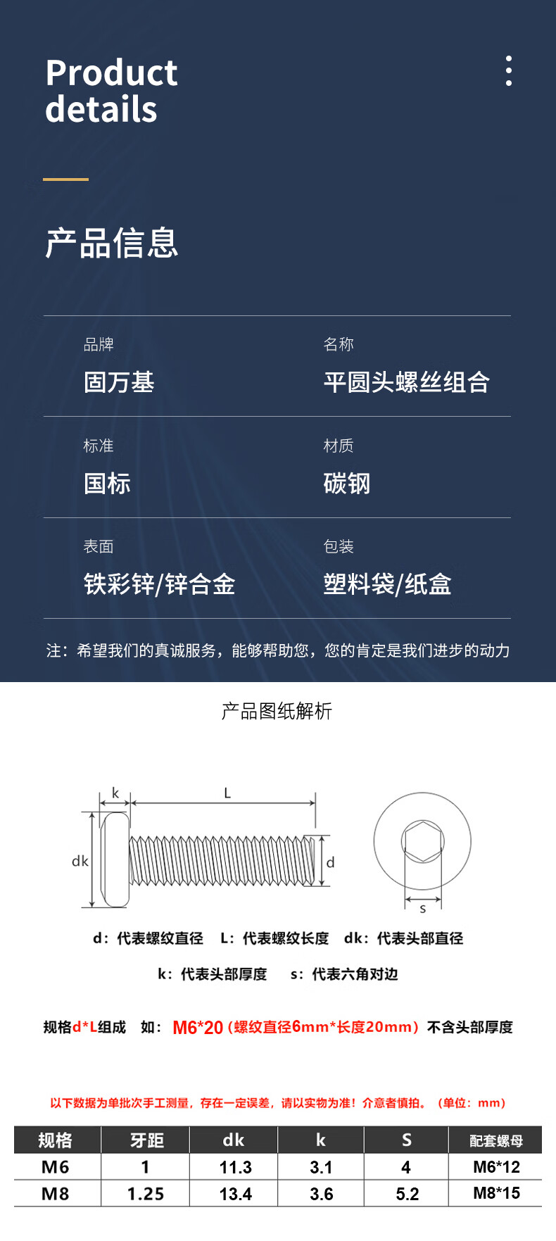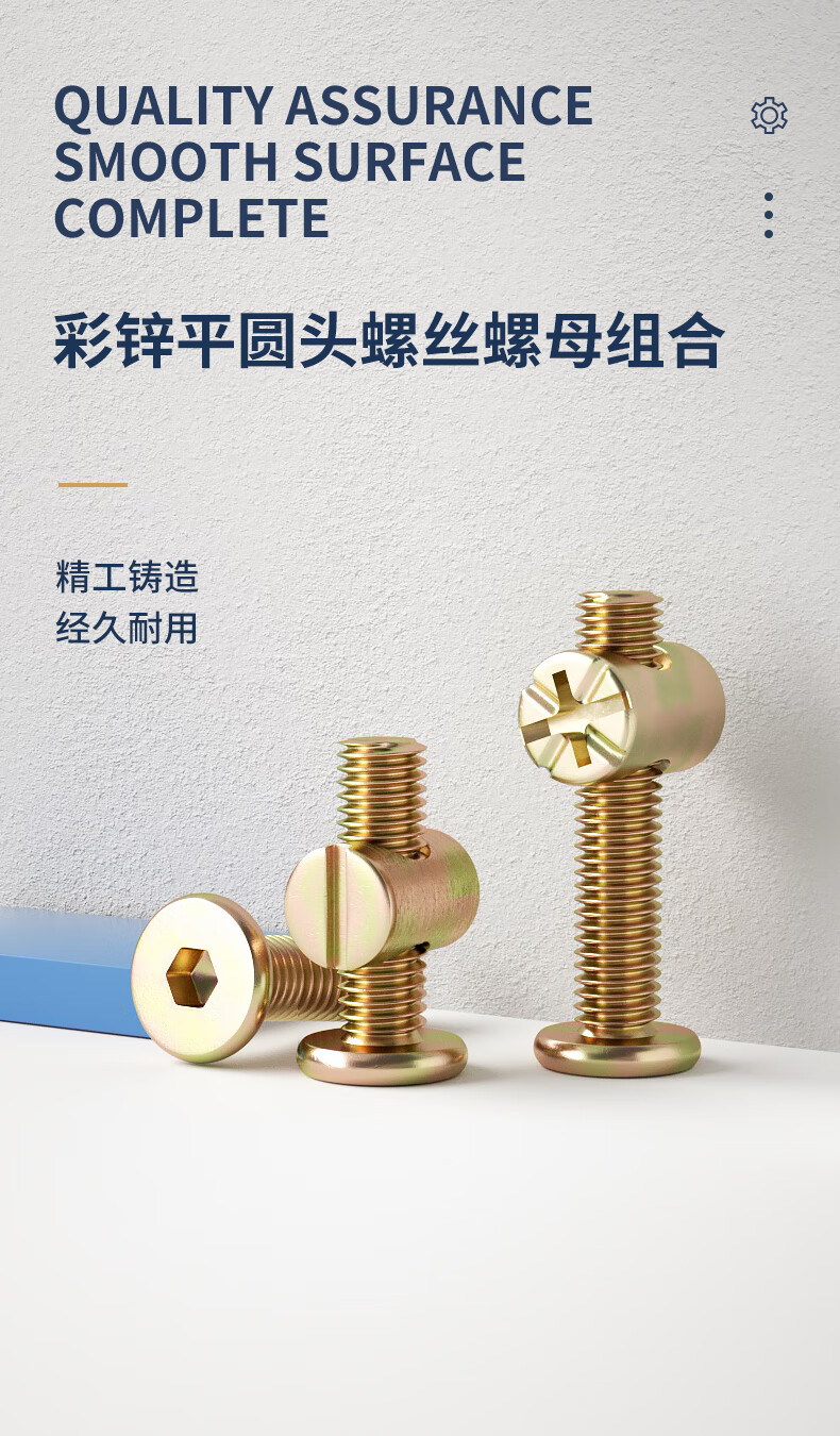 Guwanji color zinc flat round head hexagon socket screws hammer head nuts bolts crib furniture screws national standard hardware accessories M6x50 (set of 10) with slotted nuts