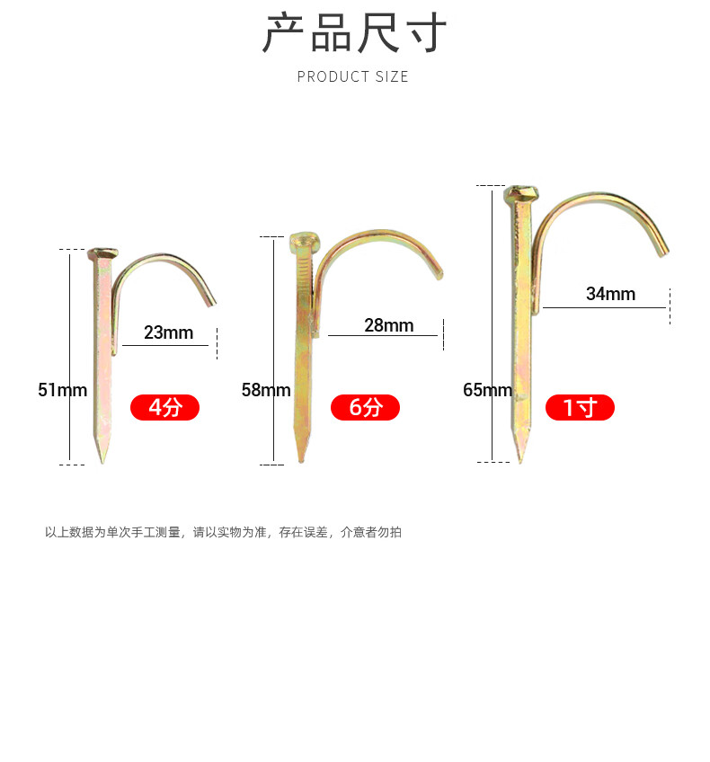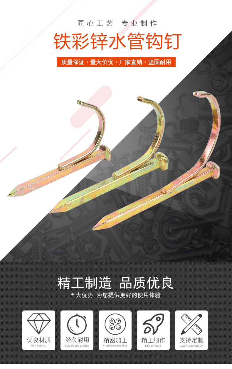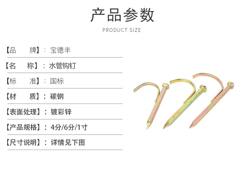 Baodefeng water pipe hook nail line pipe clamp nail PPR hook nail cement hook nail water pipe fixing nail pipe code nail 4 points/6 minutes/1 inch water pipe hook nail color zinc 4 points-(50 pieces)