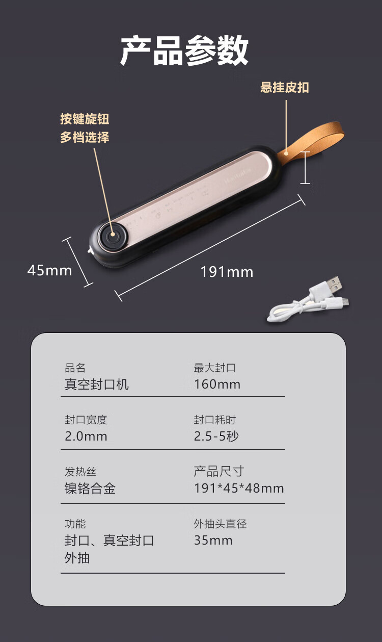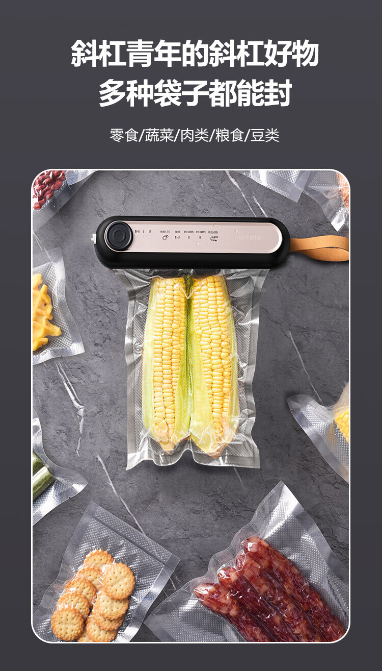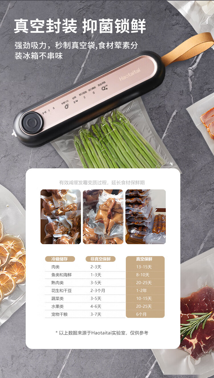 Haotaitai Portable Vacuum Sealing Machine Household Small Food Bag Packaging Machine Handheld Wireless Vacuum Machine Wet and Dry Plastic Sealing Machine Fruit Vegetable Meat Dry Goods Preservation Machine Elegant Black + Vacuum External Tube + 5 Fresh-keeping Bags Tuduo 50 Fresh-keeping Bags