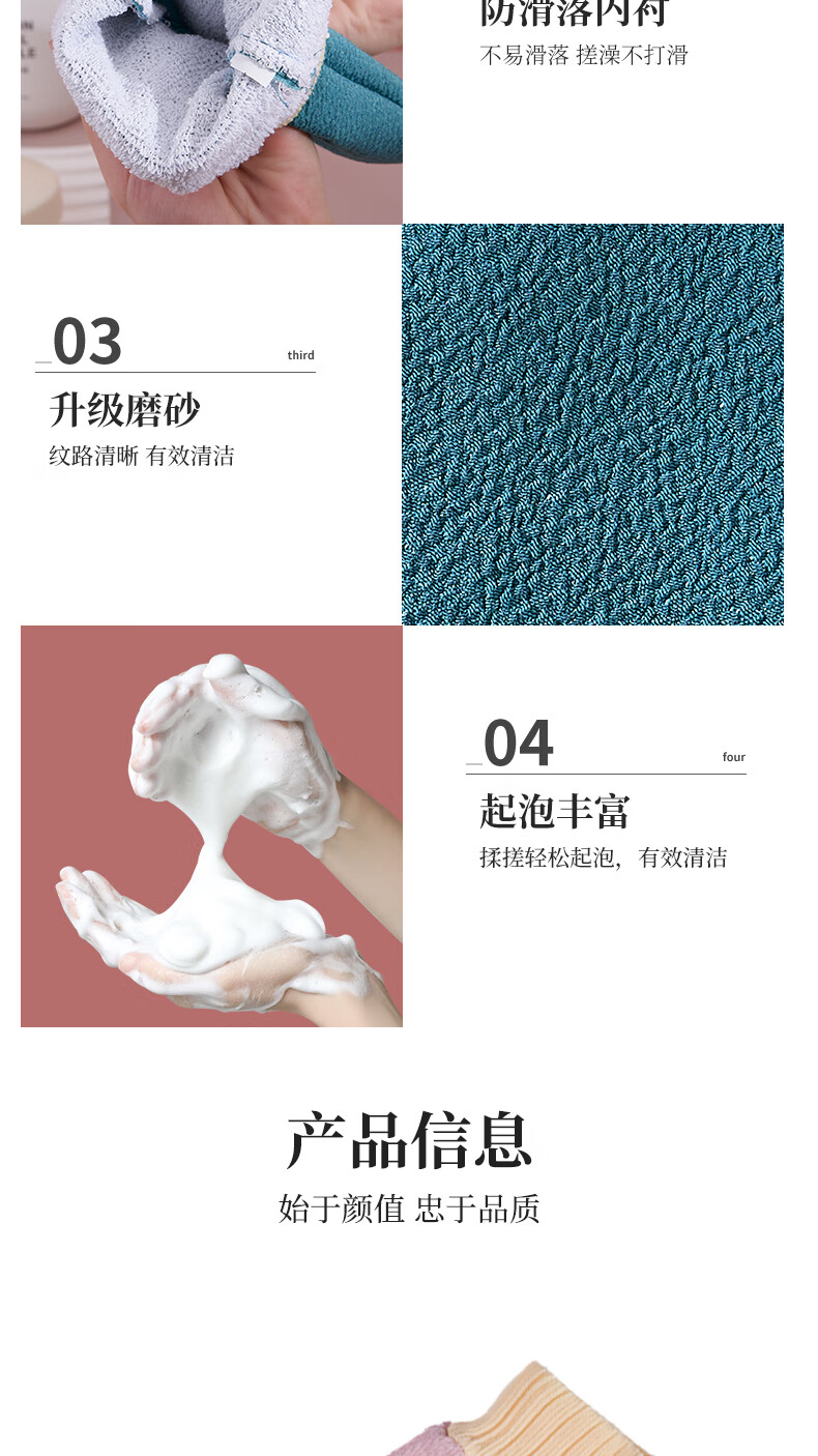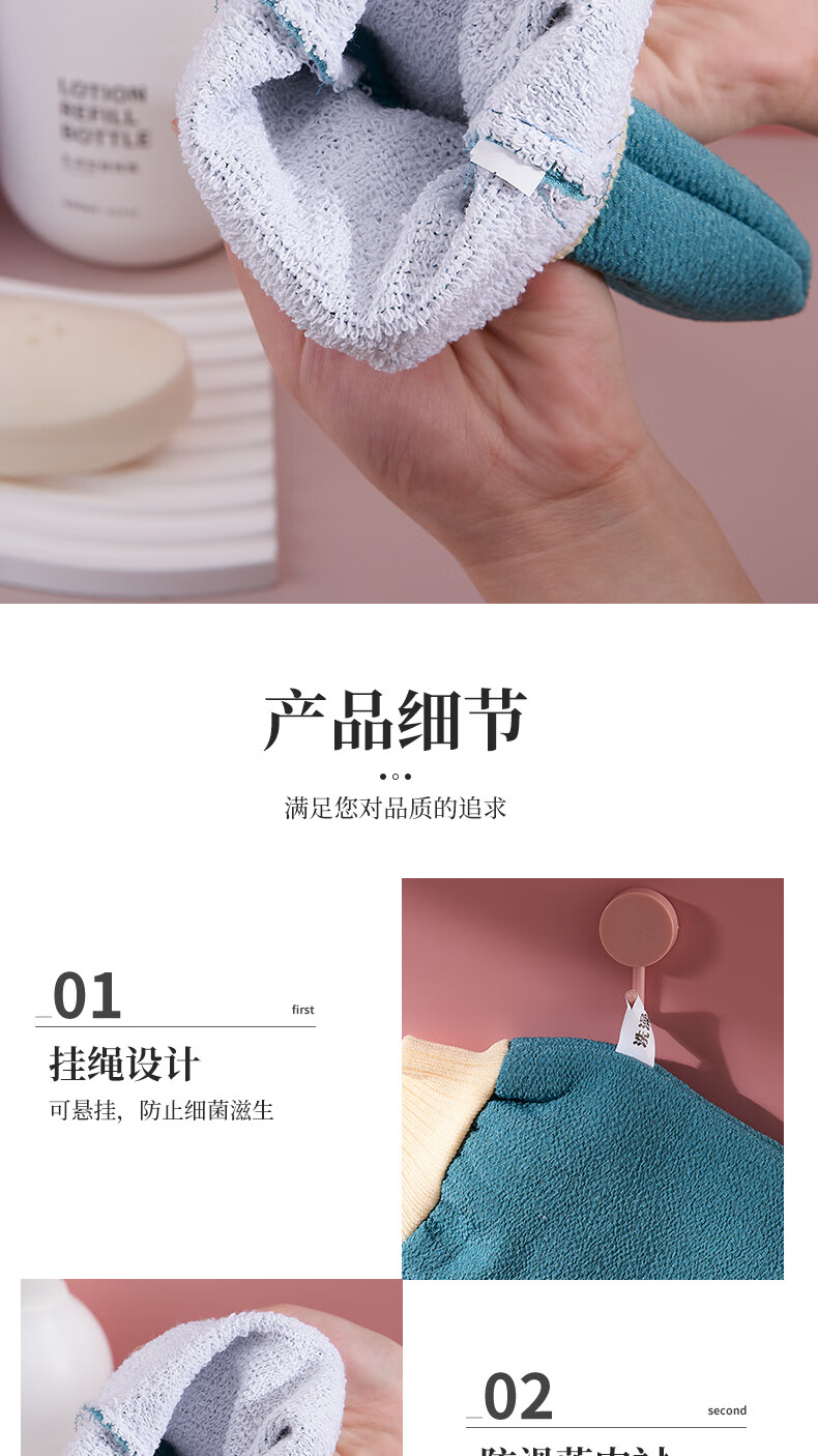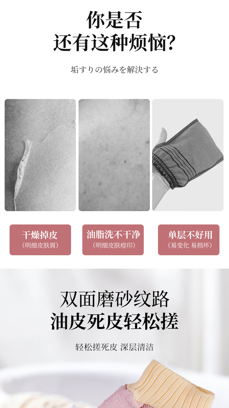 Qikai (QIKAI) bath towel, strong mud rub, bathing, no harm to the skin, back rub, men and women, no pain, magic bath towel for home use, pink + coffee + blue, three cost-effective packs