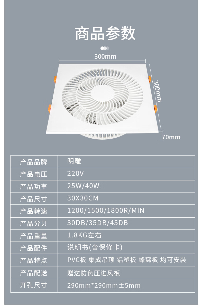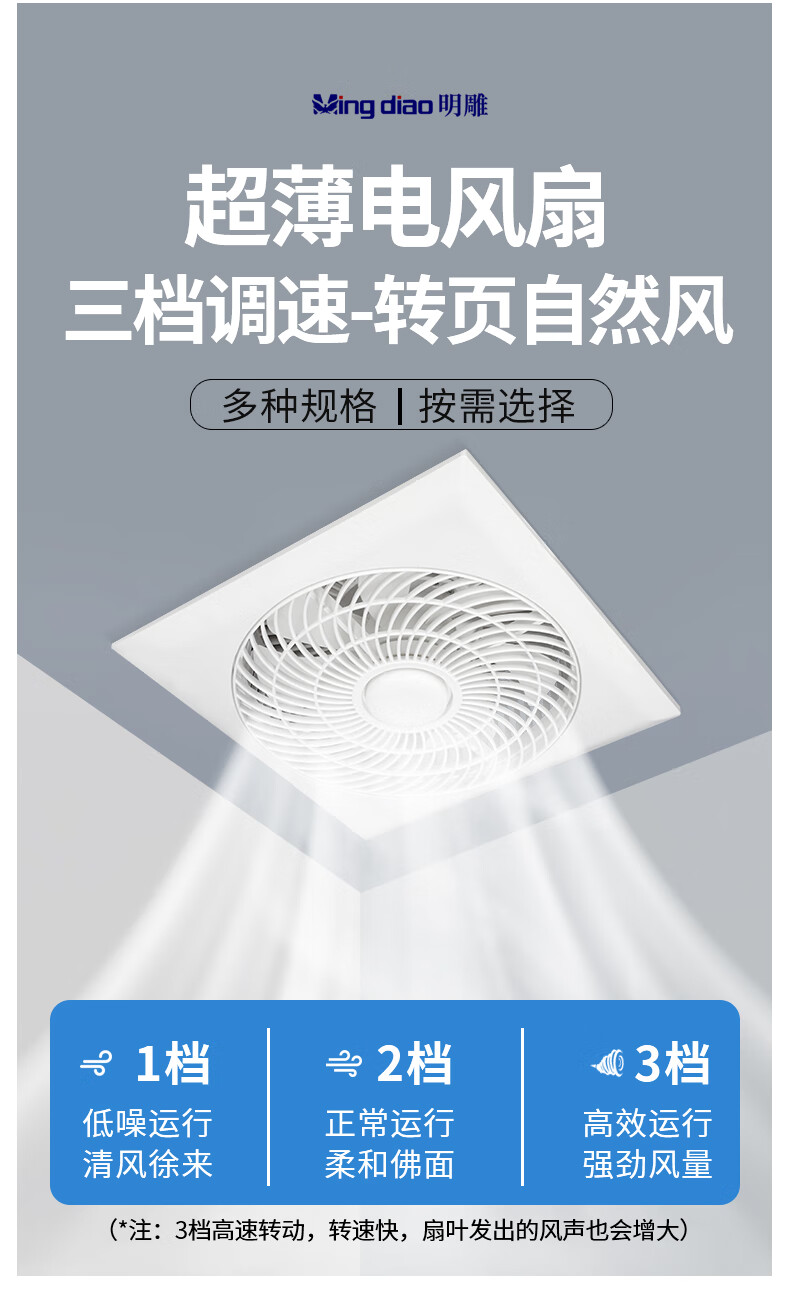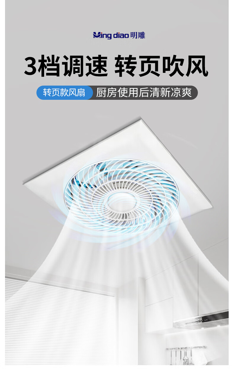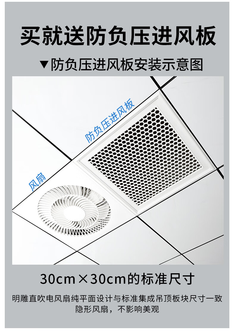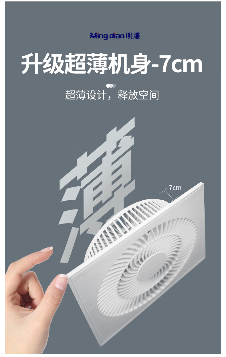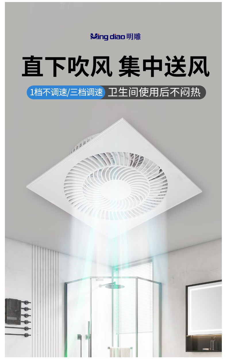Mingdiao ultra-thin 7cm kitchen cooling tower embedded bathroom integrated ceiling gypsum board powerful blowing ceiling cooling fan 30x30丨three-speed direct blowing丨without switch