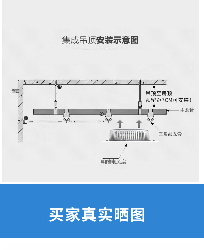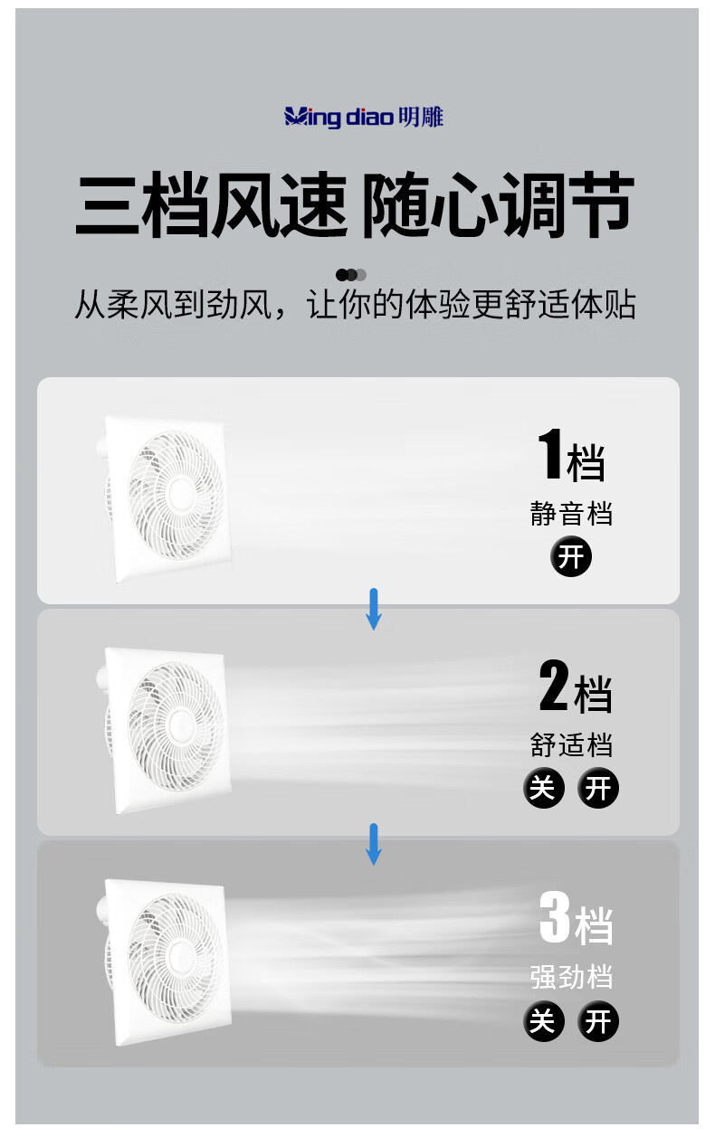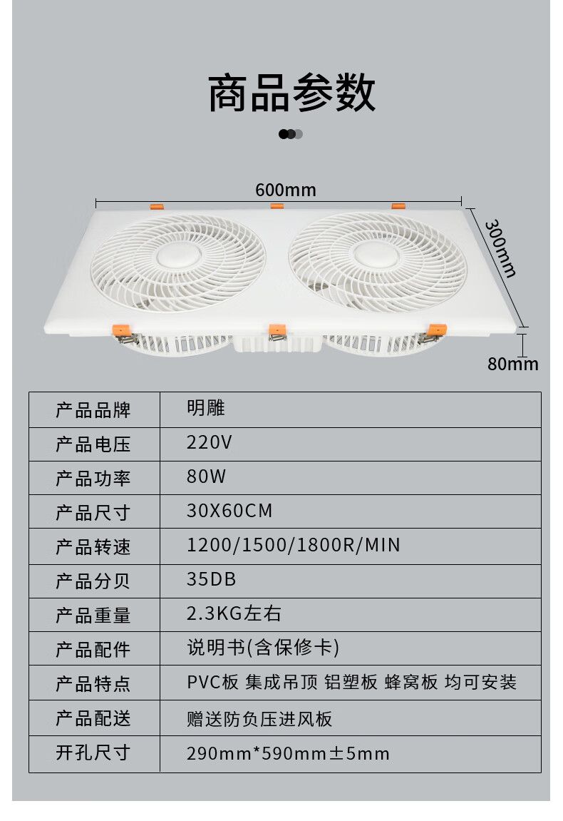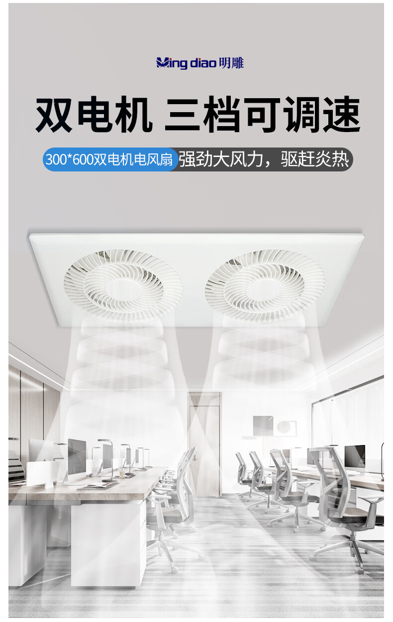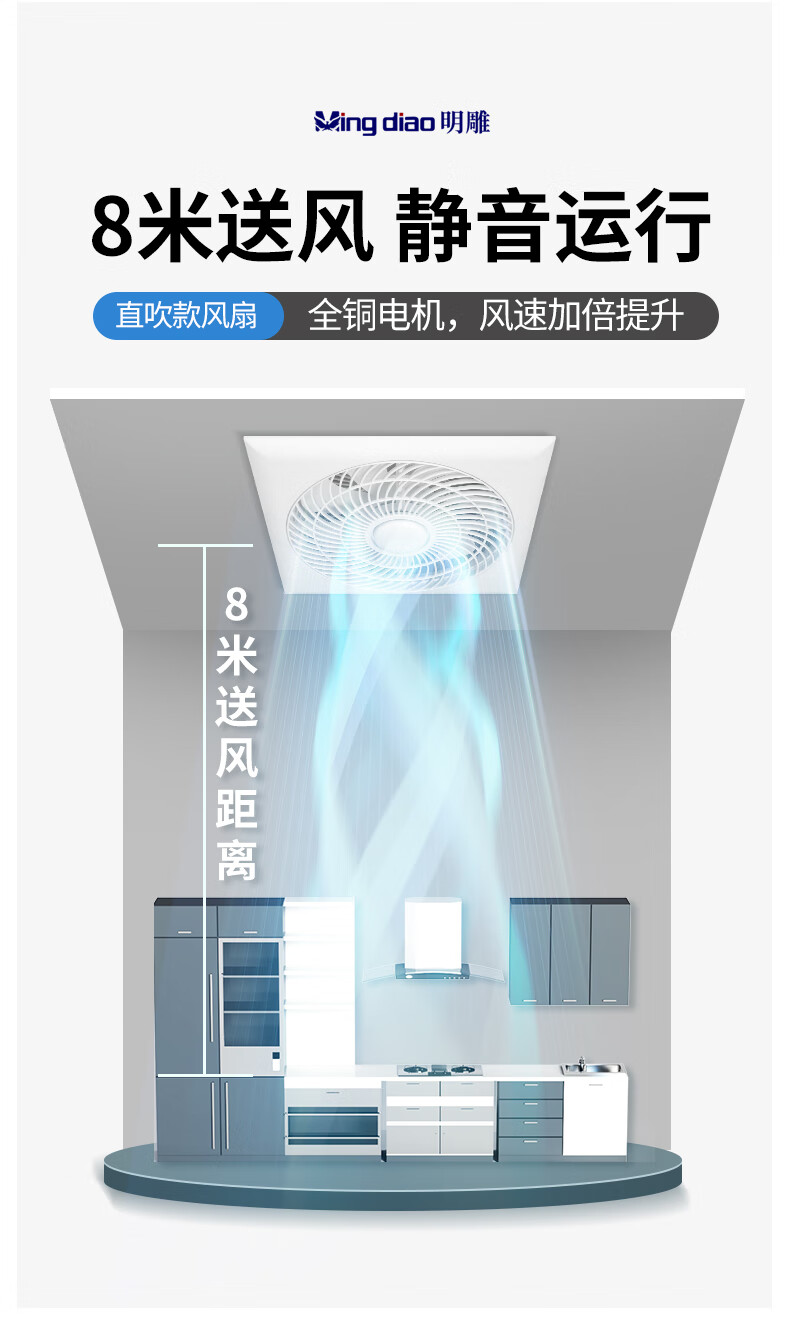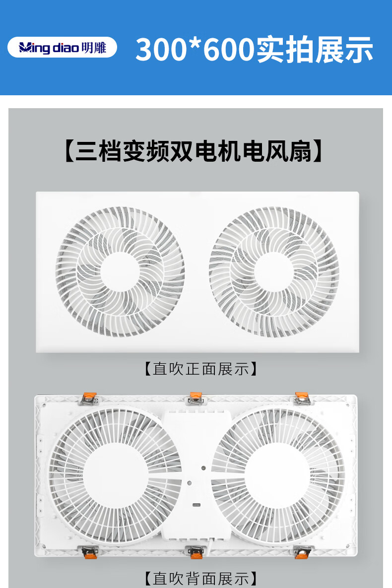 Mingdiao ultra-thin 7cm kitchen cooling tower embedded bathroom integrated ceiling gypsum board powerful blowing ceiling cooling fan 30x30丨three-speed direct blowing丨without switch