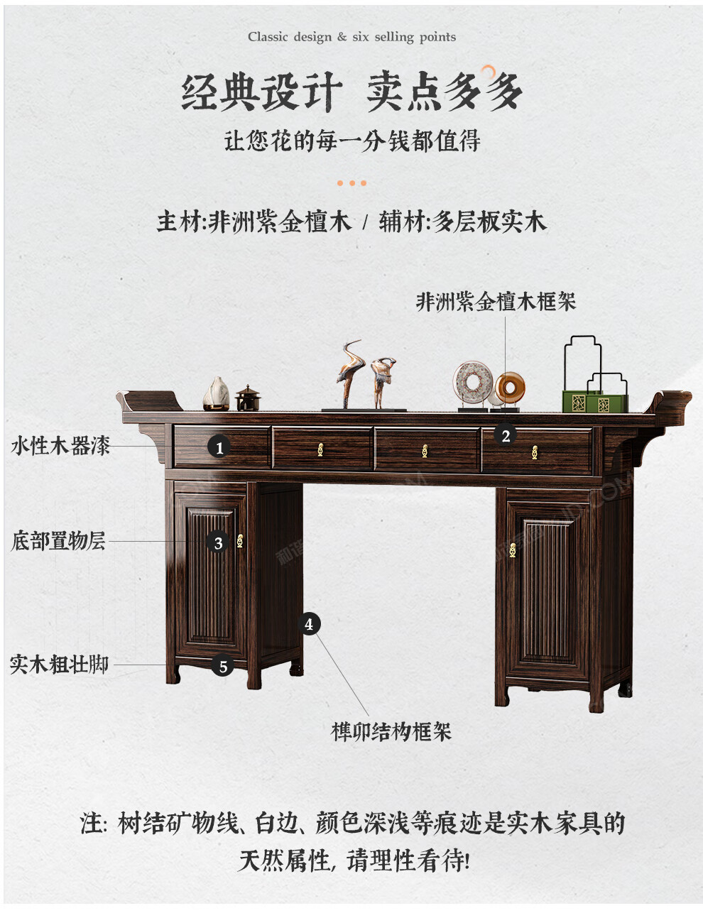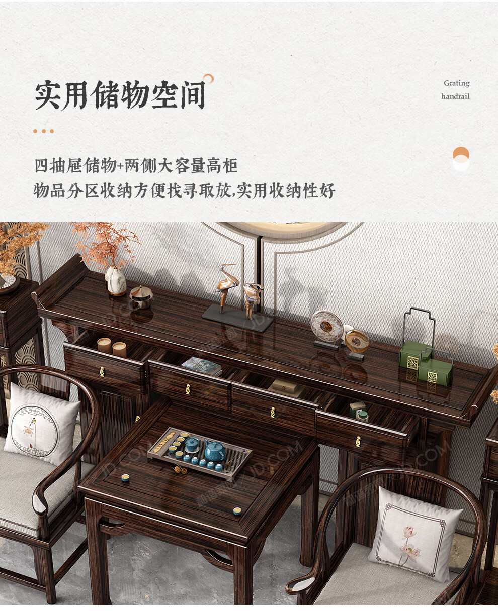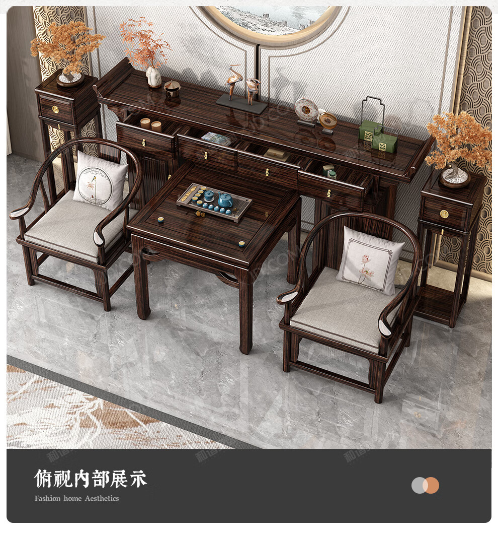 Harmony Home New Chinese-style solid wood offering table altar with raised head case purple gold sandalwood in the central hall six-piece set home living room table entryway strip case/offering table/sacred table (horseshoe leg design) assembly
