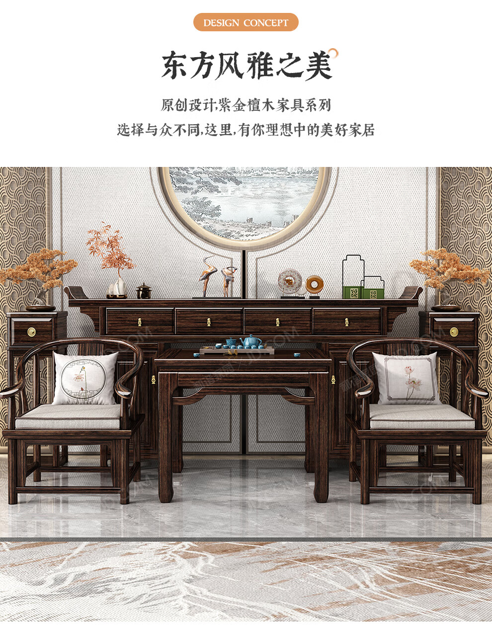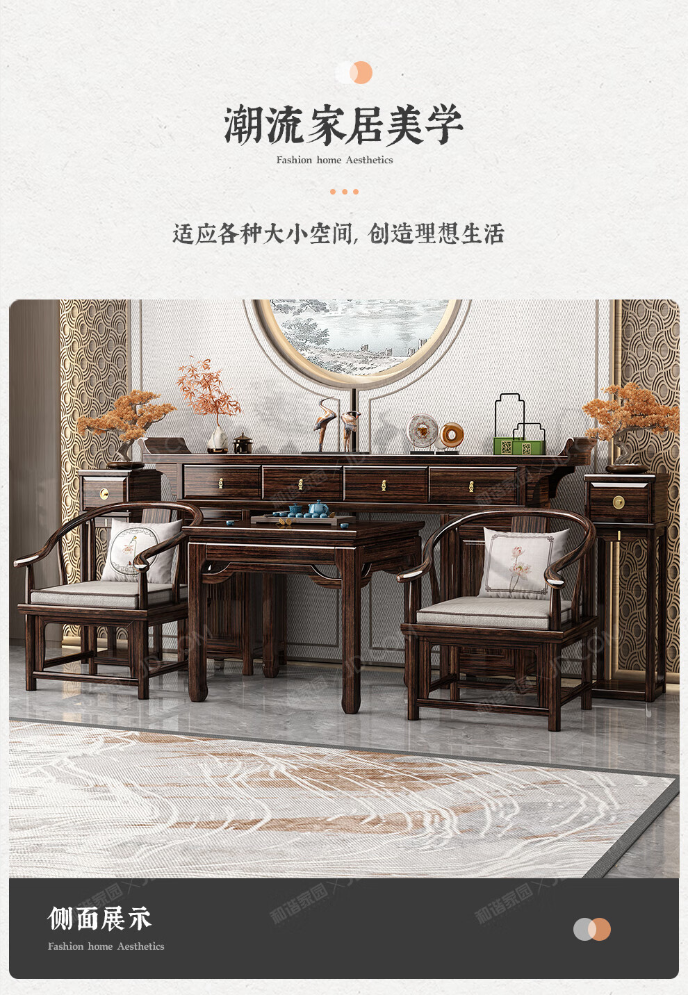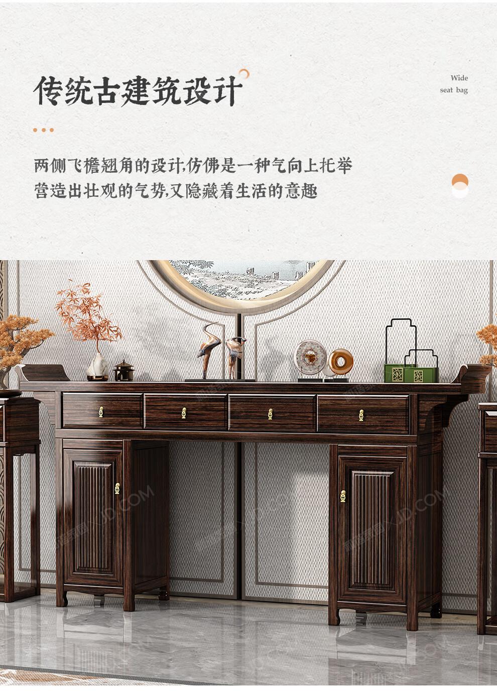 Harmony Home New Chinese-style solid wood offering table altar with raised head case purple gold sandalwood in the central hall six-piece set home living room table entryway strip case/offering table/sacred table (horseshoe leg design) assembly
