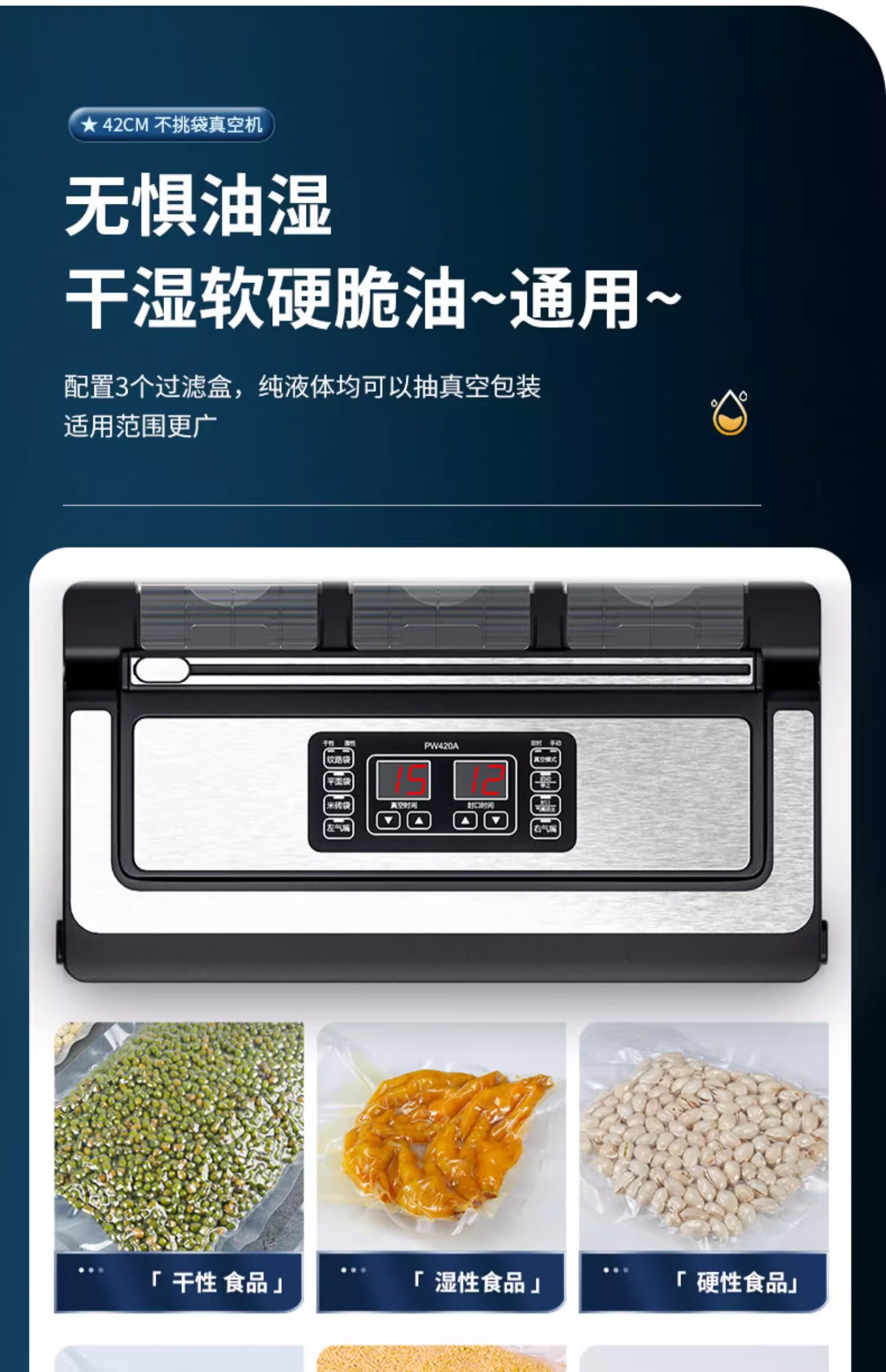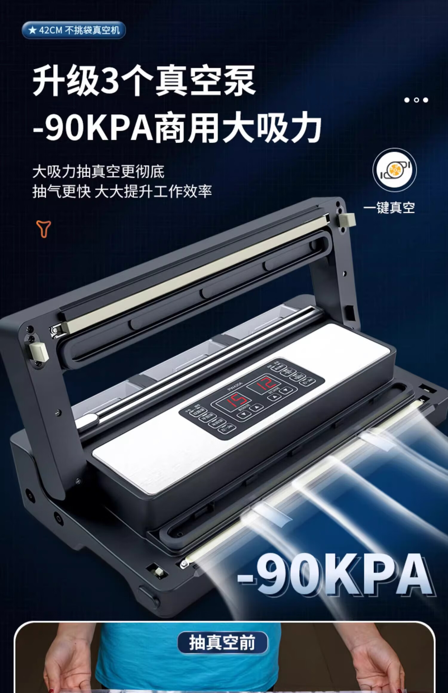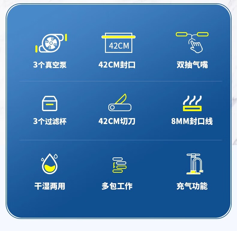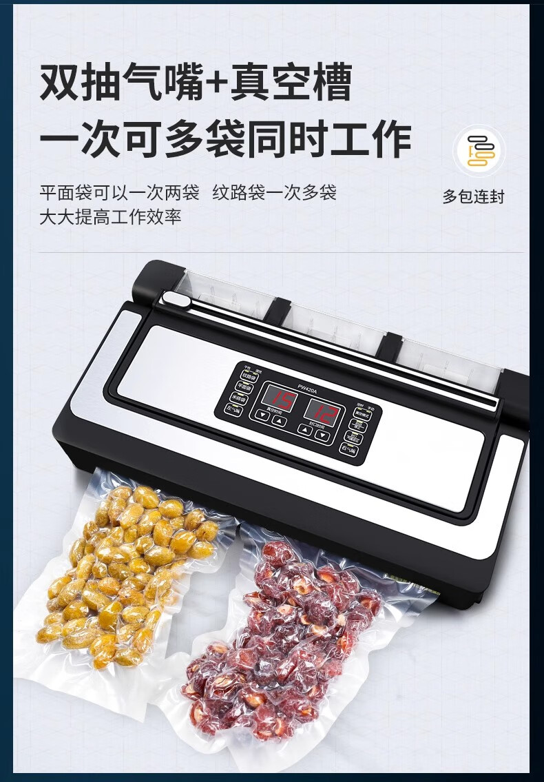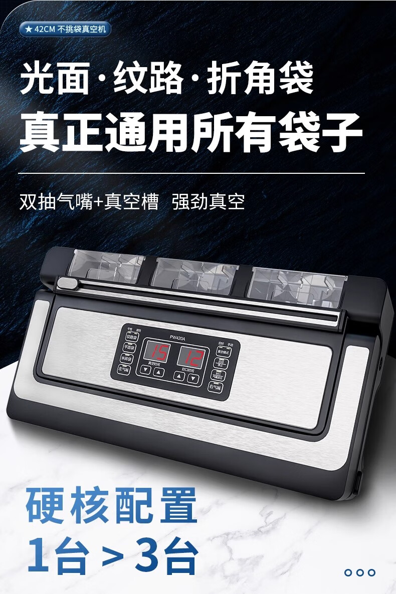 Qingye vacuum machine commercial 3 pump vacuum sealing machine wet and dry vacuum machine 42CM no pick vacuum bag double nozzle with cutter vacuum compression sealing machine packaging machine liquid no pick vacuum bag + 3 pumps + 42cm sealing + double nozzles + wet and dry use