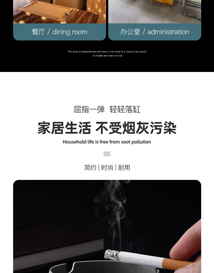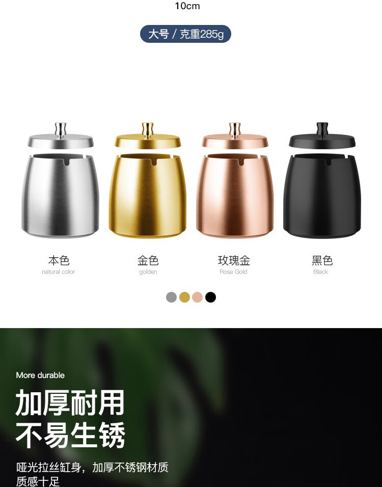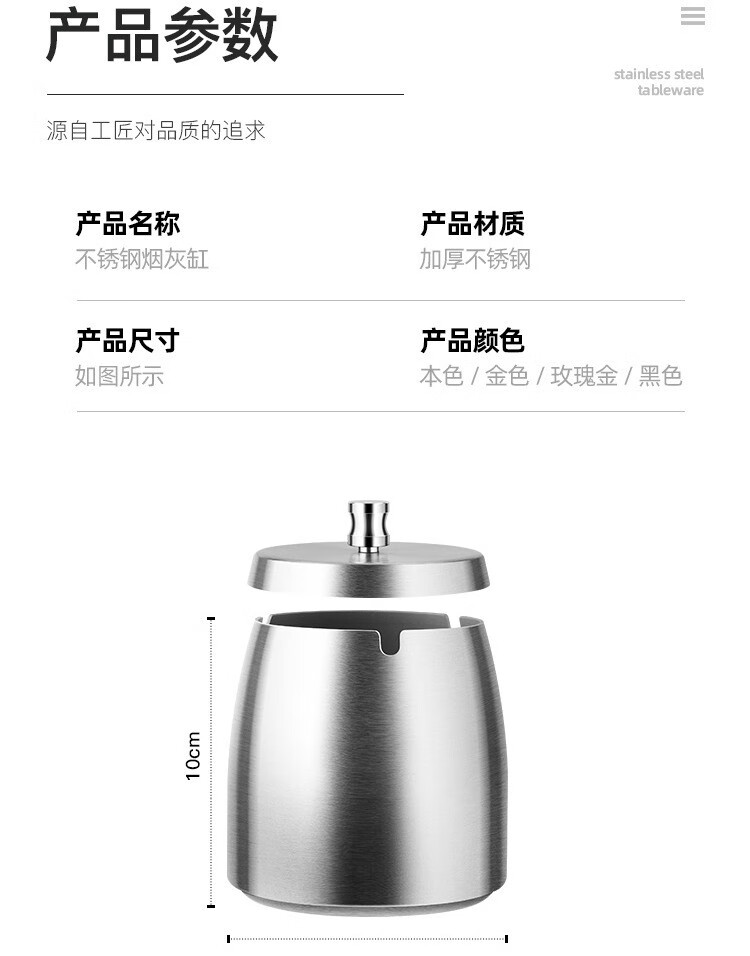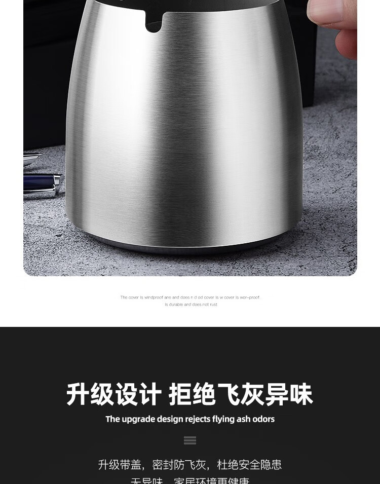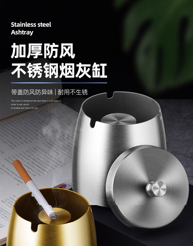 Yunsui ashtray with lid stainless steel windproof and fly ash creative home restaurant hotel bar office cigarette cup ashtray thickened large ashtray with lid and smoke column