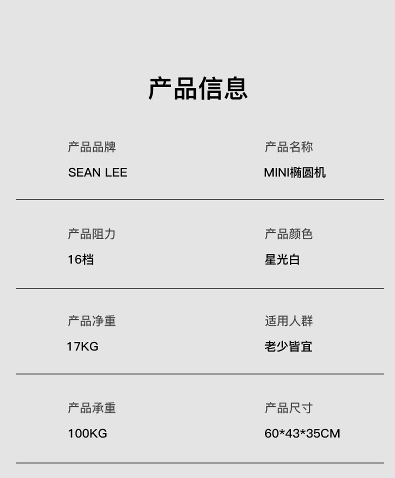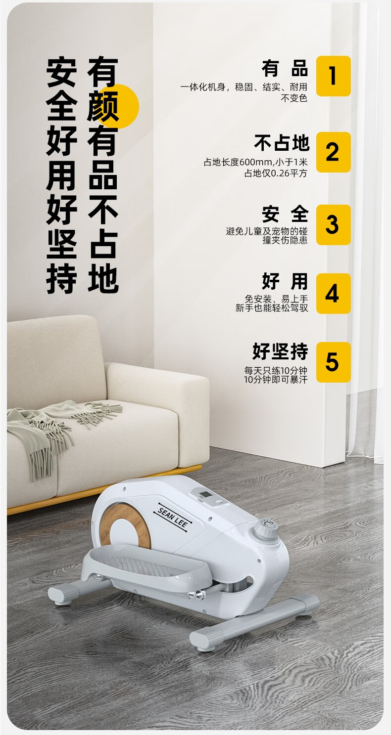 SEAN LEE elliptical machine home small fat-burning elliptical machine sports fitness equipment stepper magnetically controlled silent home walking machine starlight white installation-free/16-speed magnetically controlled silent