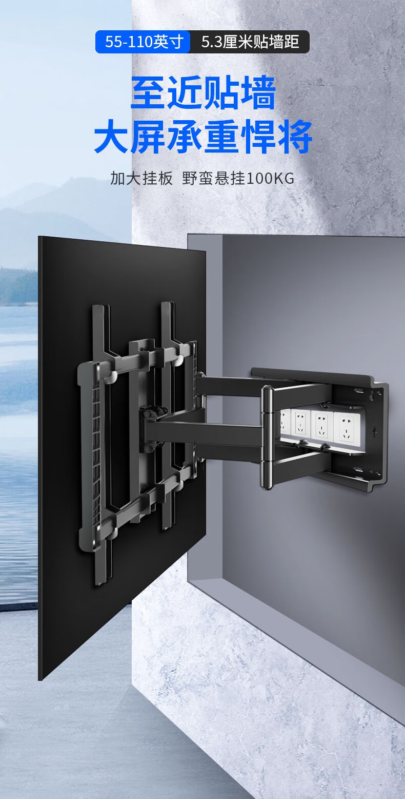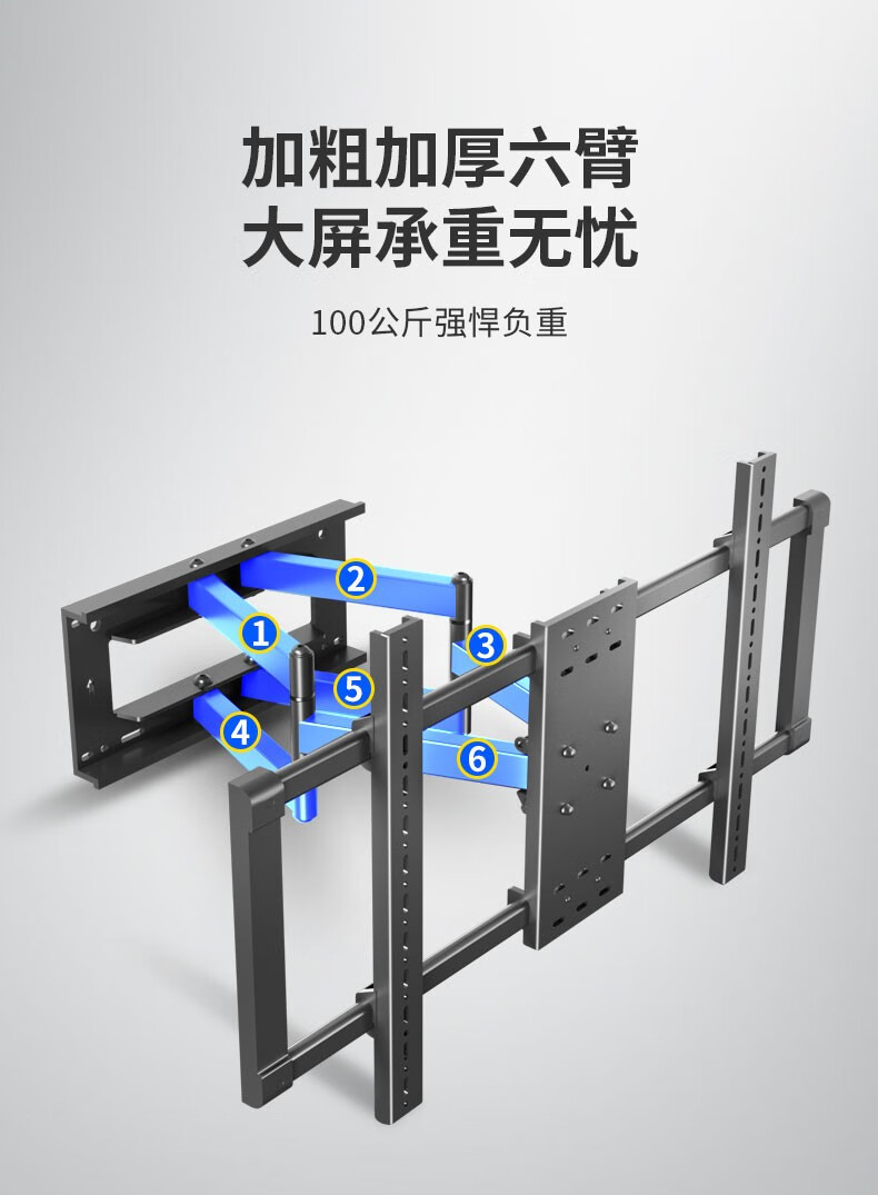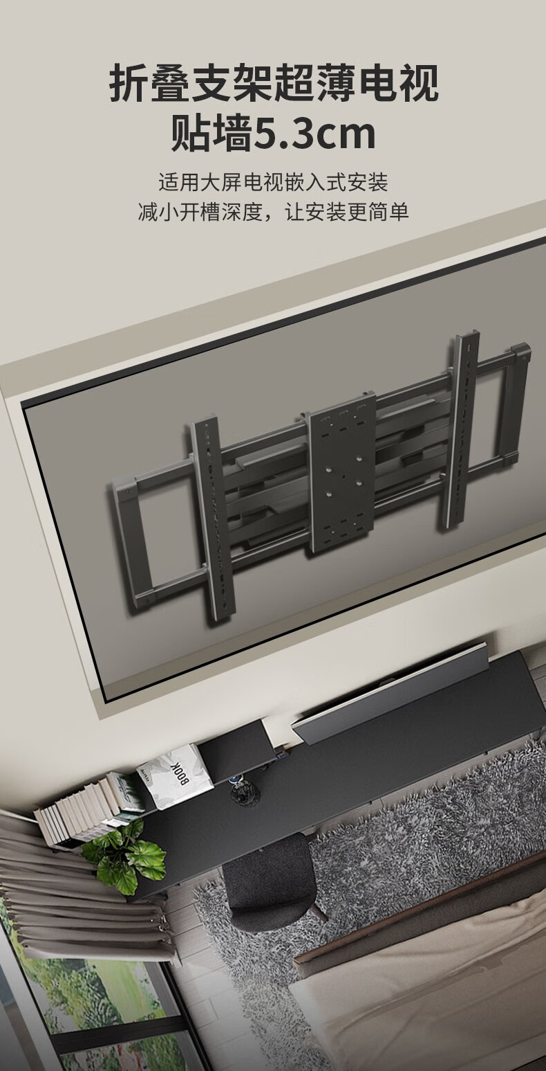 Universal TV bracket 70 75 85 86 98 100 120 inches ultra-thin large screen TV bracket telescopic swing rotating folding wall hanging 60-120 inches wall hanging within 1000*800mm