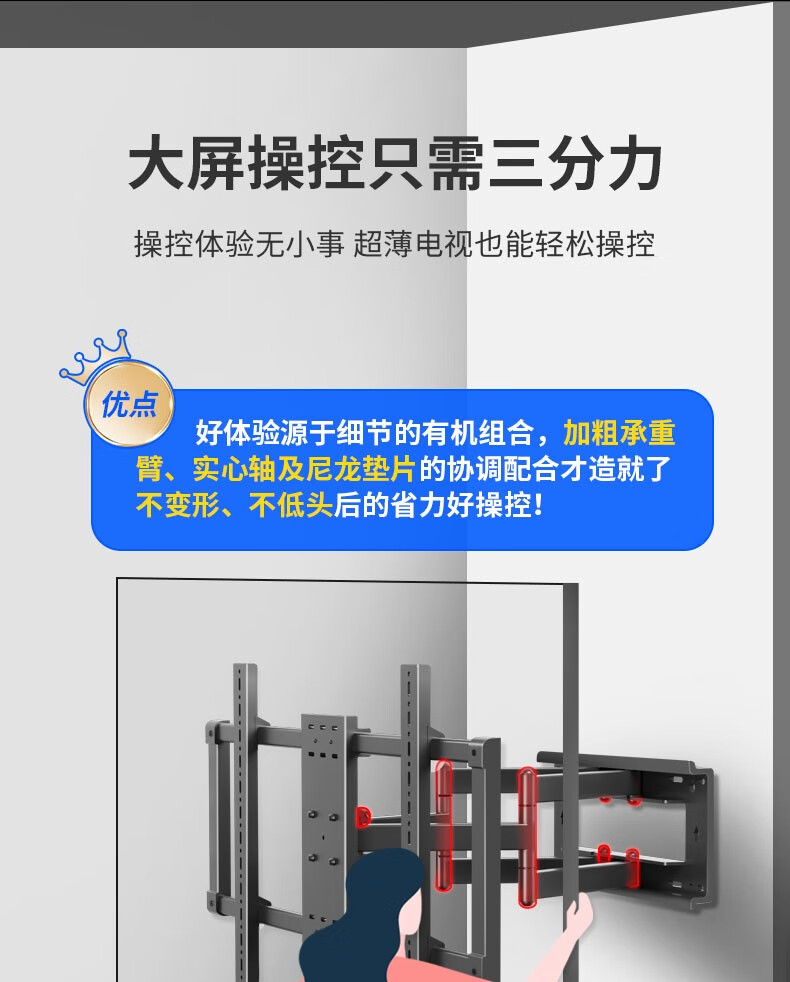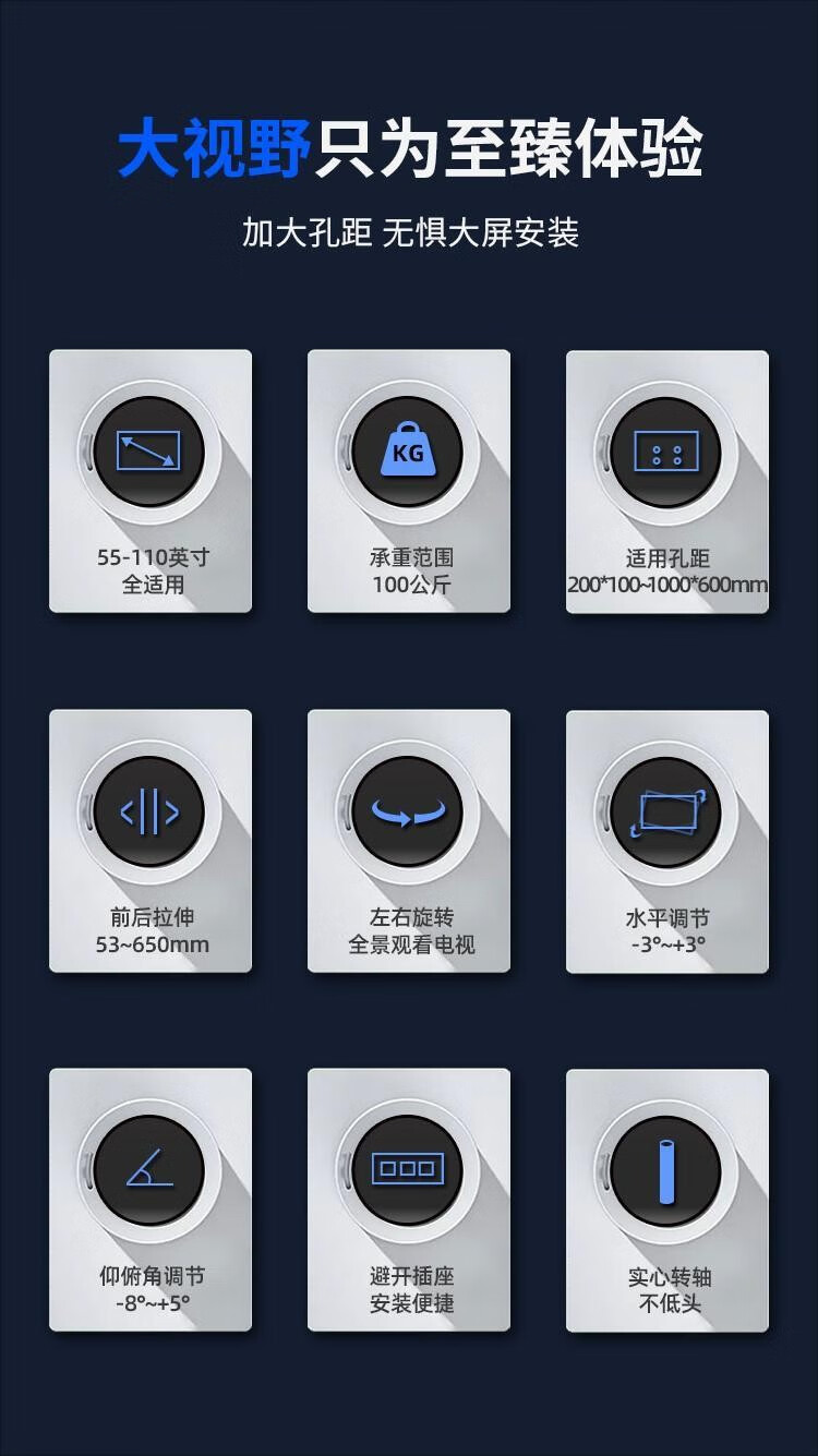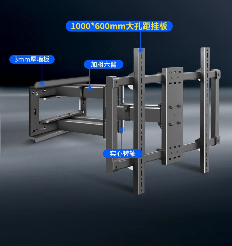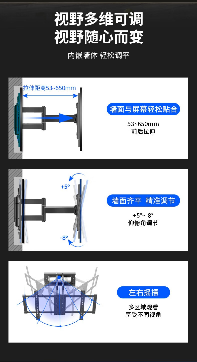 Universal TV bracket 70 75 85 86 98 100 120 inches ultra-thin large screen TV bracket telescopic swing rotating folding wall hanging 60-120 inches wall hanging within 1000*800mm