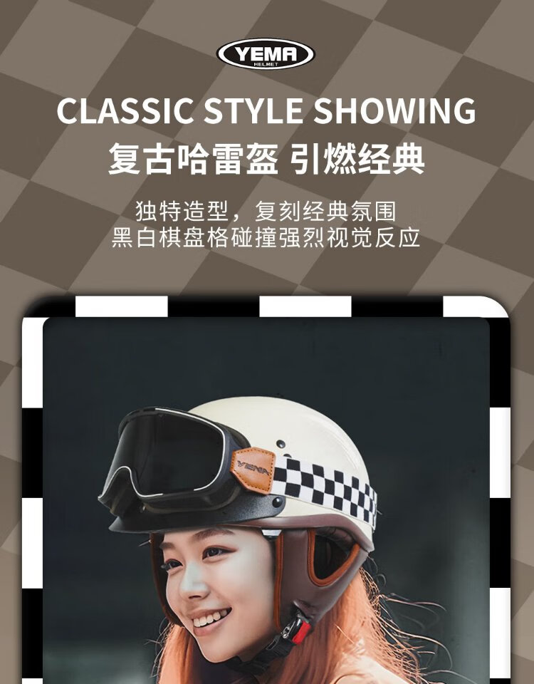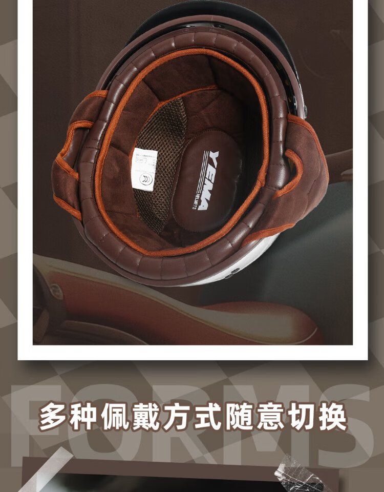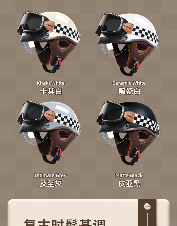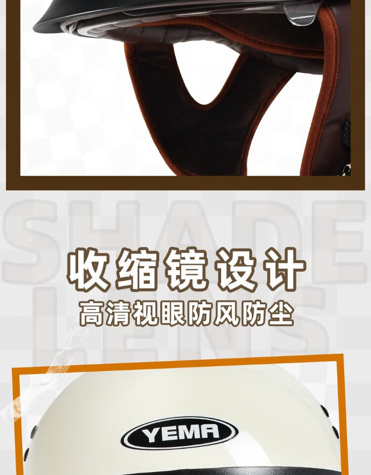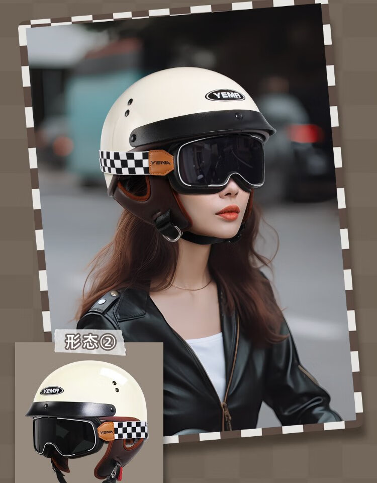 Yema (YEMA) motorcycle helmet electric vehicle 3C certification national standard retro scoop helmet men and women personalized motorcycle summer half helmet khaki white-tea mirror one size