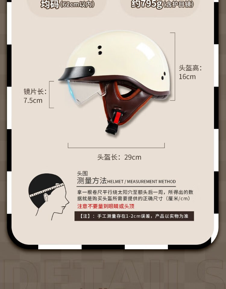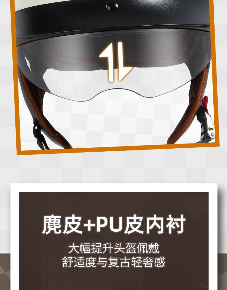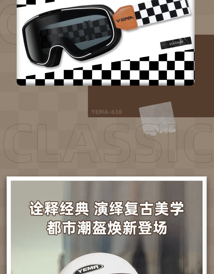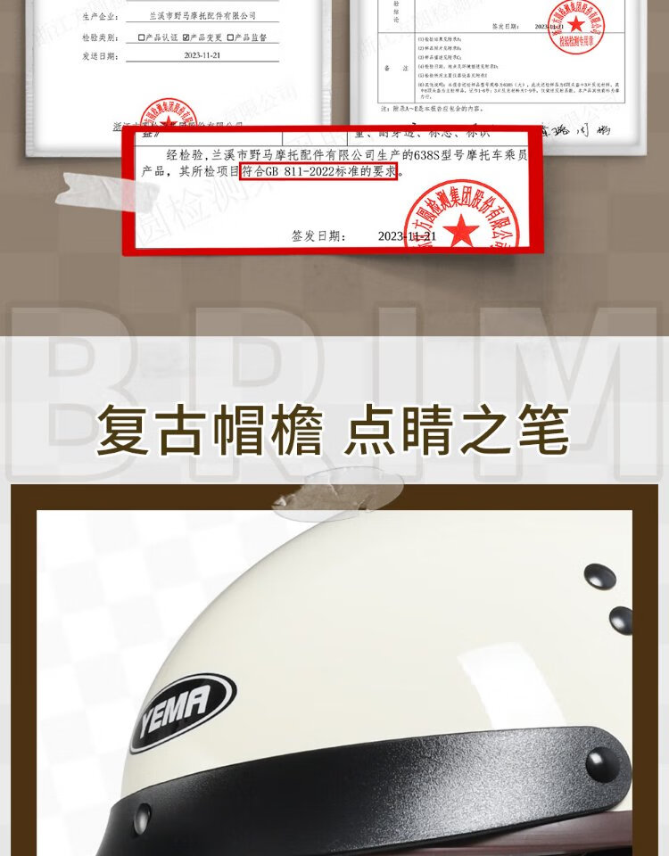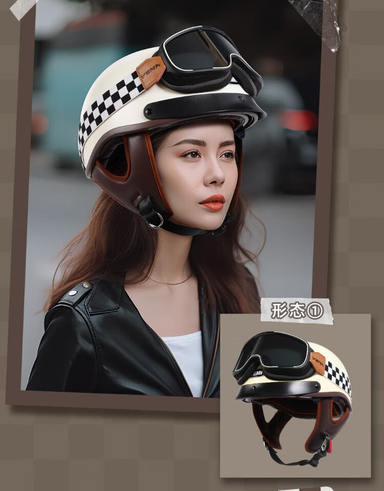 Yema (YEMA) motorcycle helmet electric vehicle 3C certification national standard retro scoop helmet men and women personalized motorcycle summer half helmet khaki white-tea mirror one size