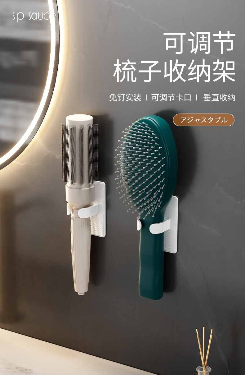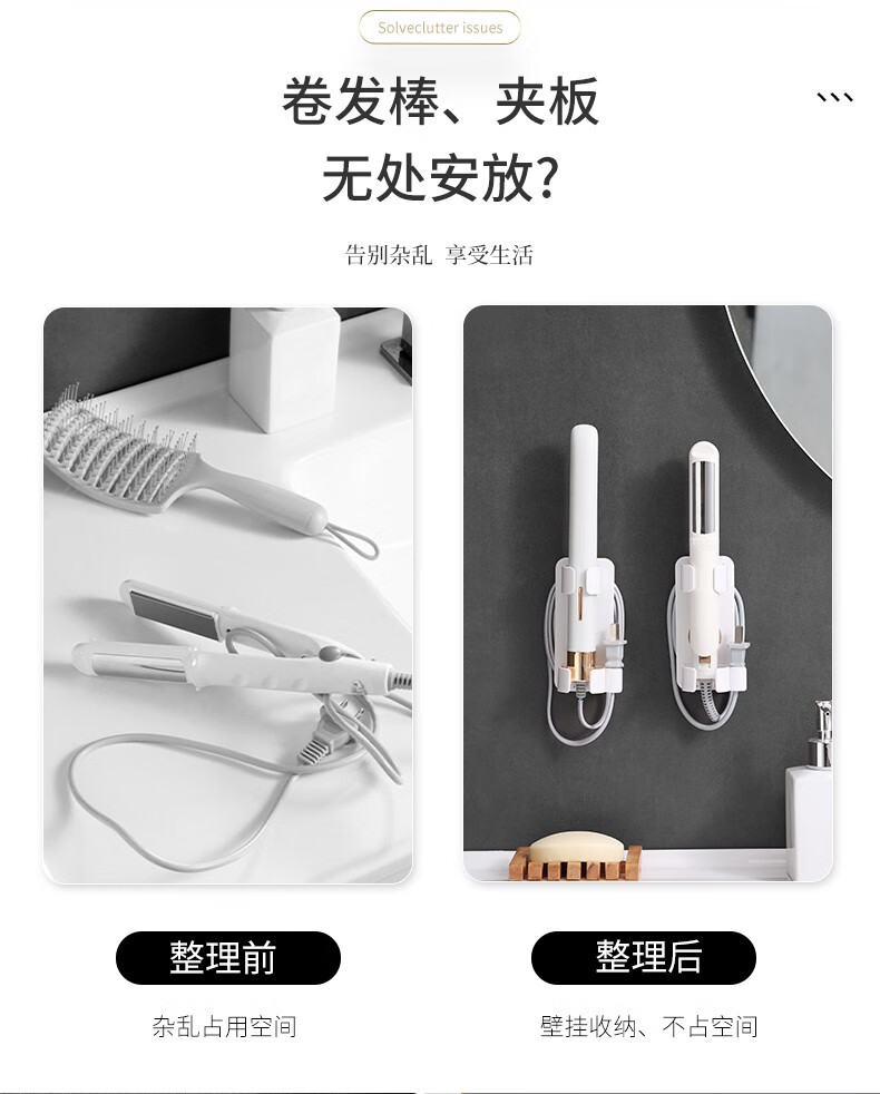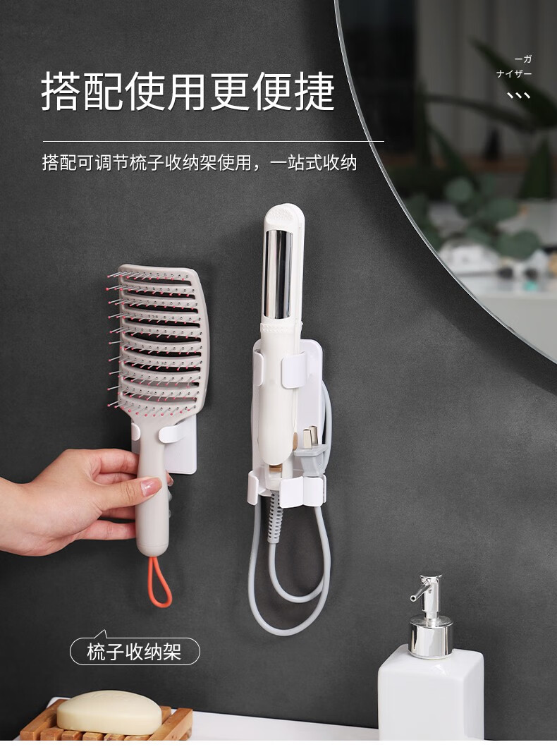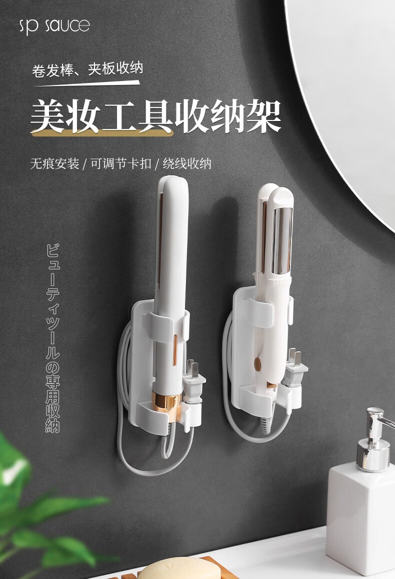 SP SAUCE Japanese curling iron storage rack, no punching, bathroom wall-mounted ironing board holder, straight hair comb, electric splint storage rack, one curling iron storage rack, adjustable and windable