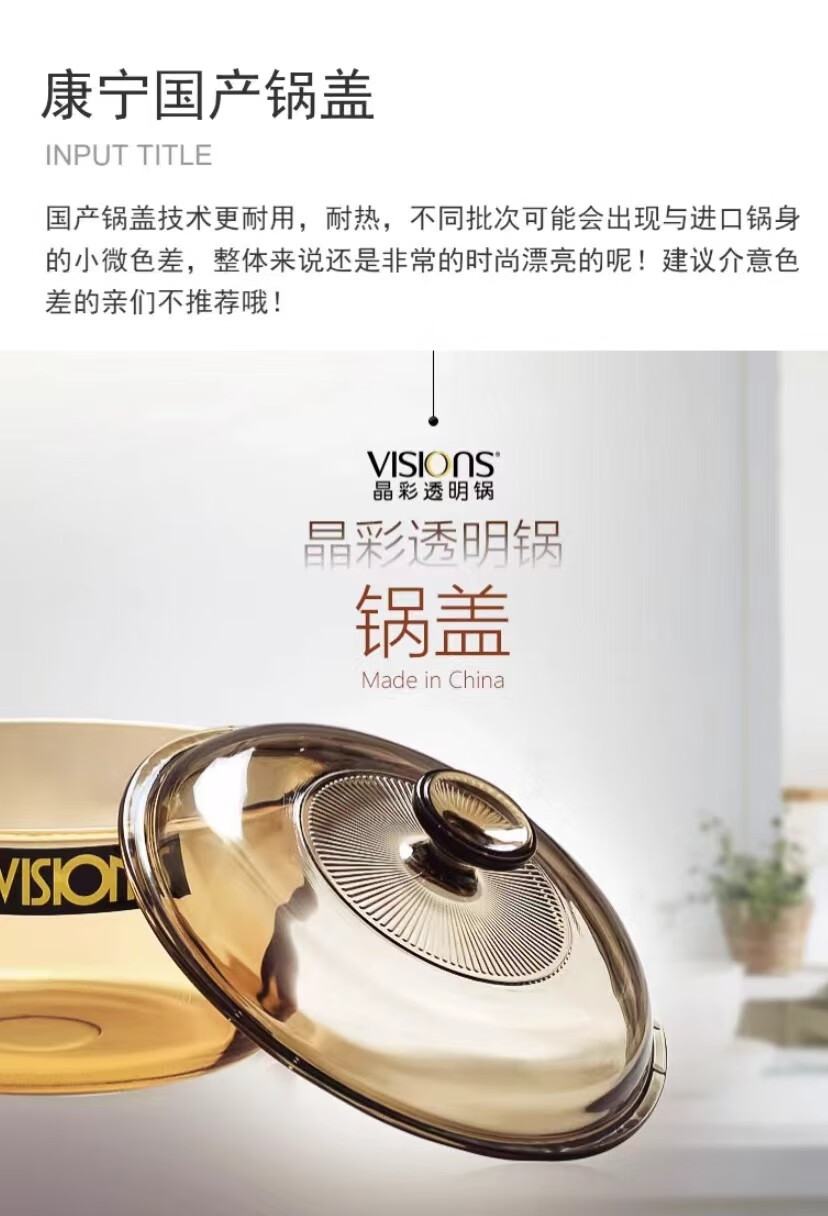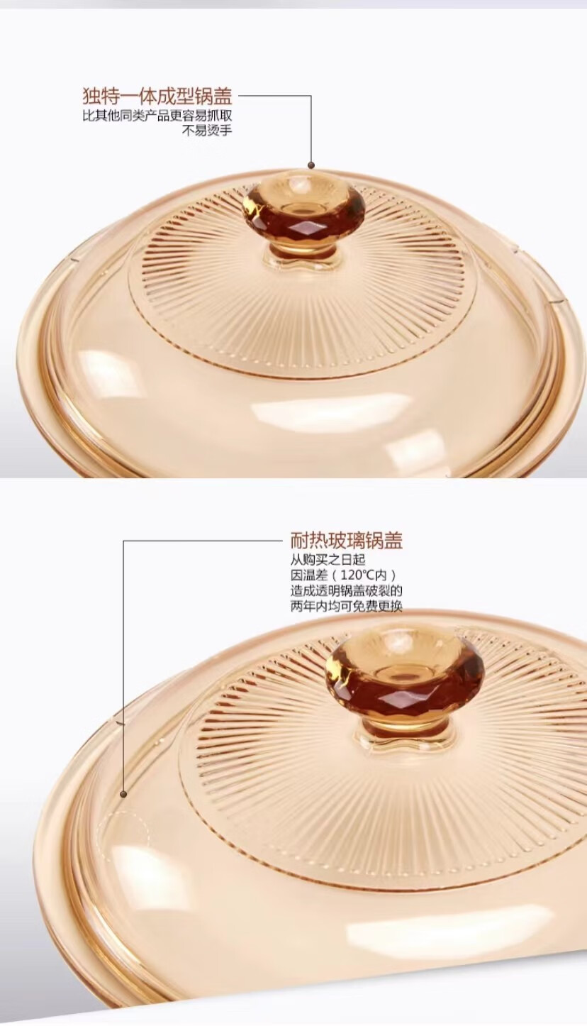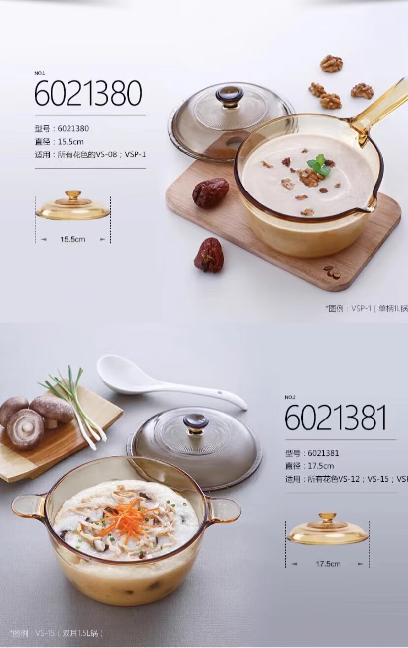 Corning glass pot lid 0.8L/1.2L/2.25L/2.5L/3.5L/4.1L/5L/5.5L Special Corning lid Amber lid (Crystal Color 1.25/1.5L) 17.5cm