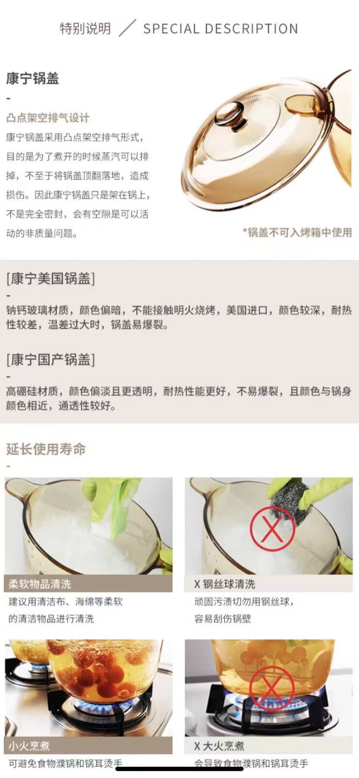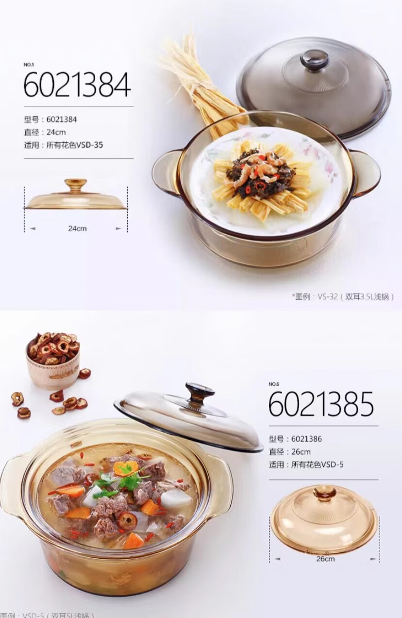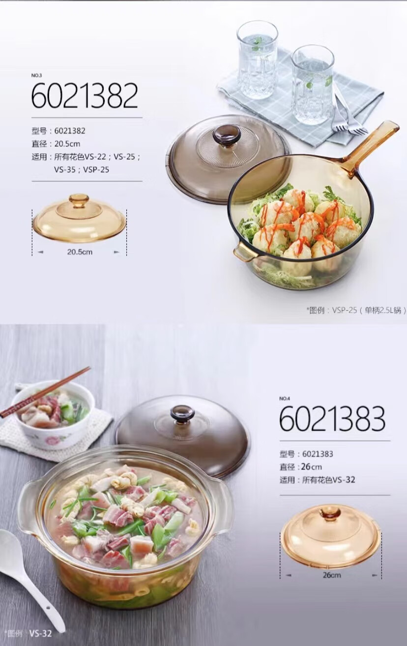 Corning glass pot lid 0.8L/1.2L/2.25L/2.5L/3.5L/4.1L/5L/5.5L Special Corning lid Amber lid (Crystal Color 1.25/1.5L) 17.5cm