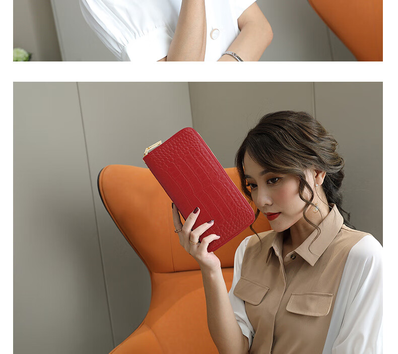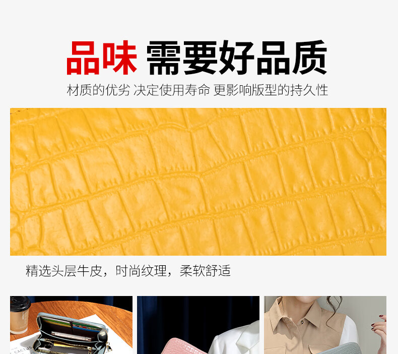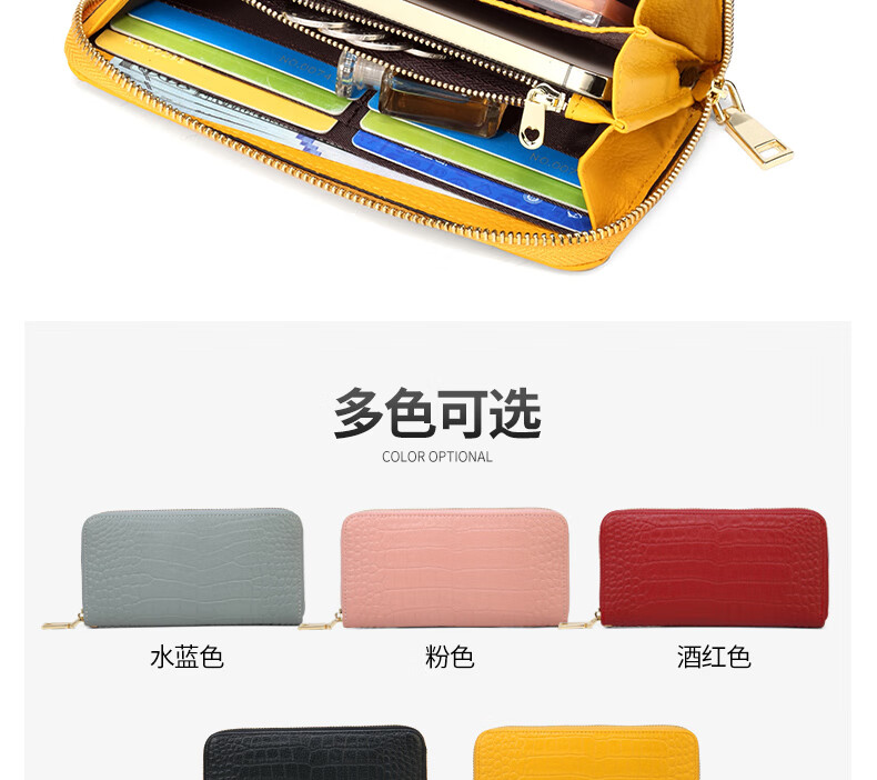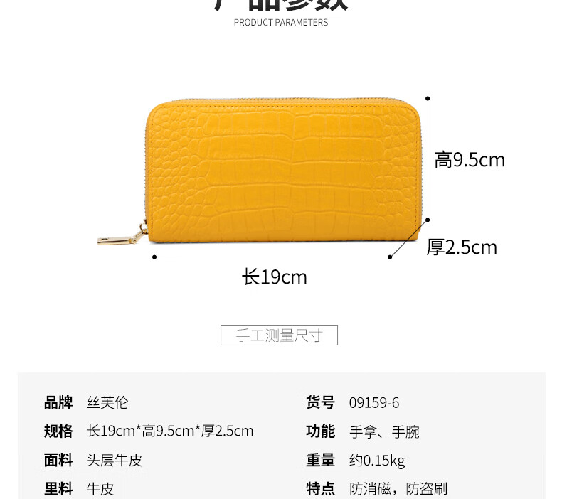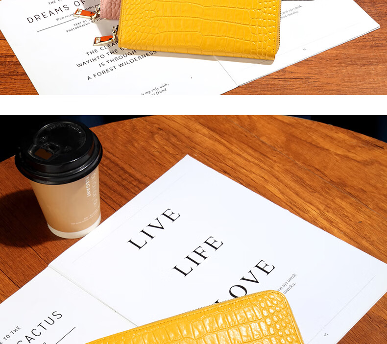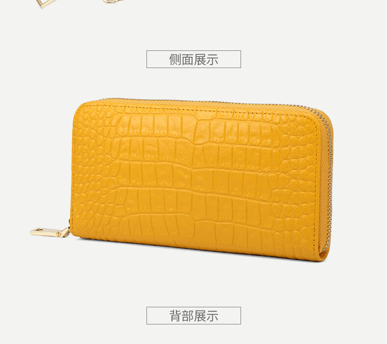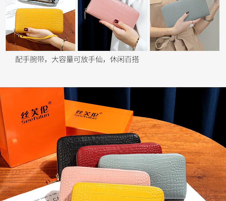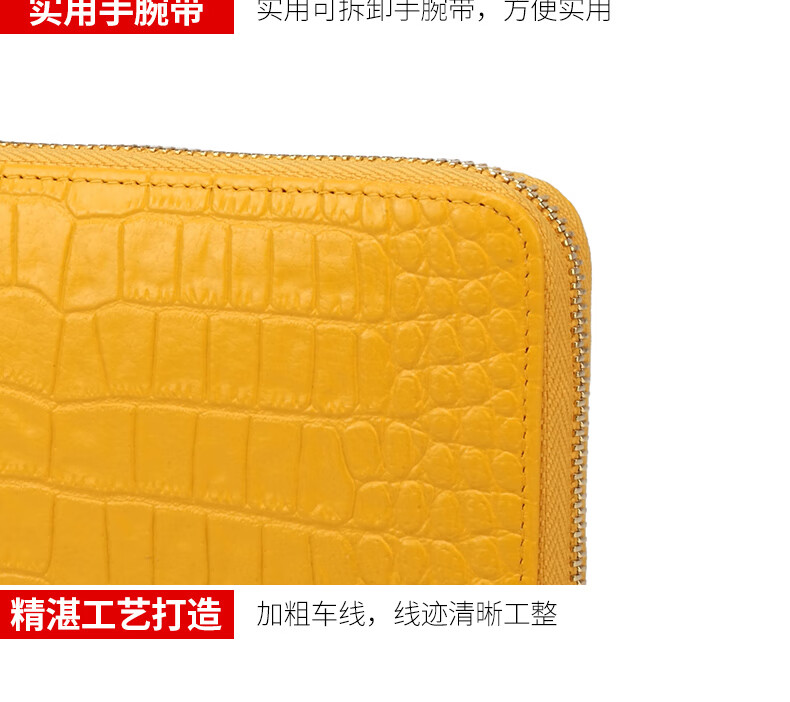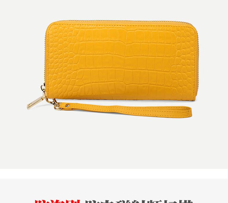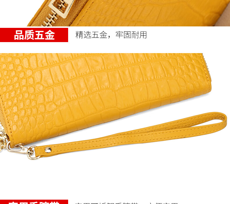 Sefulun (seefulun) high-end crocodile pattern genuine leather long hand wallet feminine 2026 new soft cowhide yellow handbag for mobile phone yellow - first layer cowhide (with wrist strap) DC5A561405