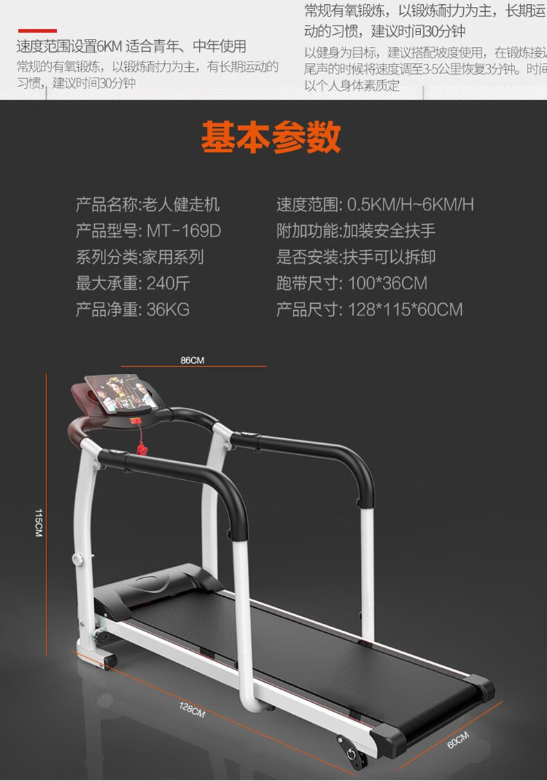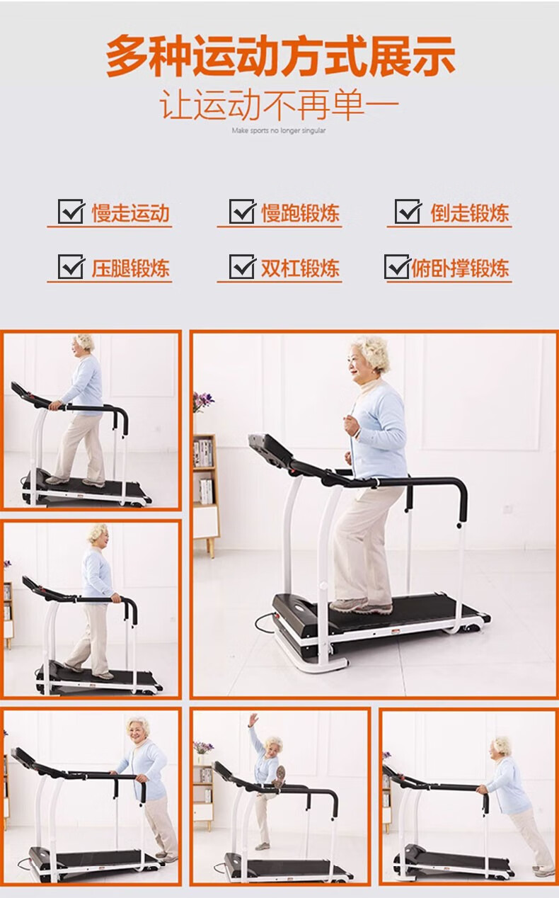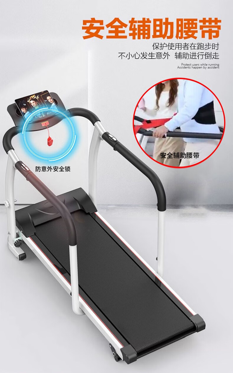 Youku treadmill household indoor walking machine small electric walking machine rehabilitation training fitness equipment for middle-aged and elderly people black adjustable speed + heart rate measurement + auxiliary belt