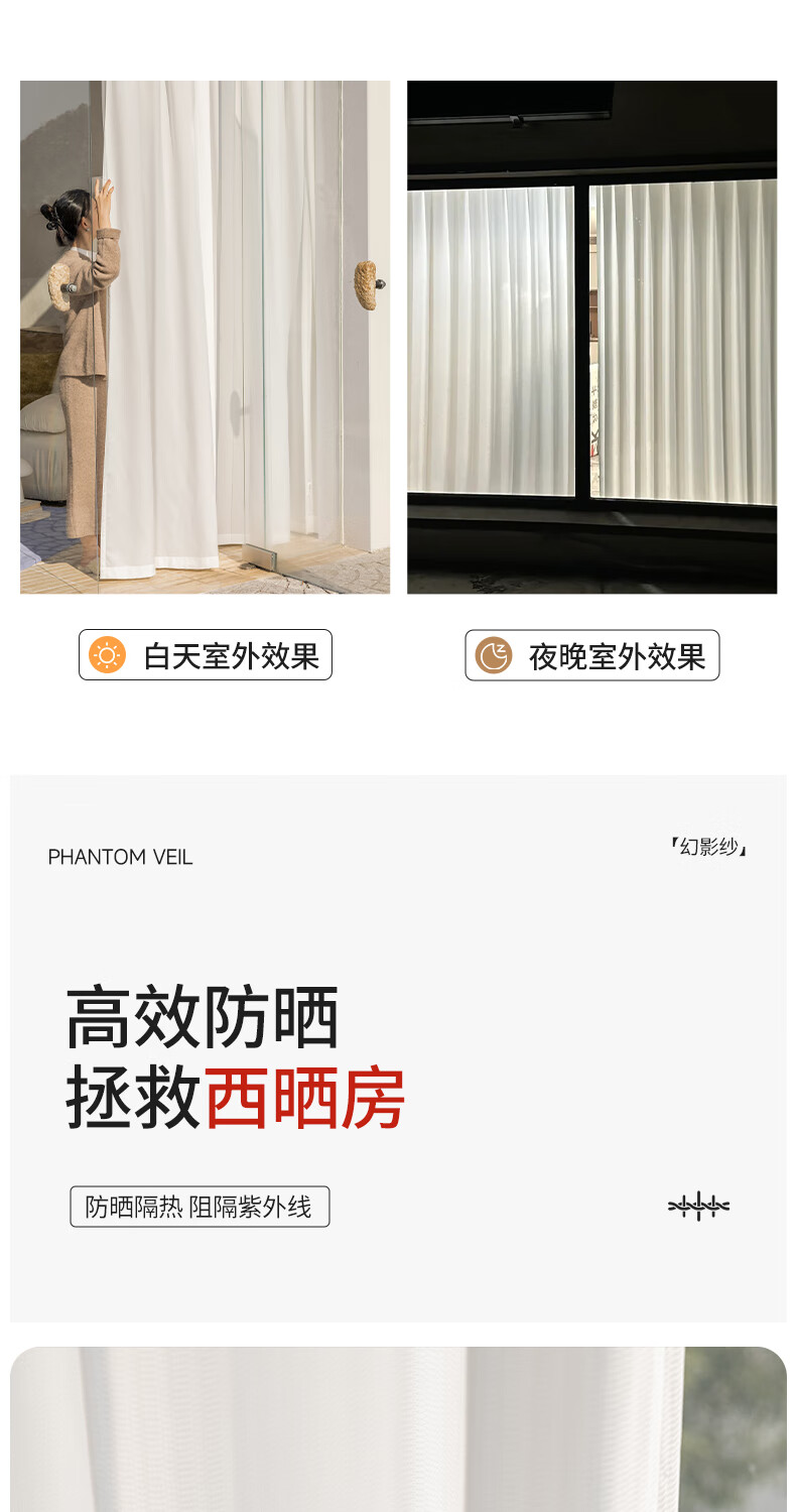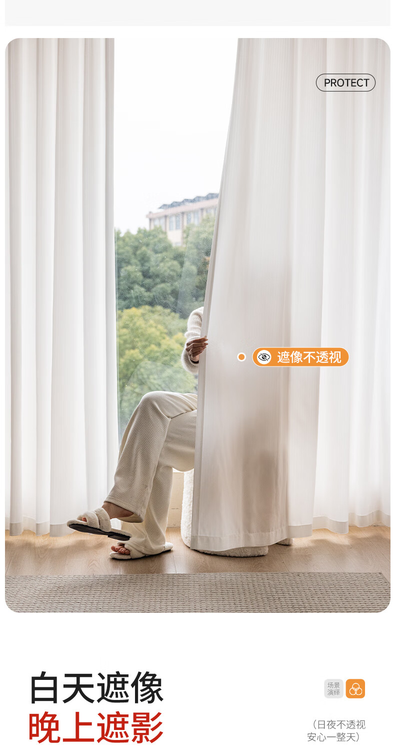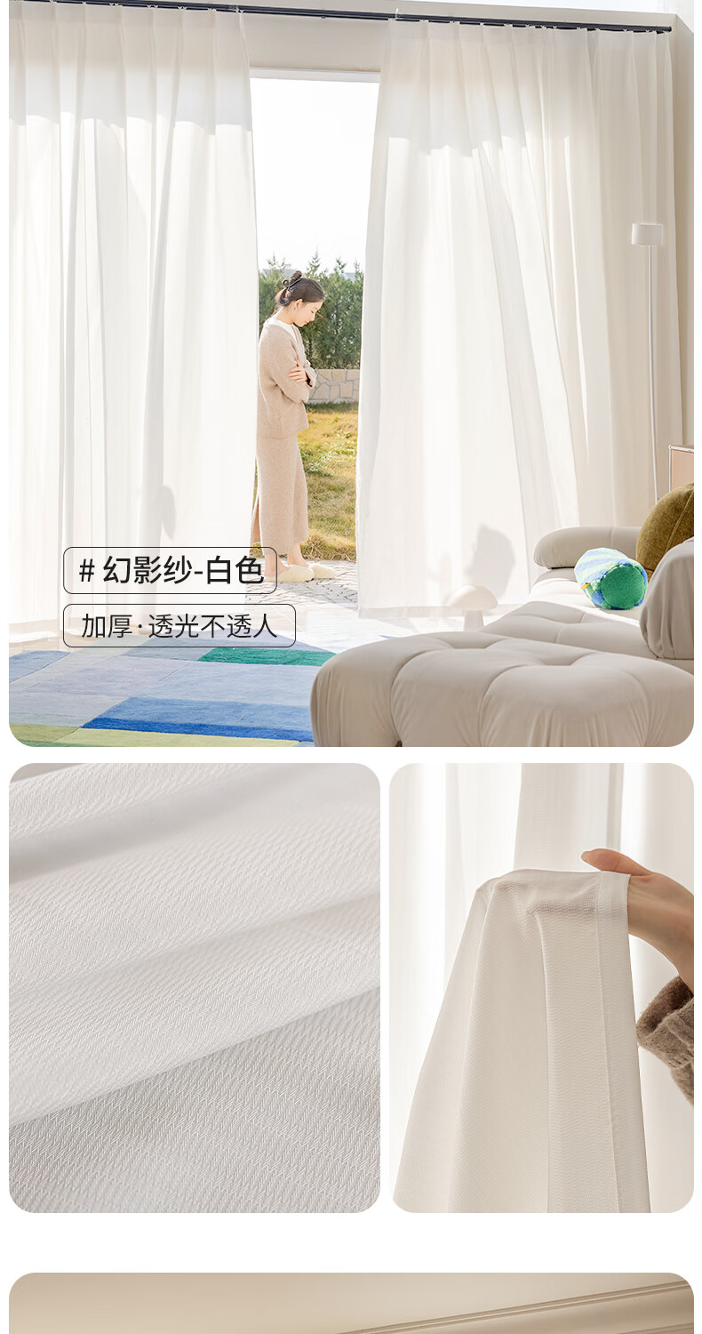 Jiafei (jiafei) phantom gauze curtain gauze curtain 2025 new style light and impermeable to people living room bay window balcony white window screen sun protection and heat insulation Phantom gauze - pearl white (truly light and impermeable to people) - same day delivery Width 4*Height 2.7 meters hook style 1 piece
