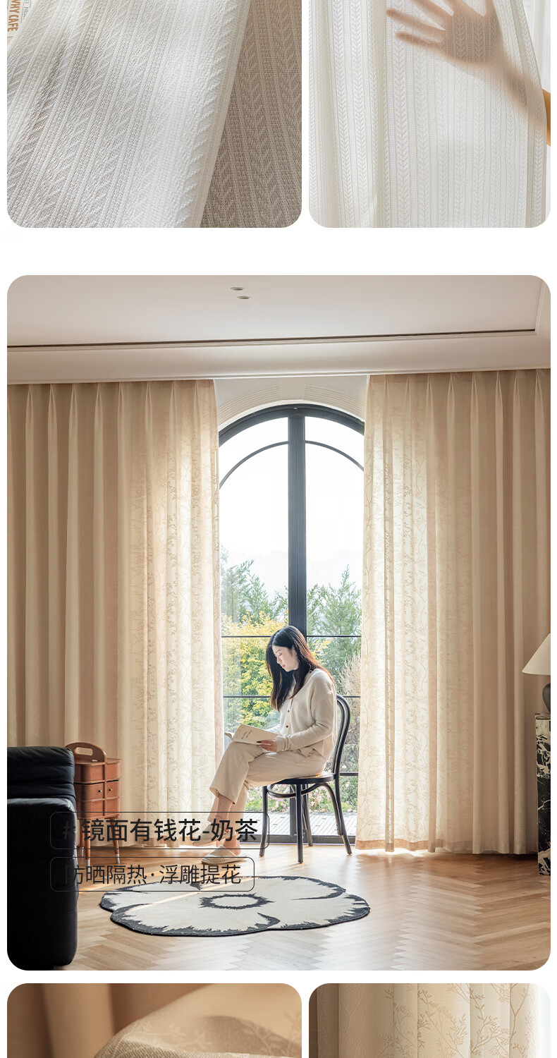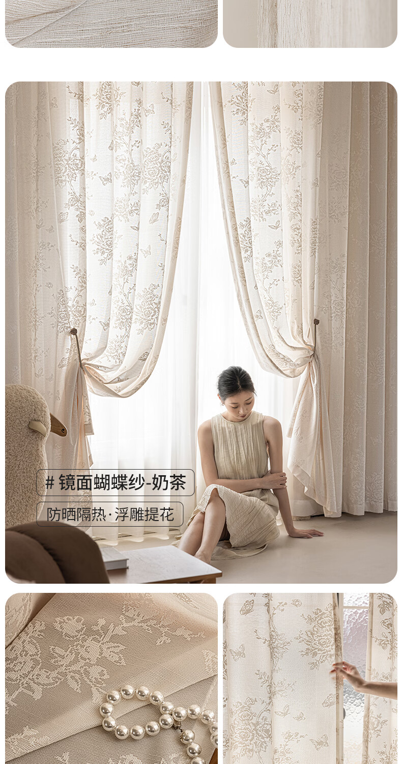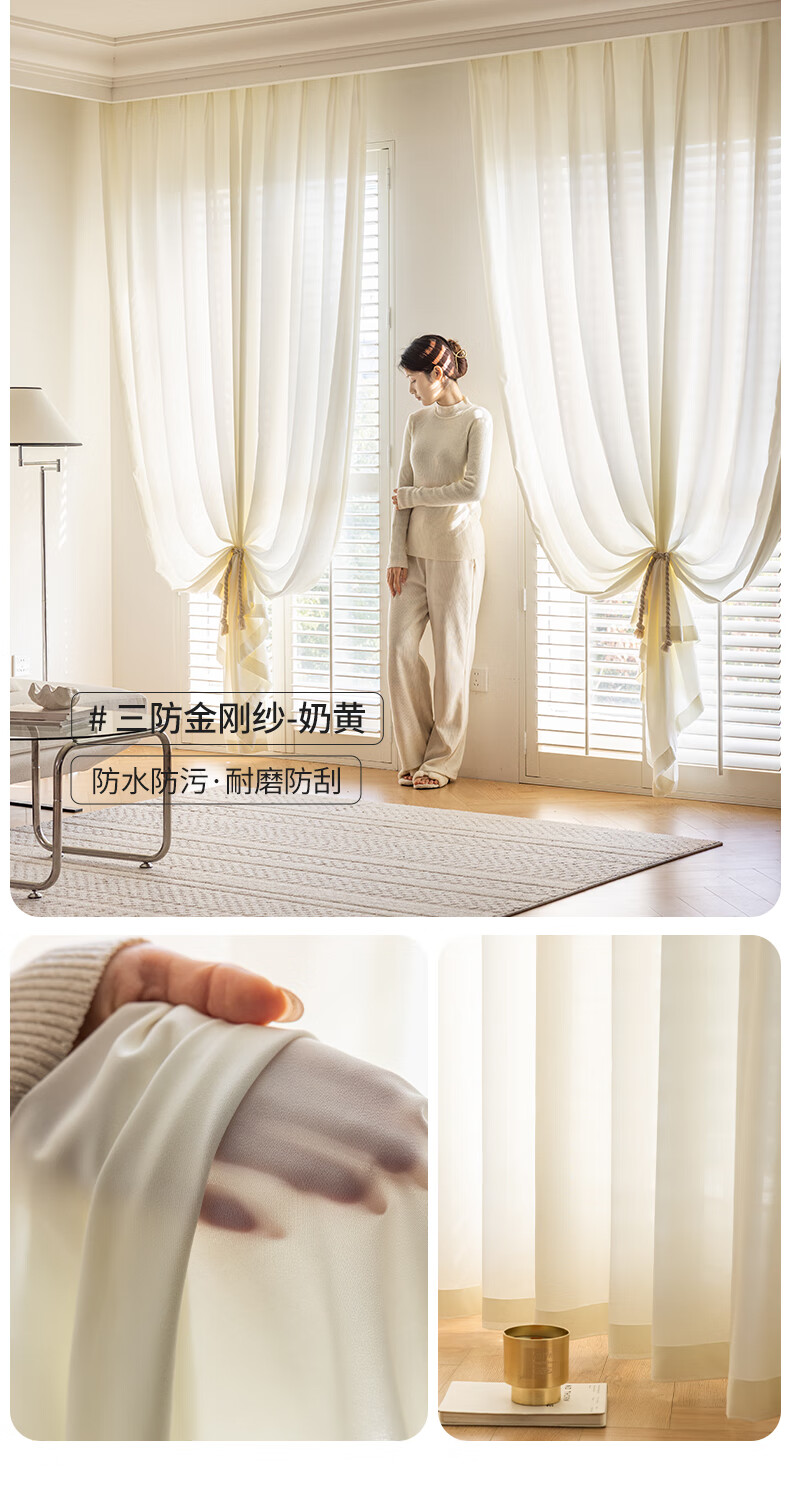 Jiafei (jiafei) phantom gauze curtain gauze curtain 2025 new style light and impermeable to people living room bay window balcony white window screen sun protection and heat insulation Phantom gauze - pearl white (truly light and impermeable to people) - same day delivery Width 4*Height 2.7 meters hook style 1 piece