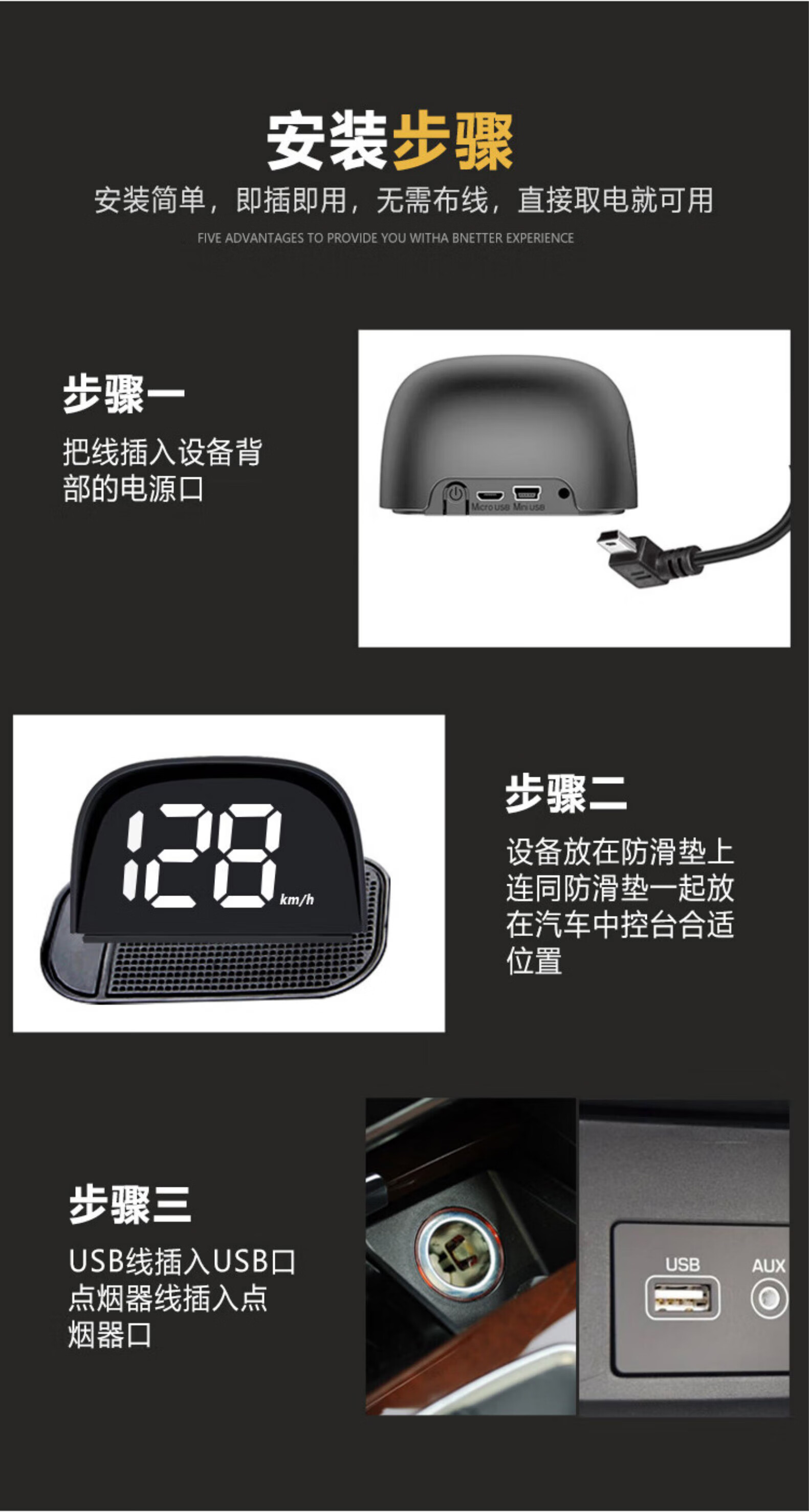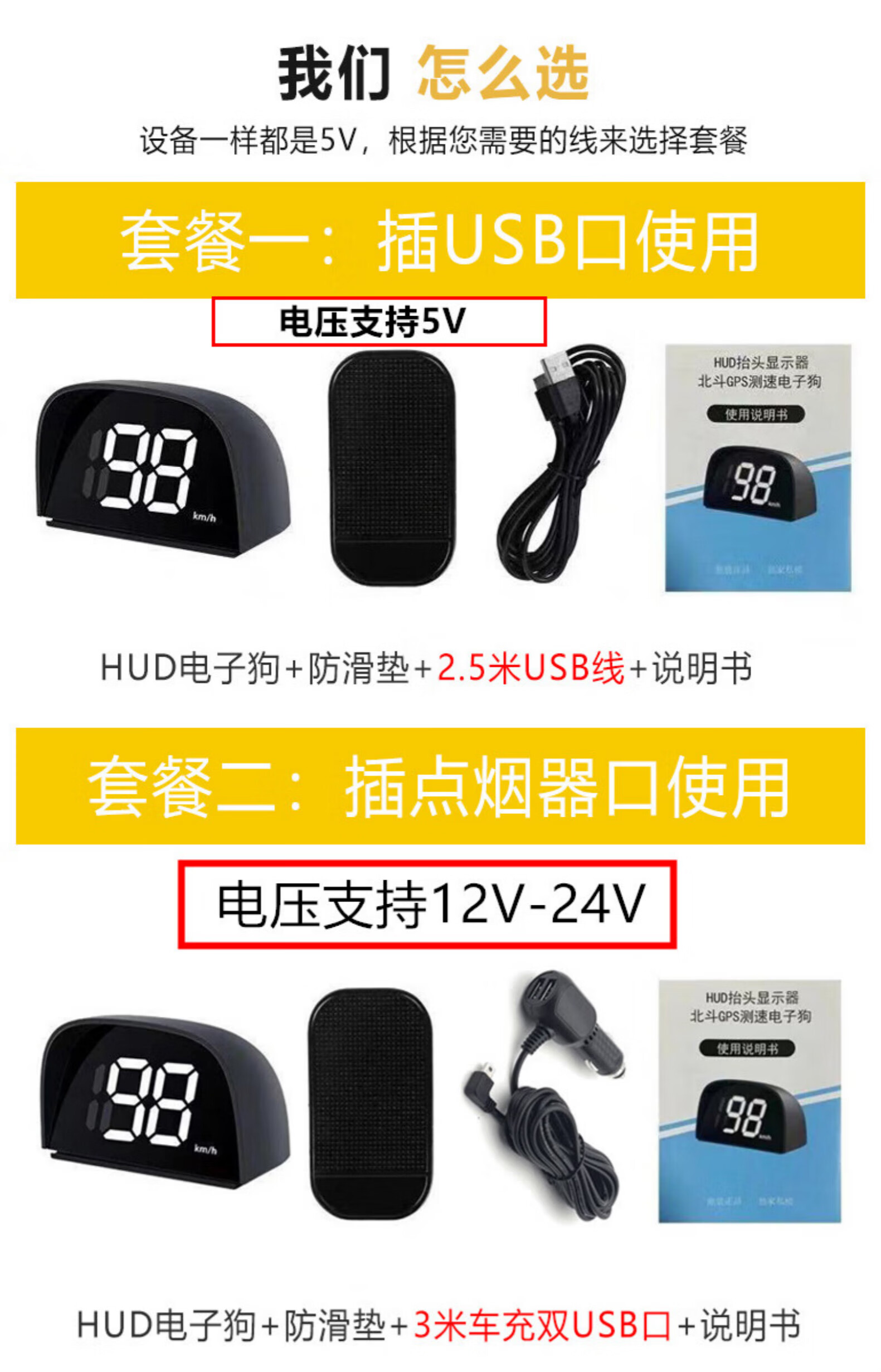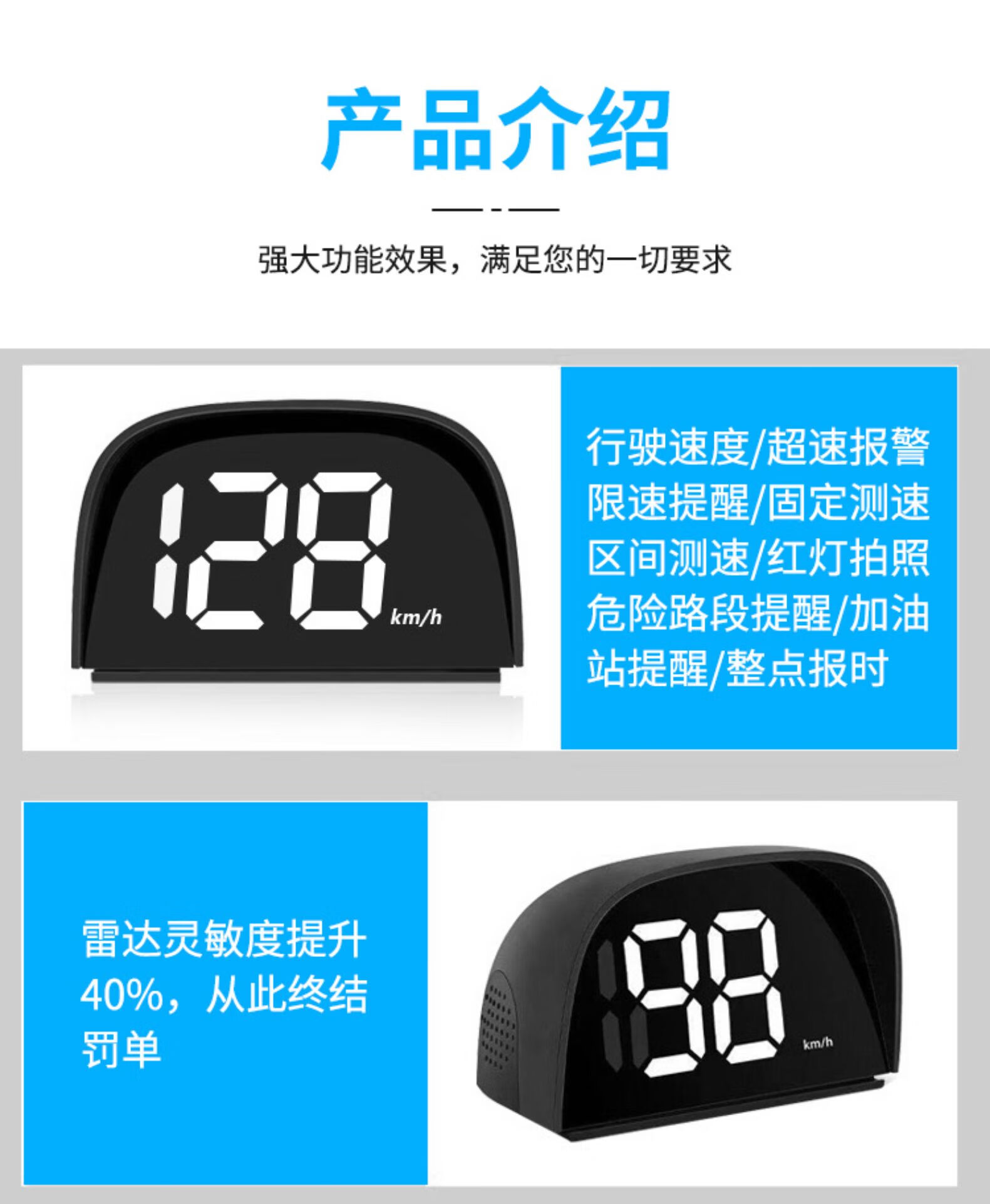 CLCEY is suitable for the new Beidou head-up speed display HUD vehicle-mounted intelligent voice speed warning speed radar HUD speed warning instrument + USB cable