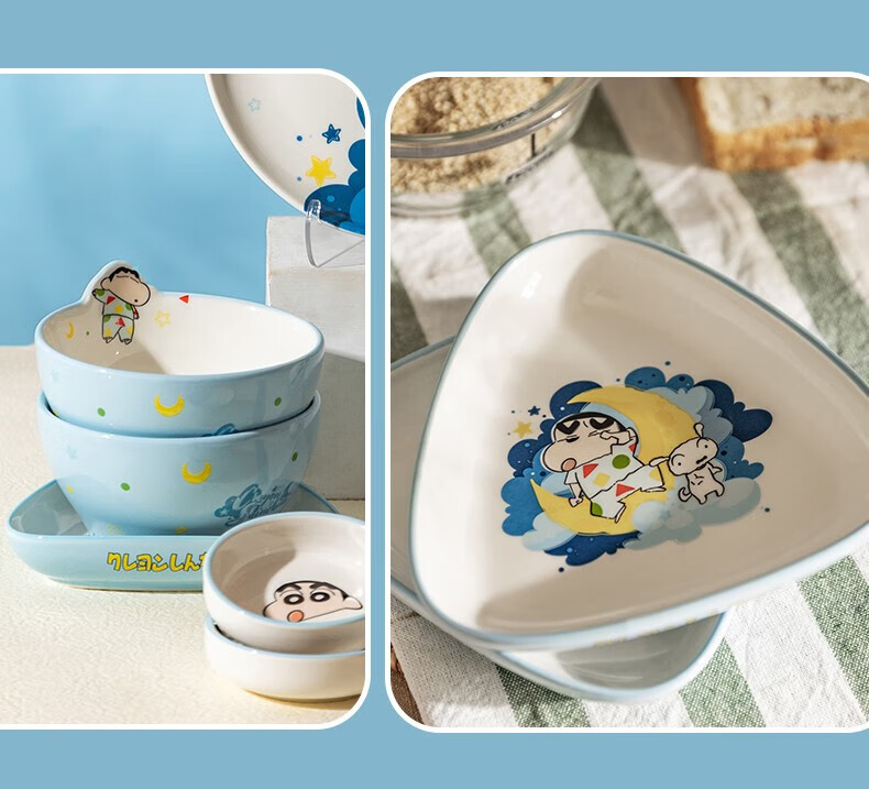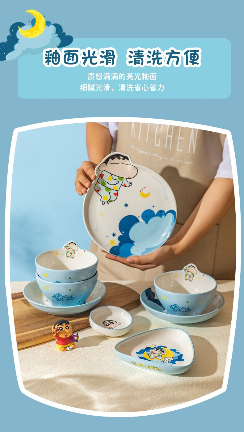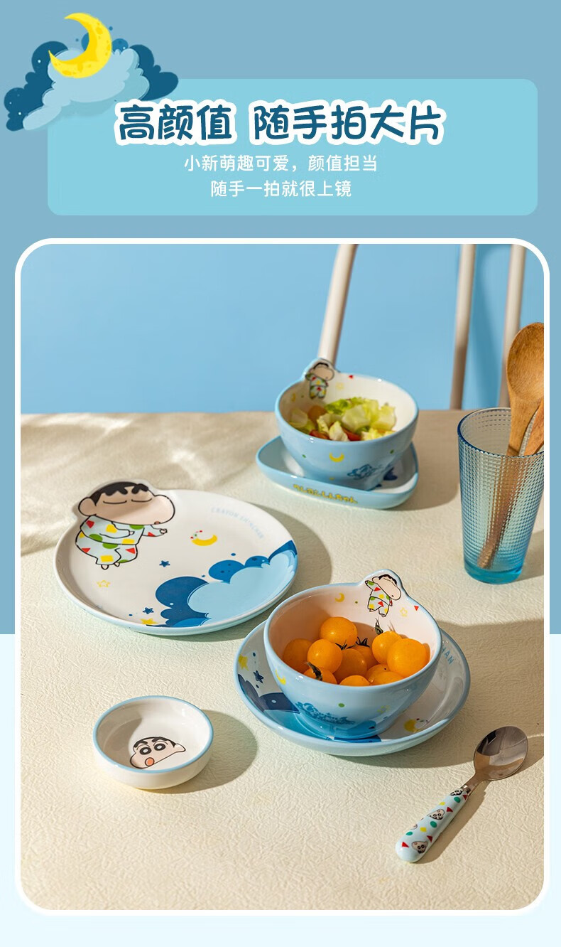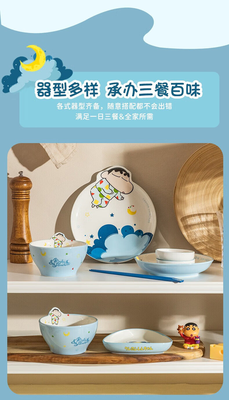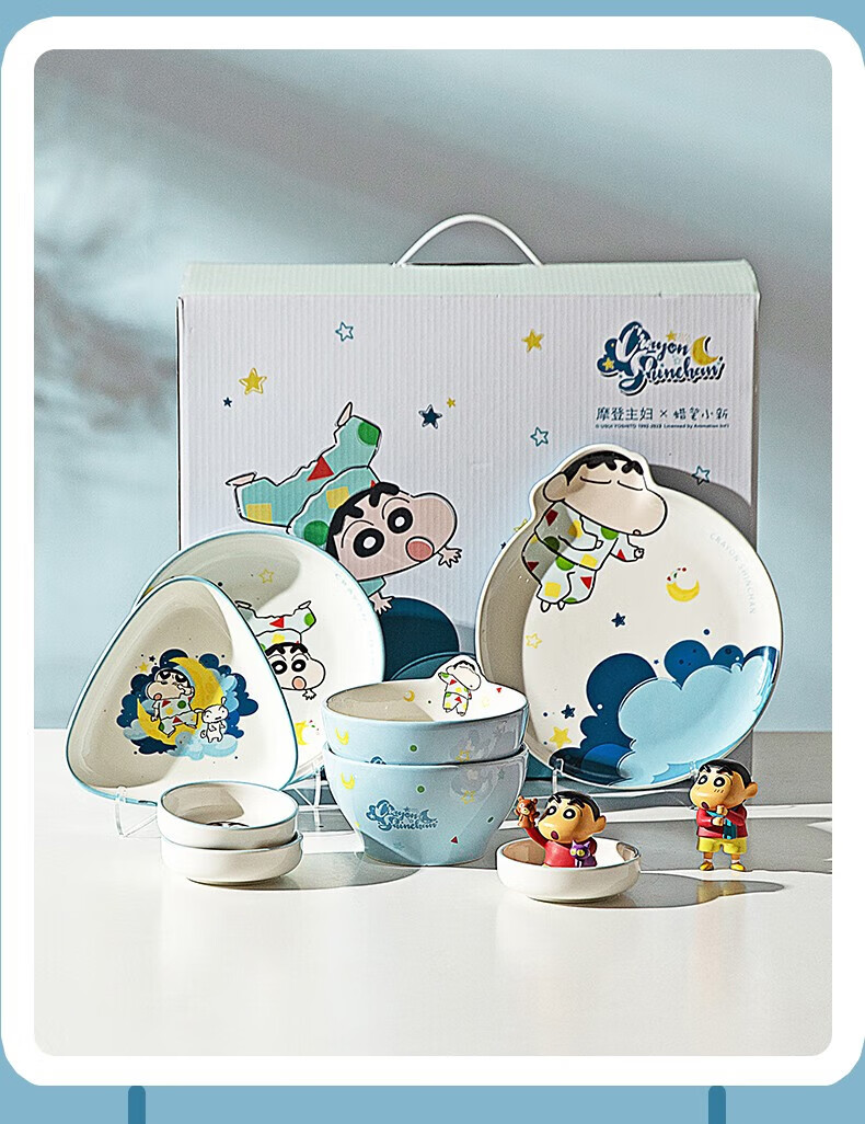Modern Housewife Crayon Shin-chan Cartoon Tableware Set Ceramic Bowls and Tableware Children's Rice Bowl Gift Bowl and Dish Set Gift Box 9-piece Set Daydreamer Food for Two Gift Box