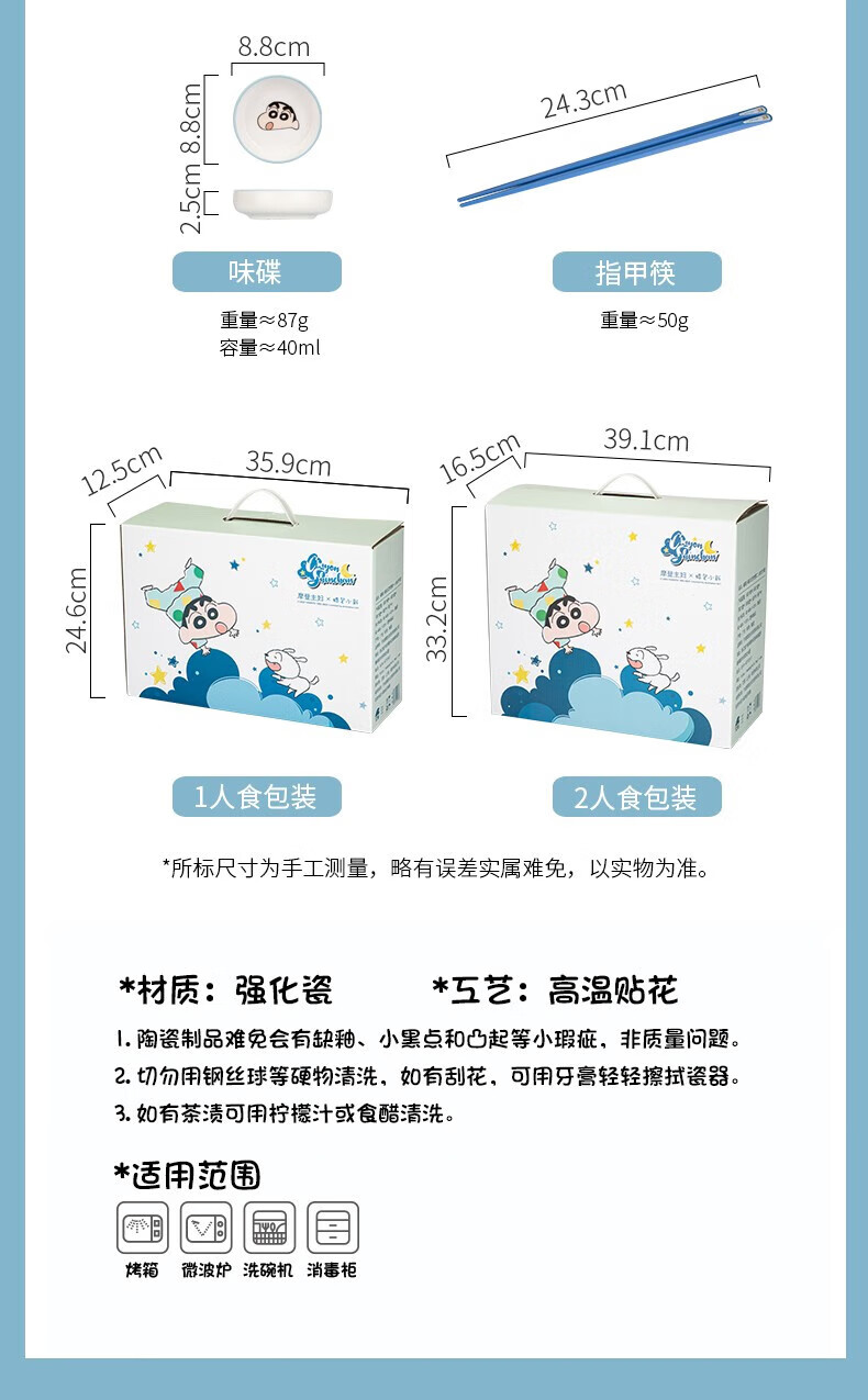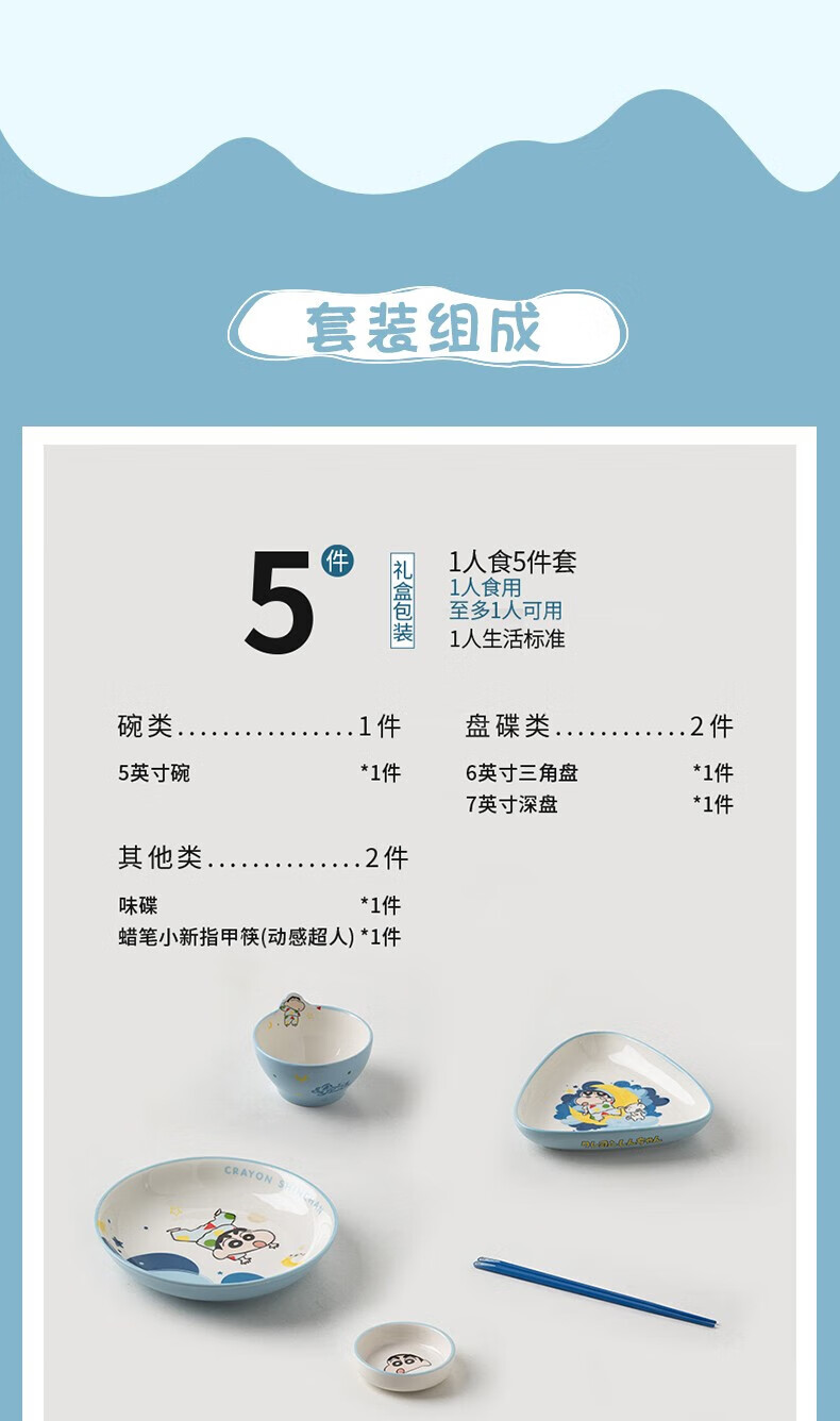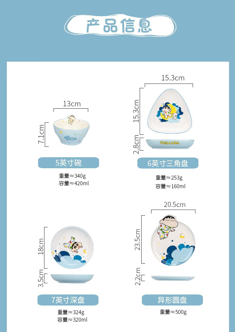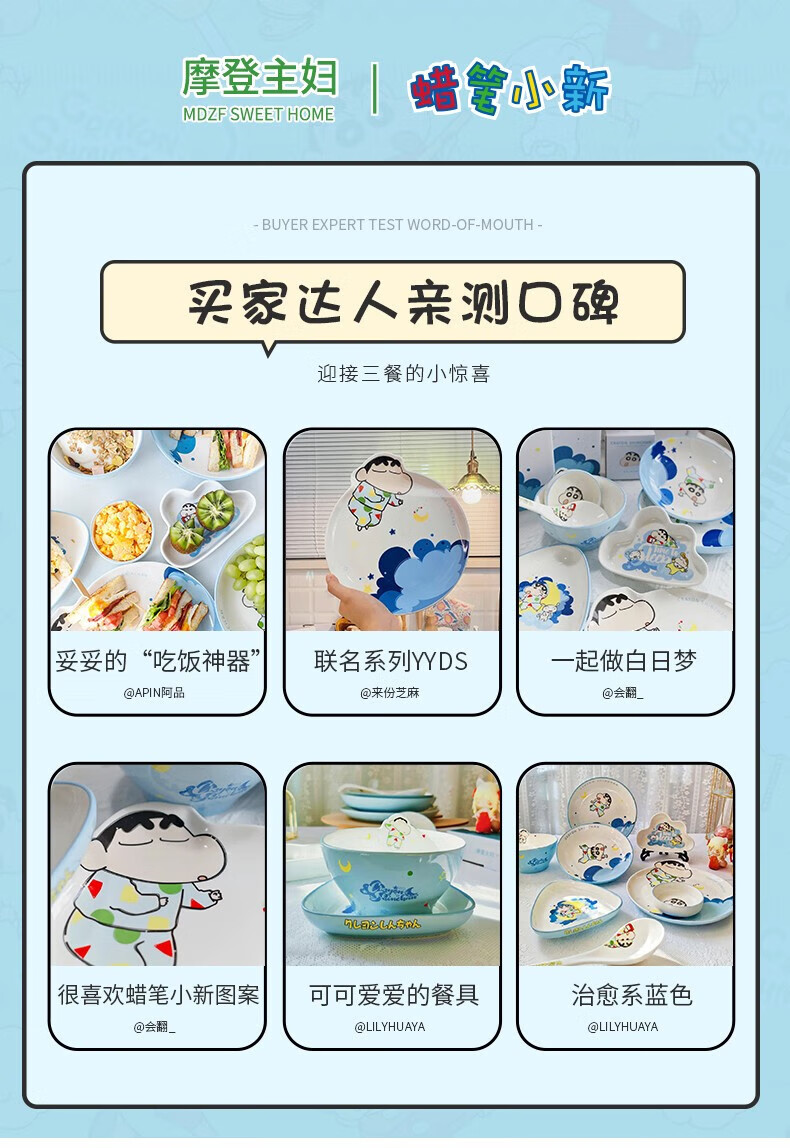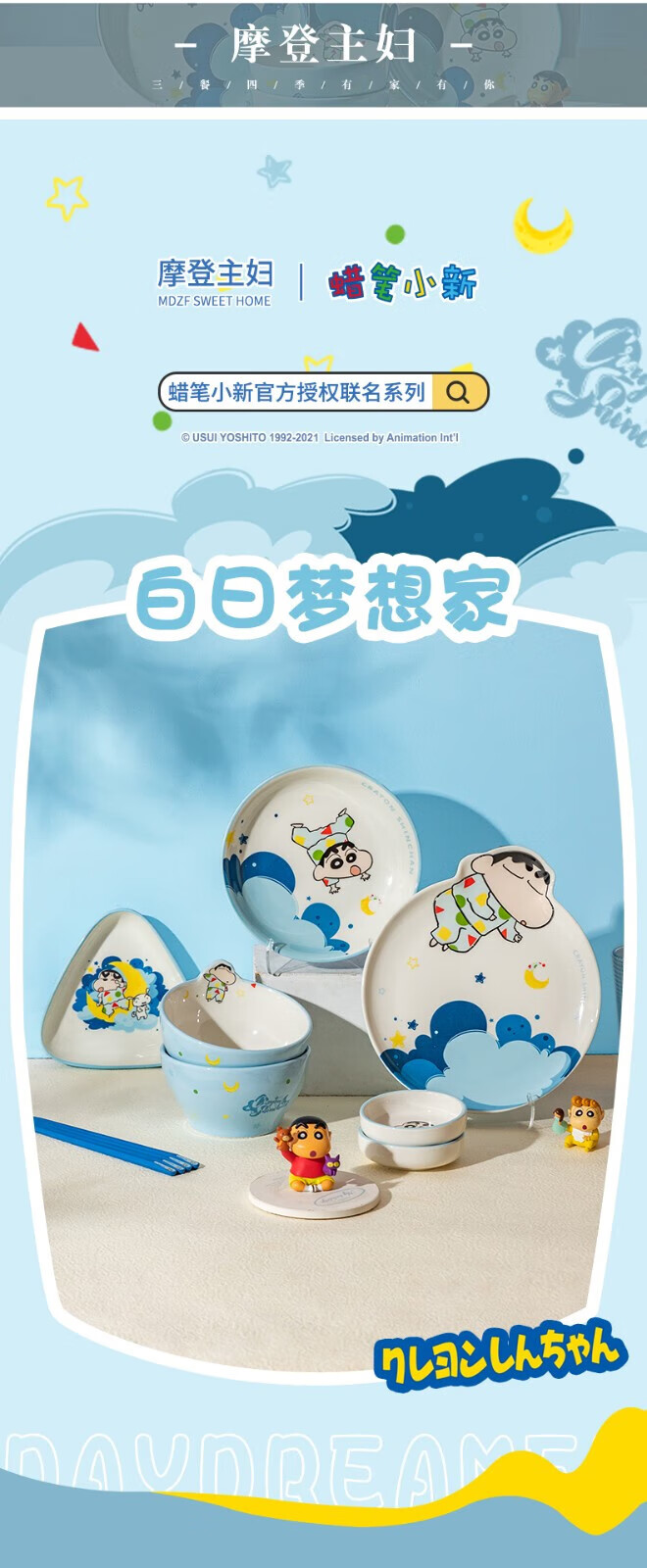 Modern Housewife Crayon Shin-chan Cartoon Tableware Set Ceramic Bowls and Tableware Children's Rice Bowl Gift Bowl and Dish Set Gift Box 9-piece Set Daydreamer Food for Two Gift Box