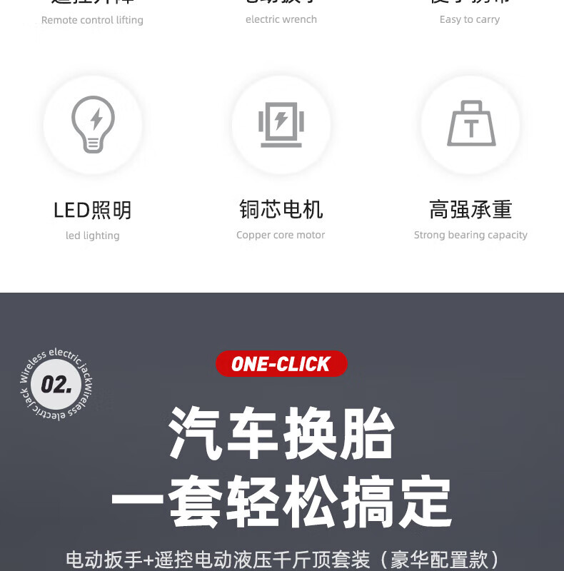 Hugong Automobile Wireless Electric Hydraulic Jack Remote Control Lithium Battery Rechargeable SUV Multifunctional Tire Changing Wrench Increased Type 5 Ton Top 54CM Remote Control Charging Model