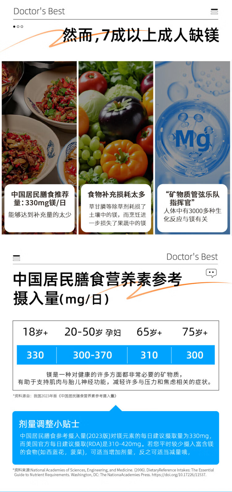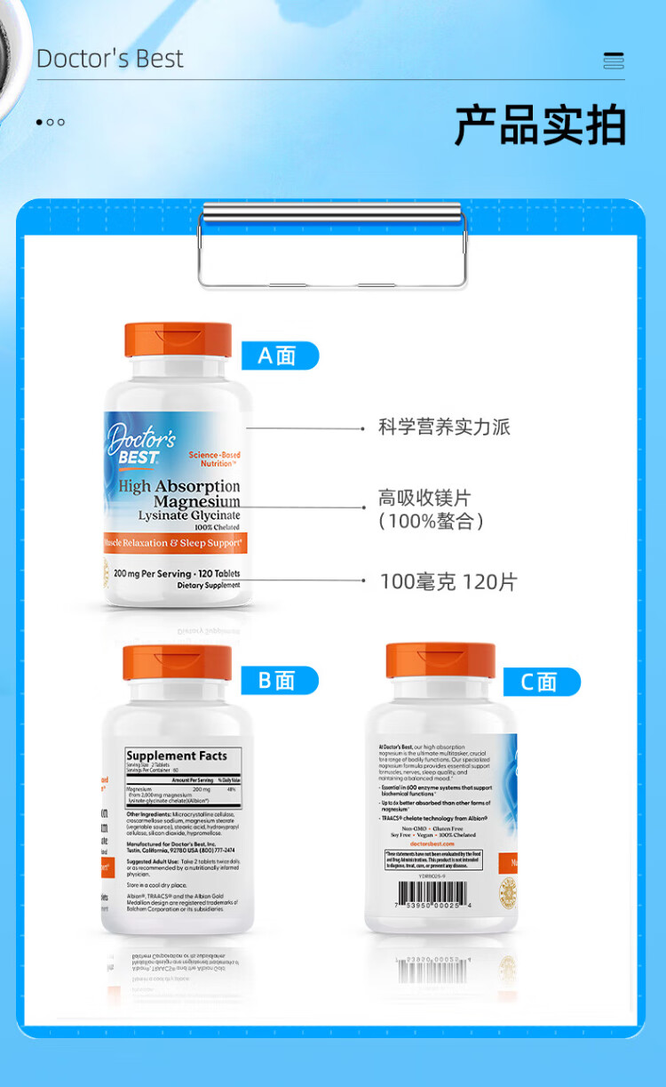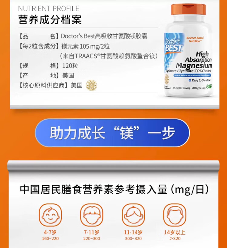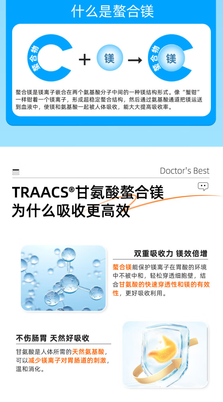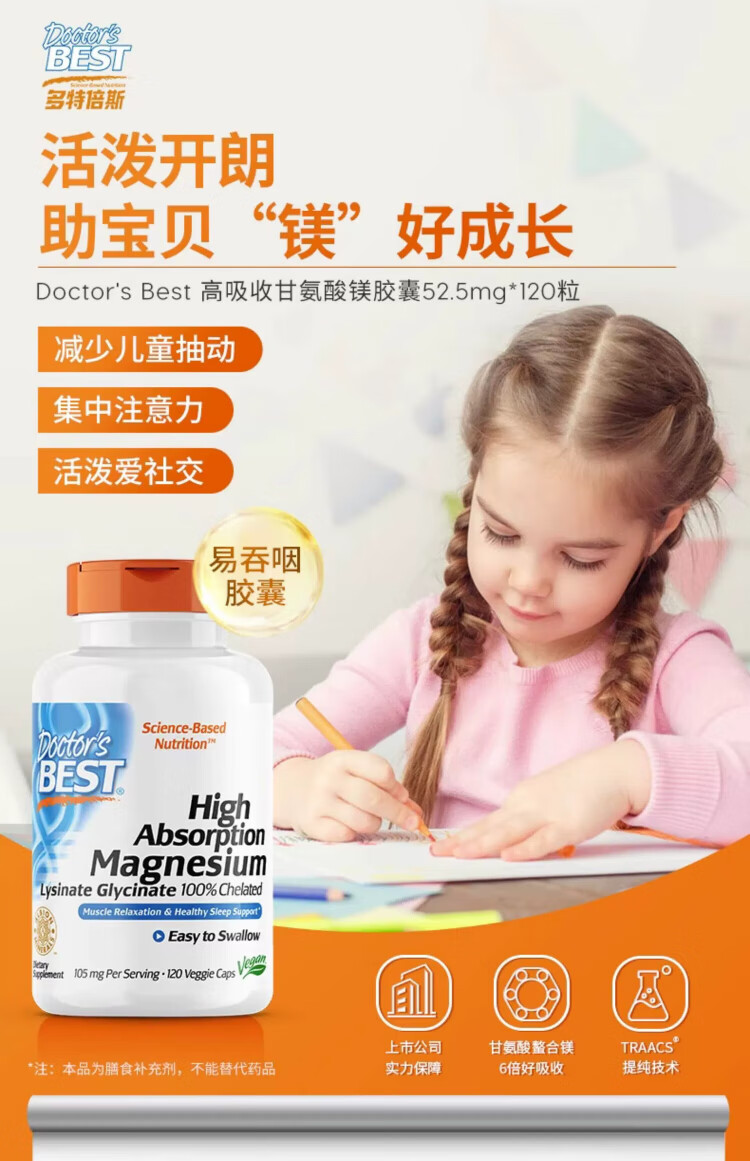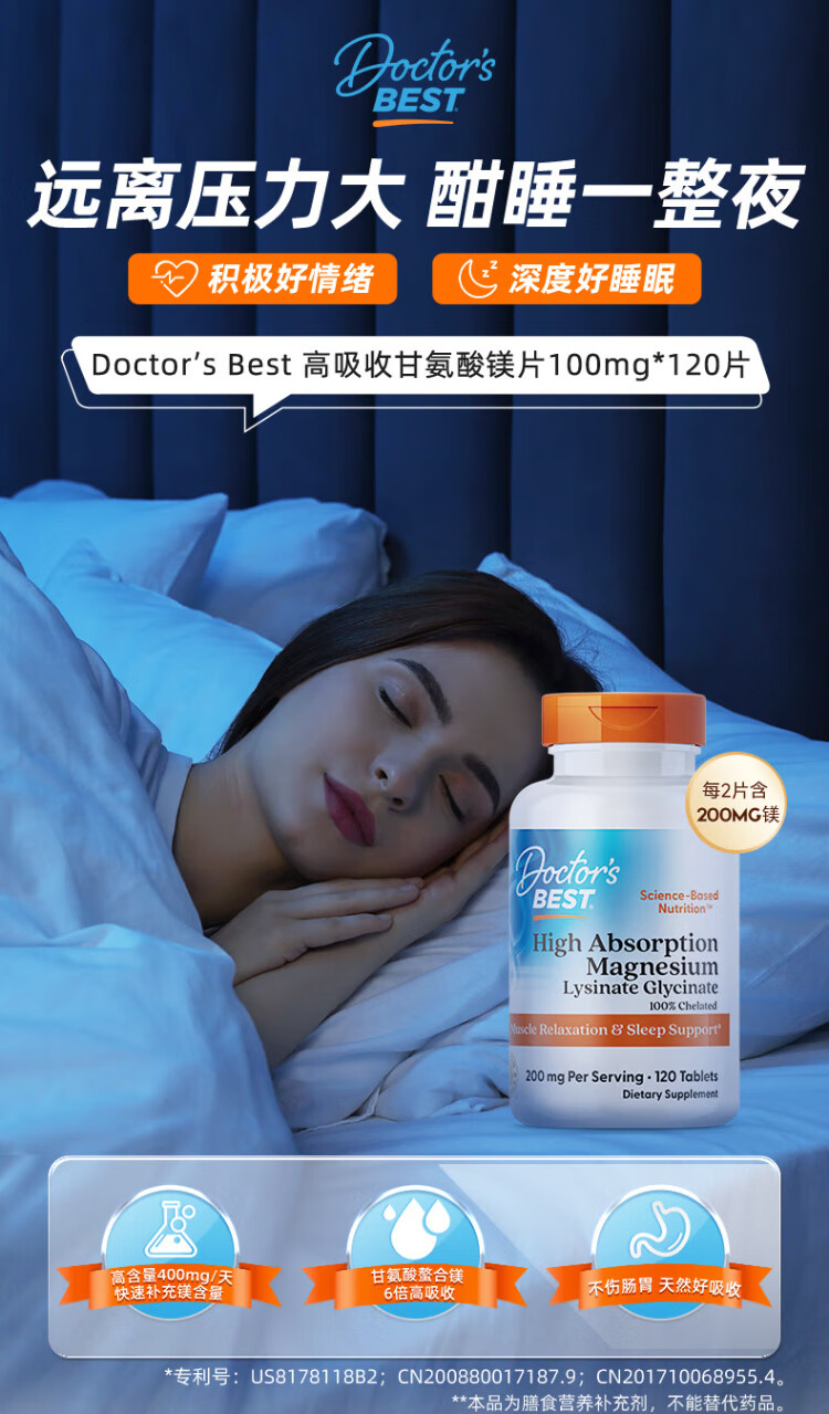 Doctors Best Dotebest Jindawei Glycinate Magnesium Tablets for middle-aged and elderly adults to improve sleep and leg cramps. Imported from the United States. Relaxing Magnesium Dream Magnesium Tablets-60 Days Pack 240 Tablets*1 Bottle