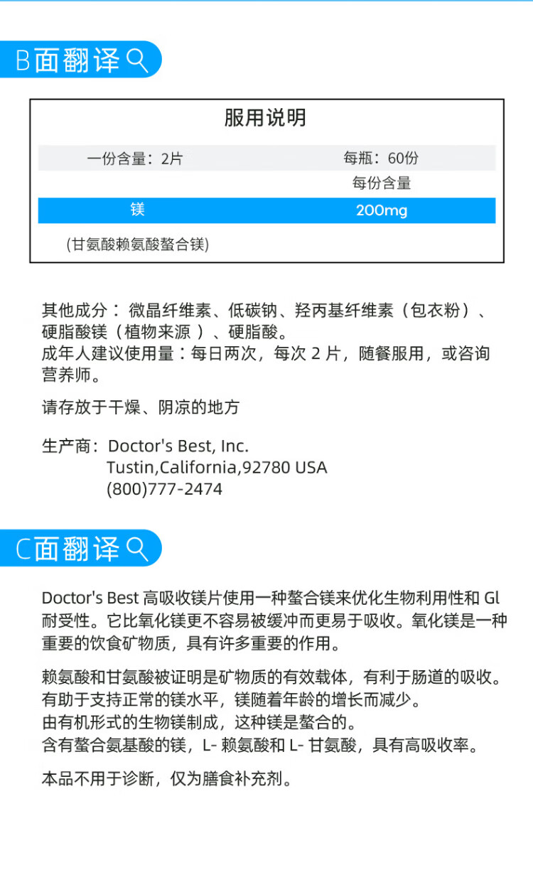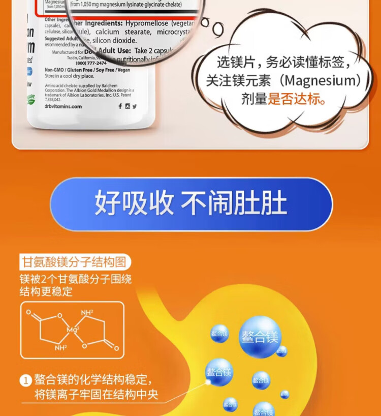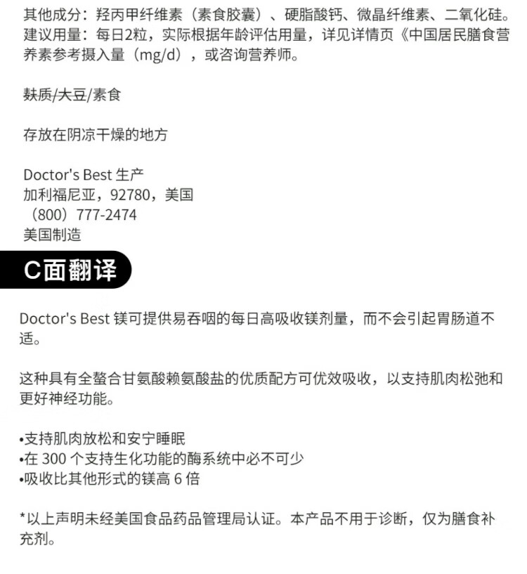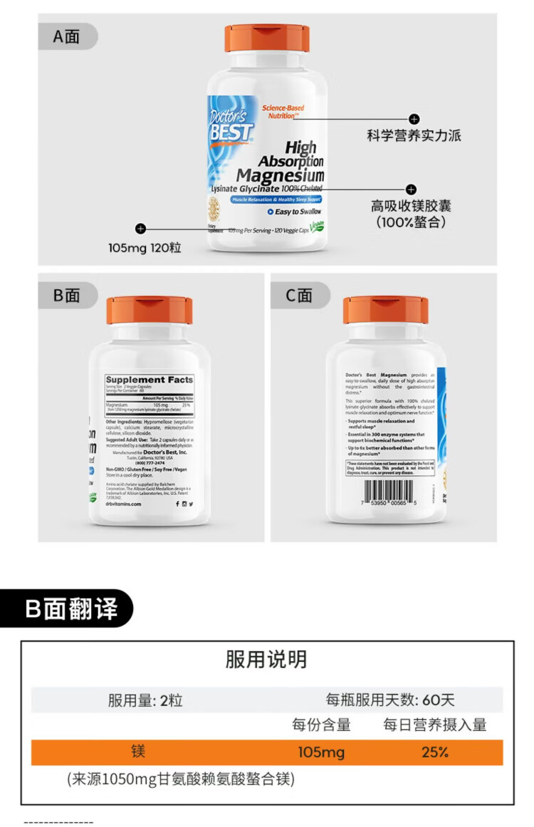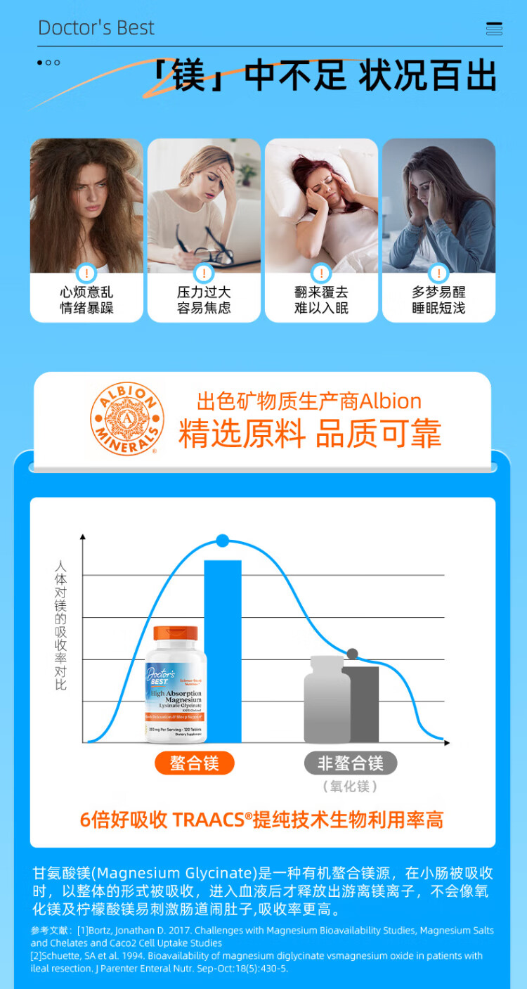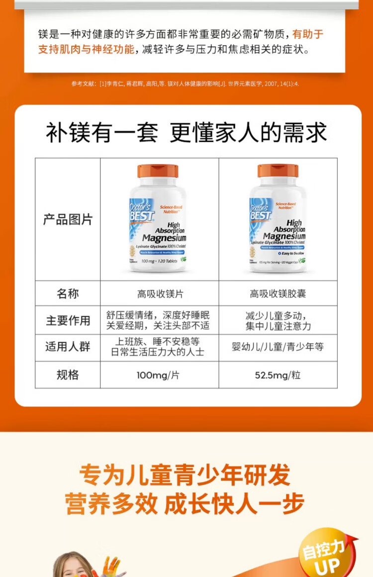 Doctors Best Dotebest Jindawei Glycinate Magnesium Tablets for middle-aged and elderly adults to improve sleep and leg cramps. Imported from the United States. Relaxing Magnesium Dream Magnesium Tablets-60 Days Pack 240 Tablets*1 Bottle