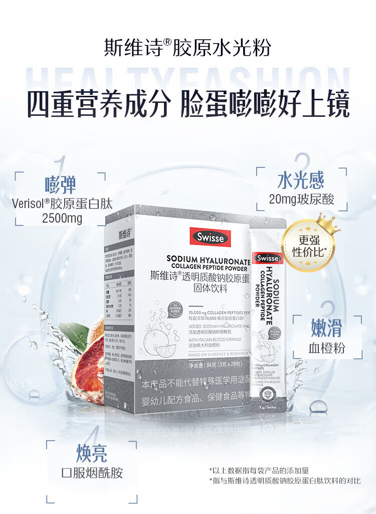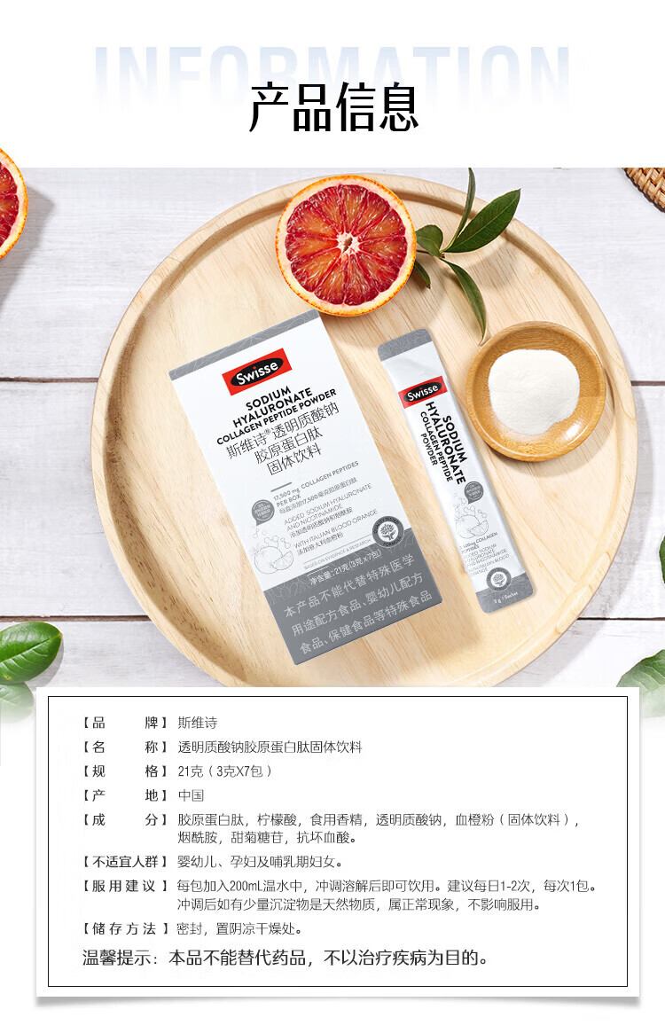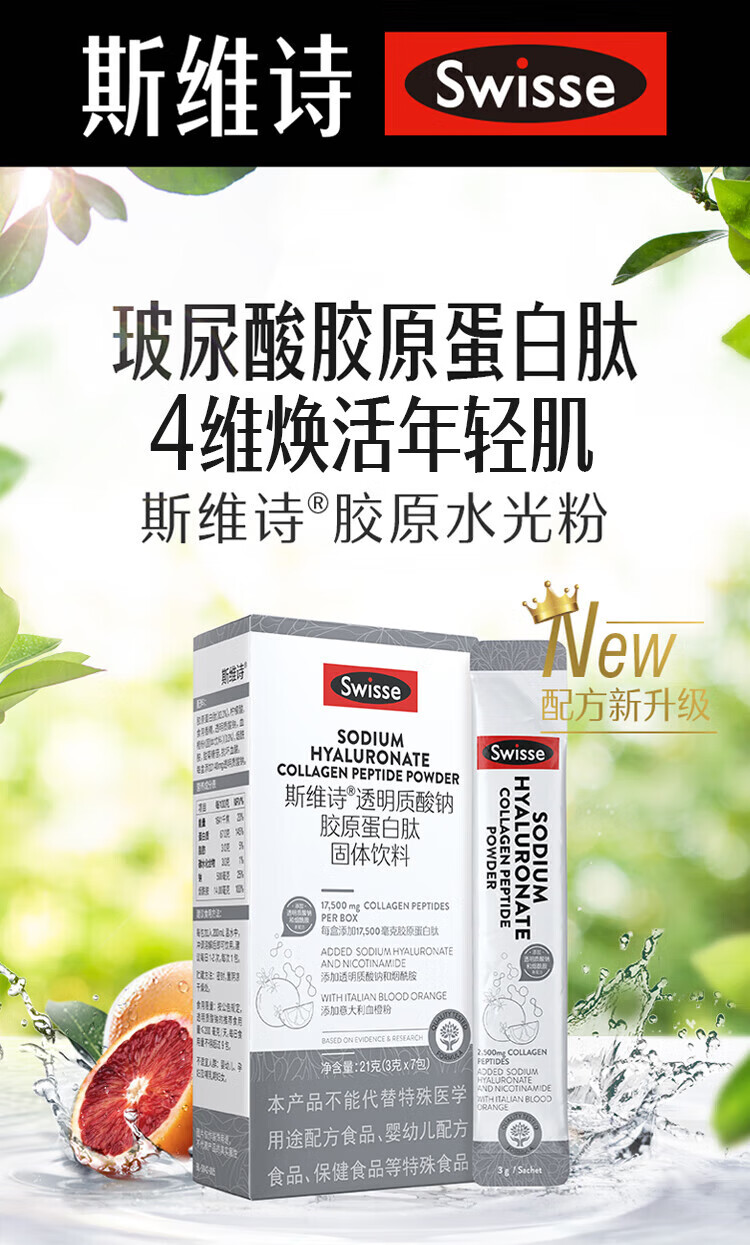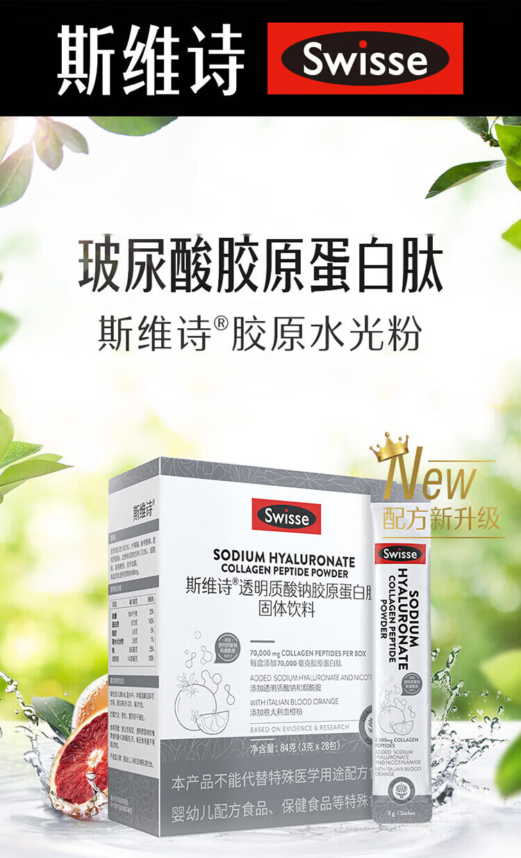 Swisse Collagen Hydrating Powder Sodium Hyaluronate Collagen Peptide Solid Drink Contains Blood Orange Hyaluronic Acid Affordable Double Box Collagen Hydrating Powder 28 Bags*2 Boxes