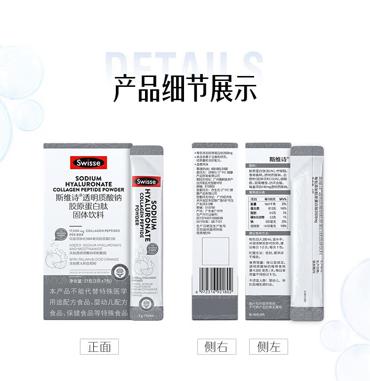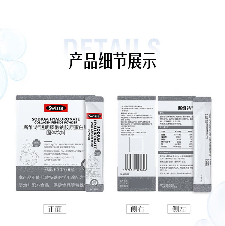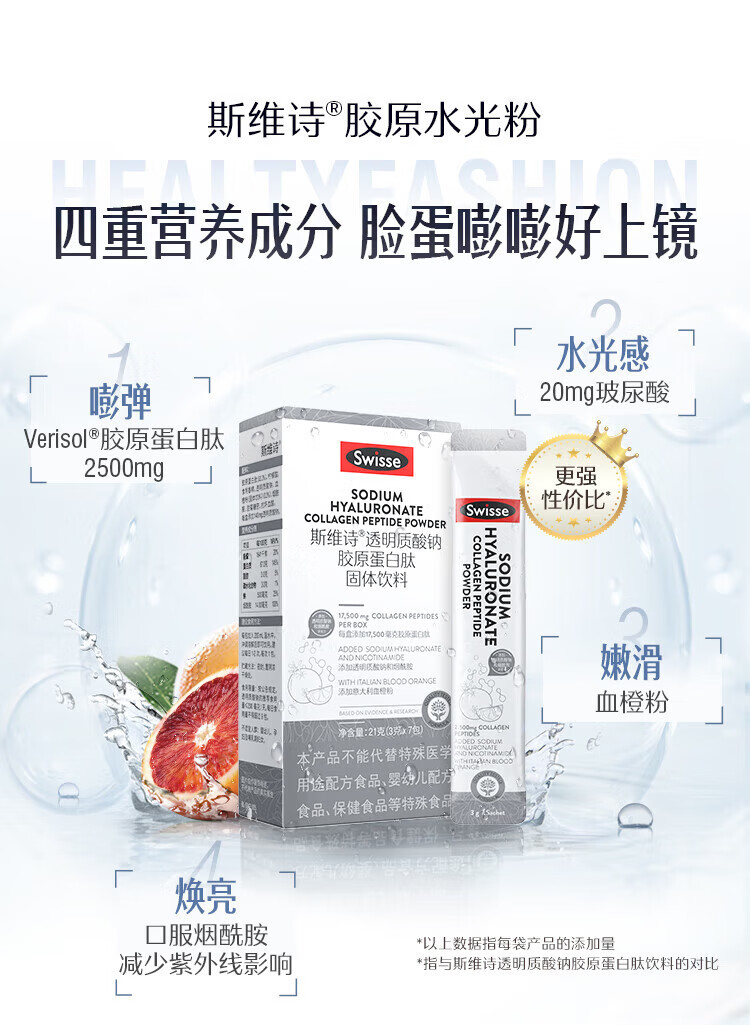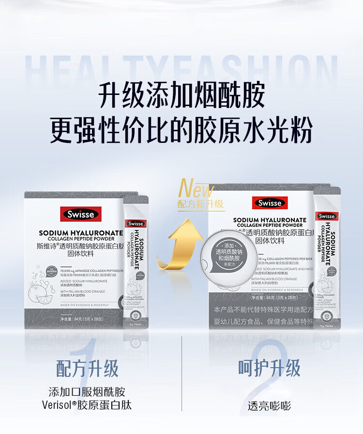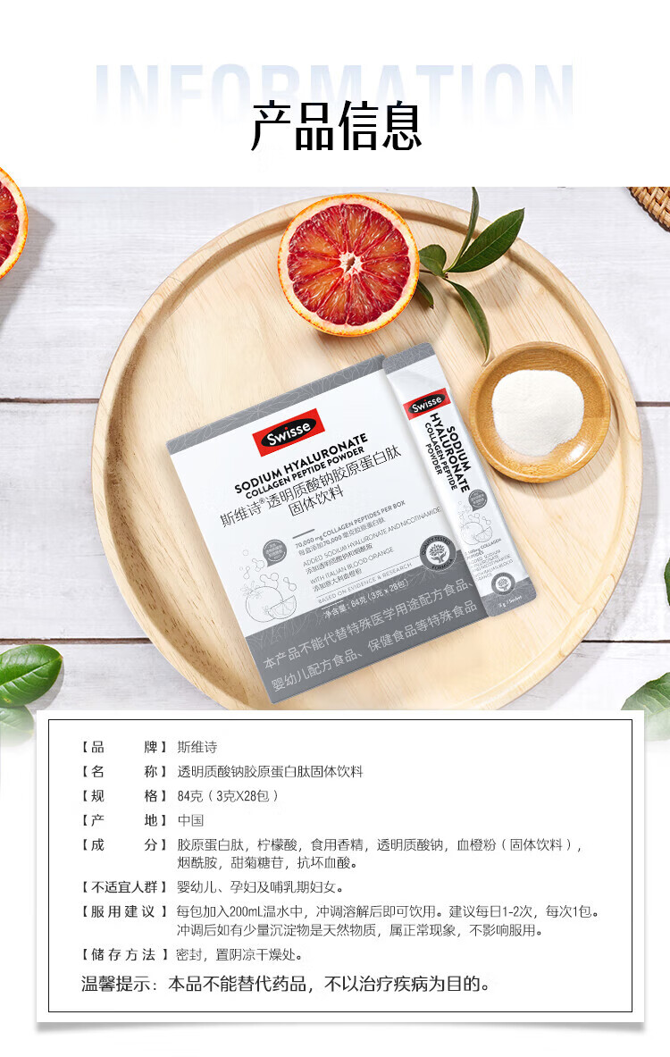 Swisse Collagen Hydrating Powder Sodium Hyaluronate Collagen Peptide Solid Drink Contains Blood Orange Hyaluronic Acid Affordable Double Box Collagen Hydrating Powder 28 Bags*2 Boxes