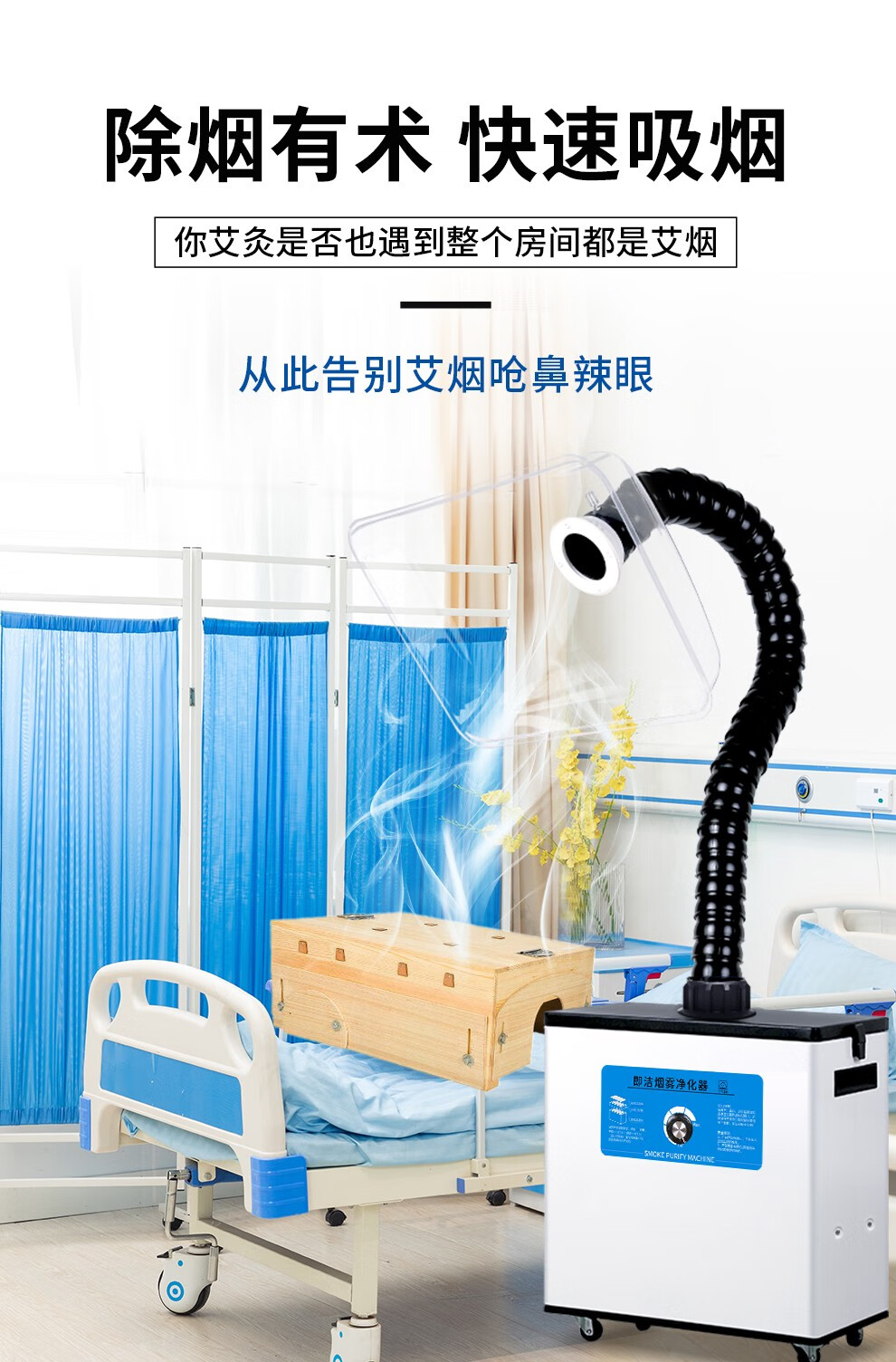 Jijie moxibustion smoke purifier, household mobile smoke exhauster, moxibustion hall, traditional Chinese medicine hospital, beauty salon, smoking and deodorizing artifact, single-head round cover (special for navel moxibustion) to quickly remove smoke