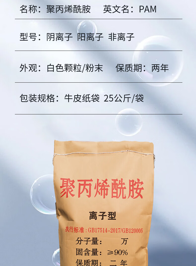 Polyacrylamide pam anionic cationic nonionic precipitant flocculant industrial wastewater treatment agent anion 6 million 25kg/bag