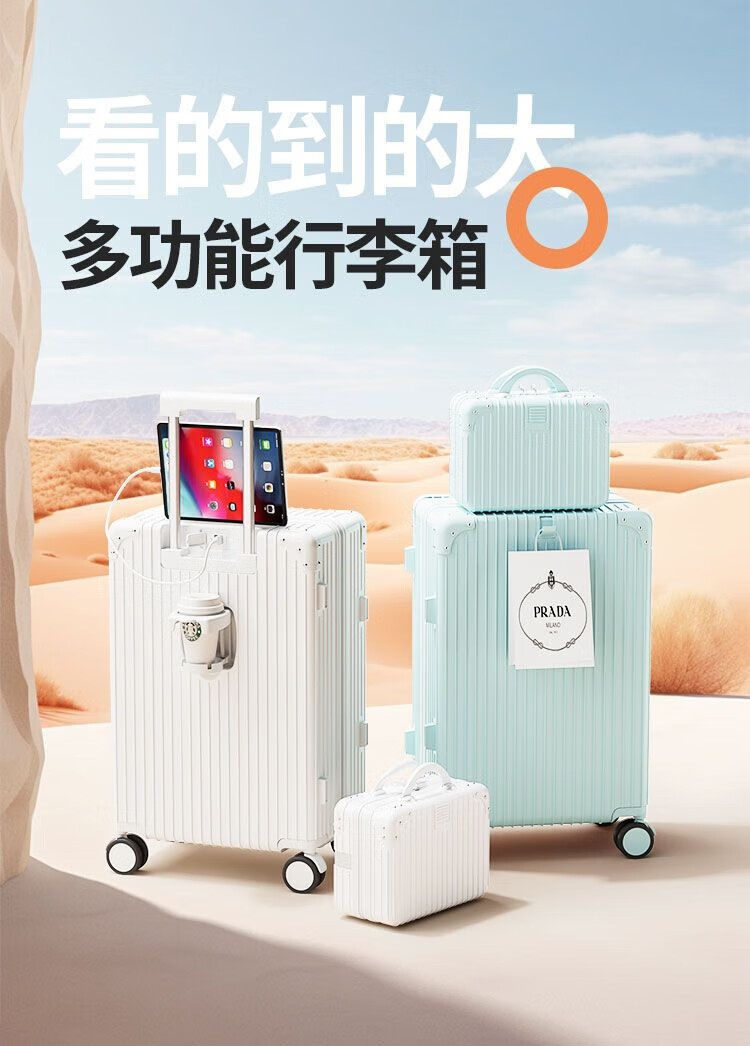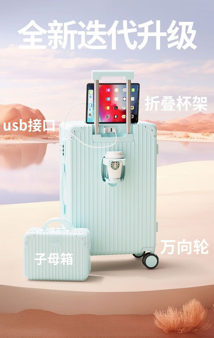 Double Star Multifunctional Suitcase Large Capacity Trolley Case Men's Large Luggage Password Box Girls' Large Suitcase Boarding Case Milky White Multifunctional + Mother and Child Box 28 Inch Business Travel Abroad