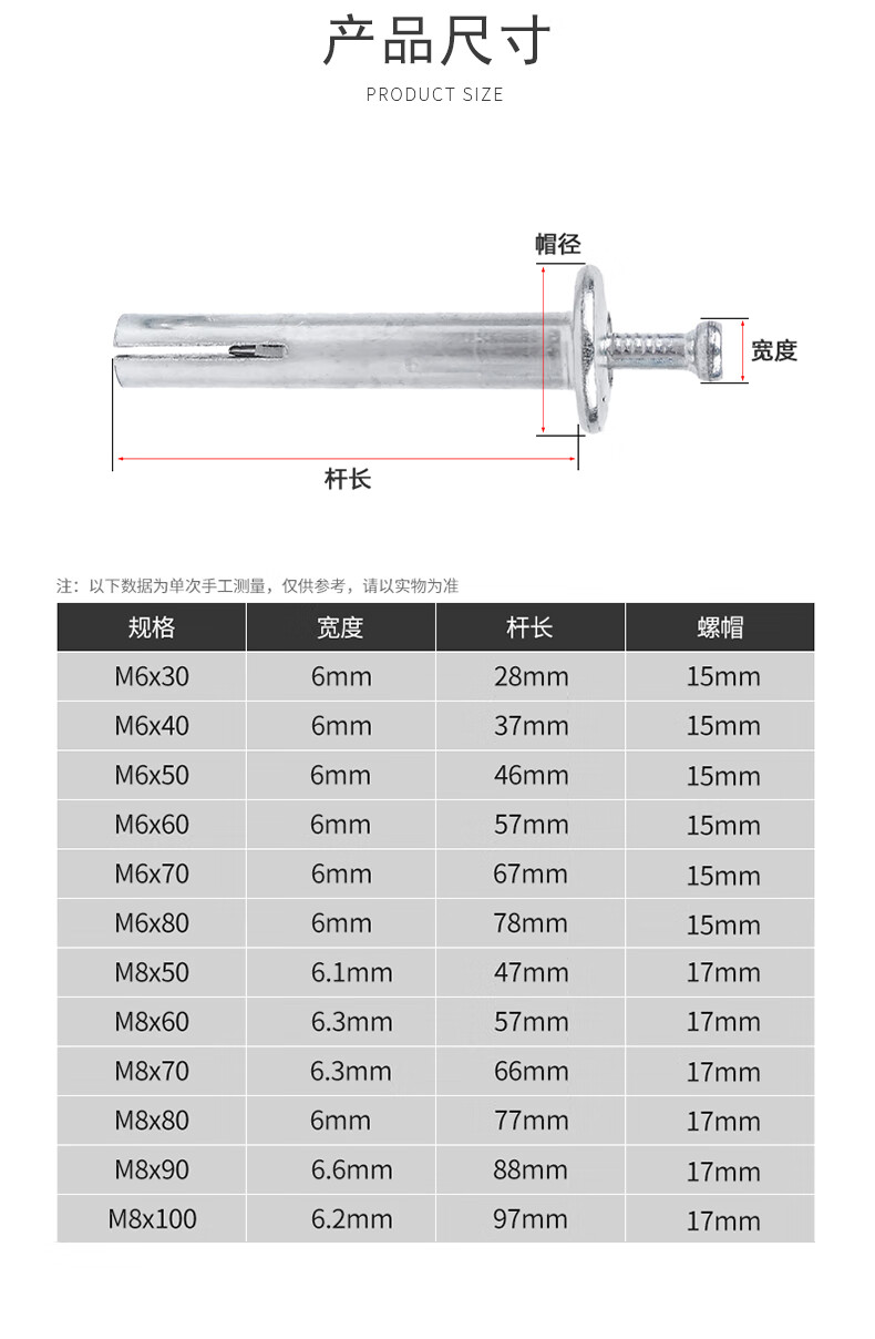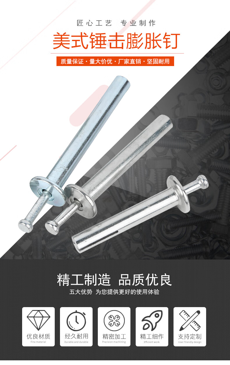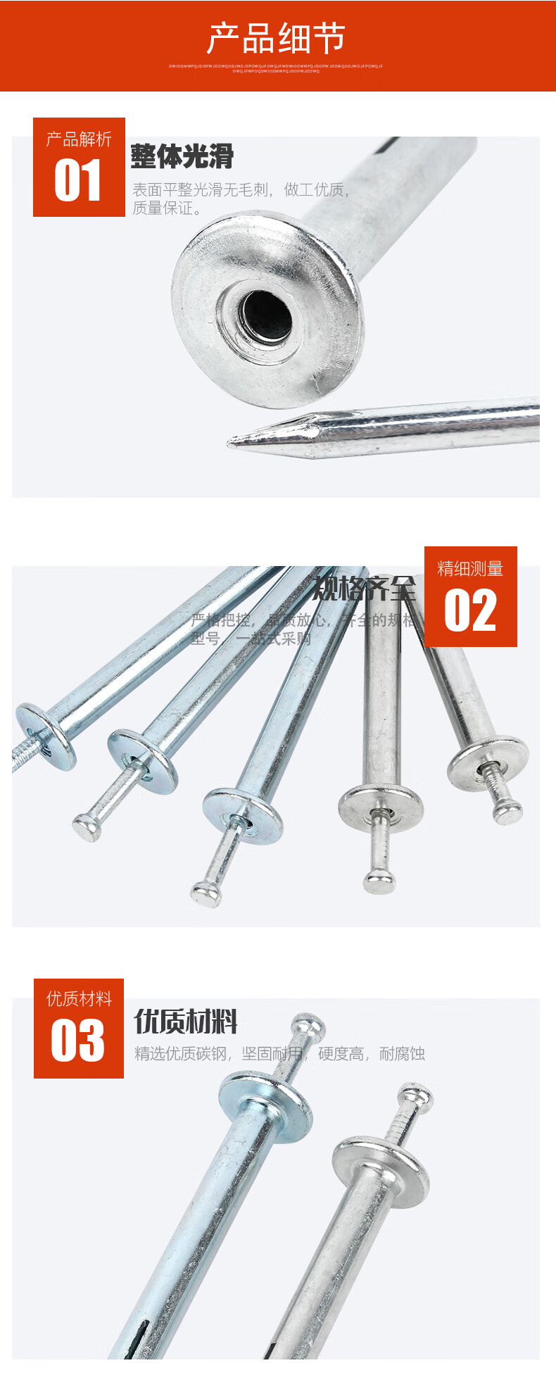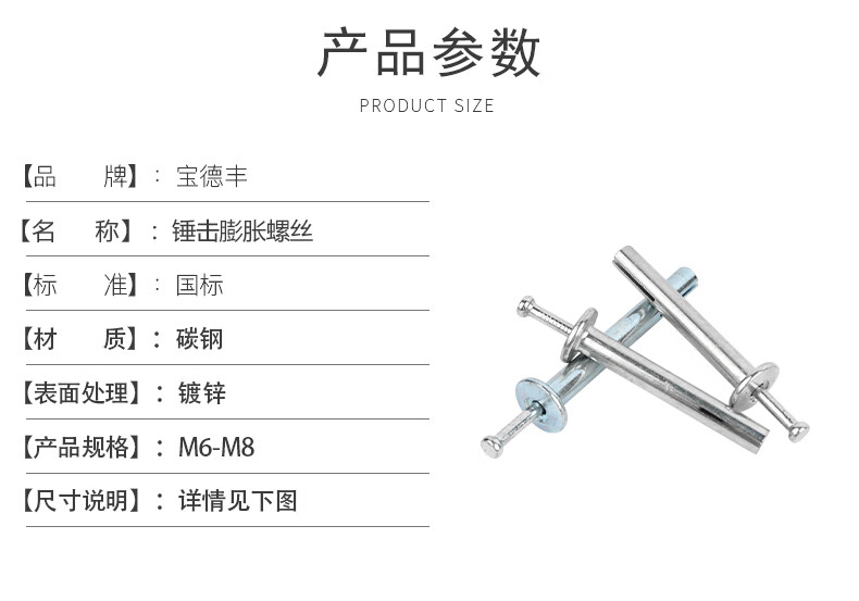 Baodefeng expansion screw driven-in percussion quick nail American large-head explosive bolt pull-explosion fixed special internal expansion nail M6x50 (10 pieces) without drill bit