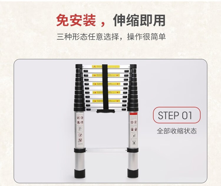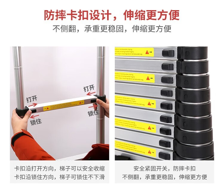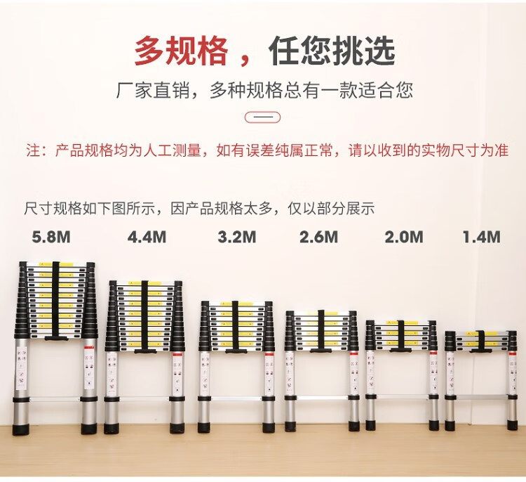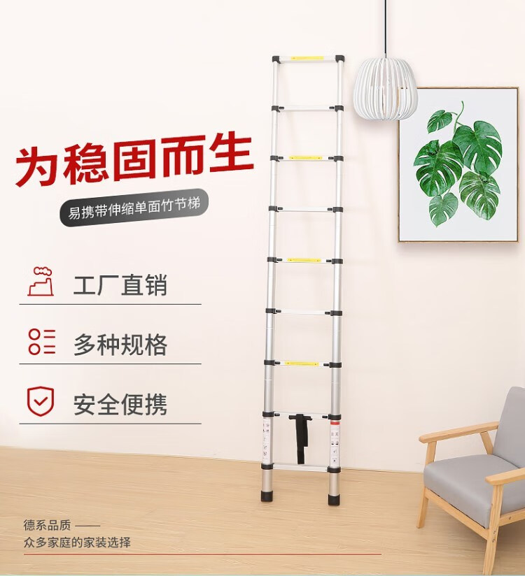 Aluminum alloy ladder thickened straight ladder 4/5/6/7 meters single-sided folding one-sided engineering telescopic ladder (German standard thickened) 8M single-sided telescopic ladder