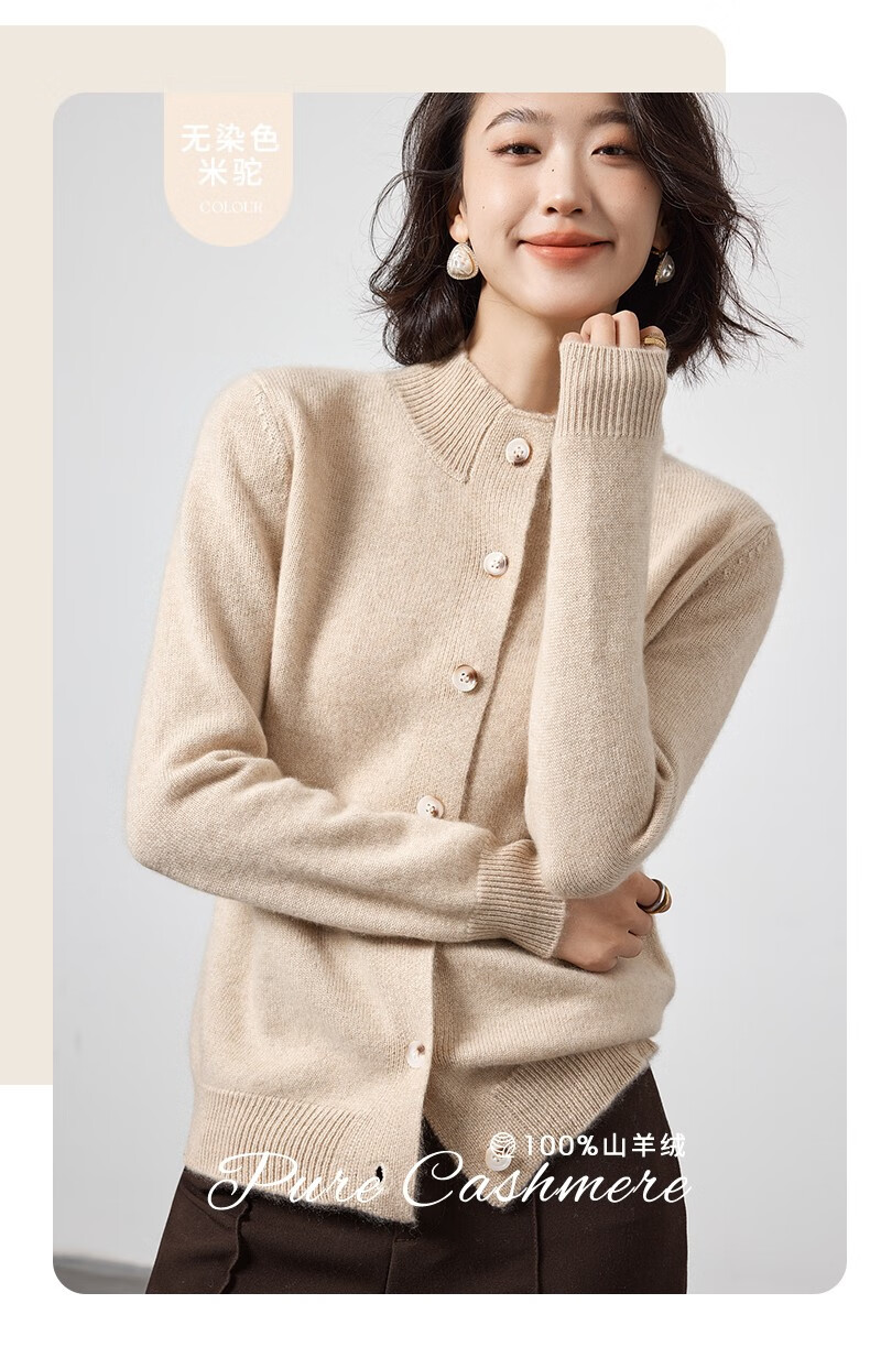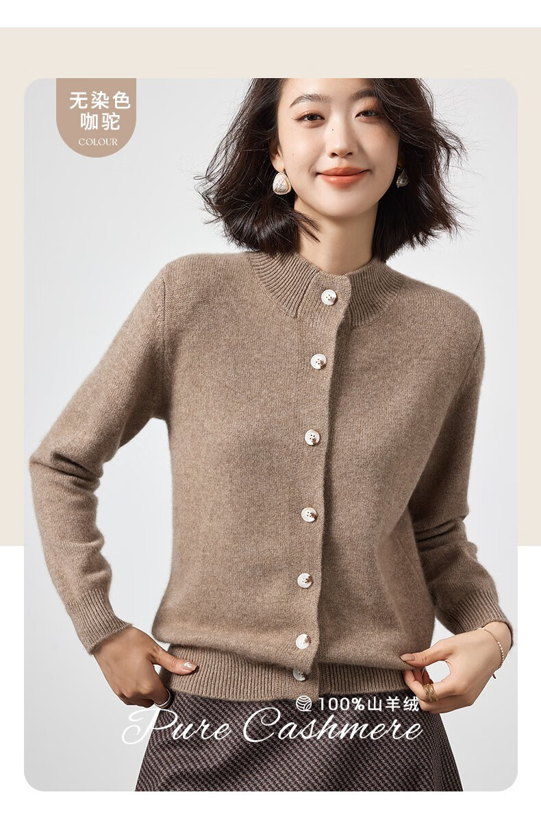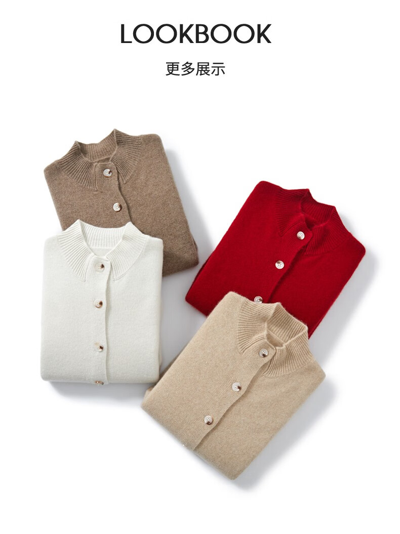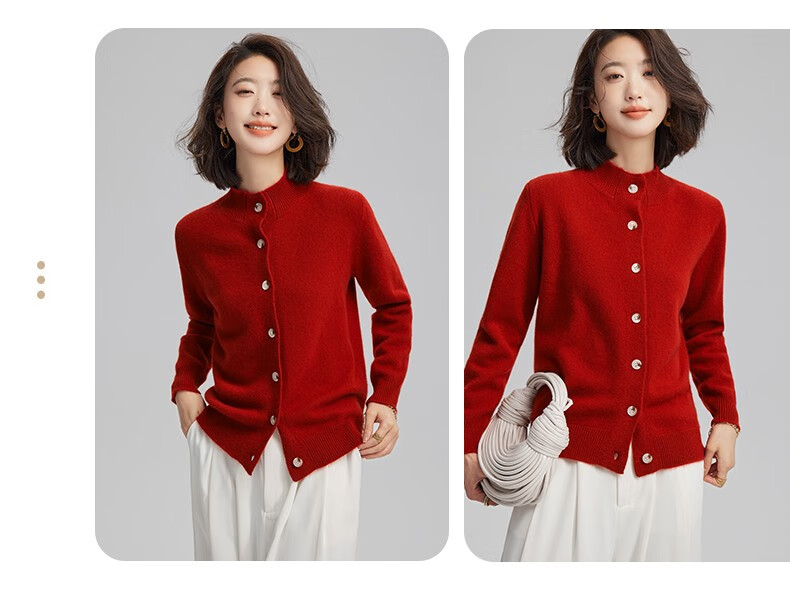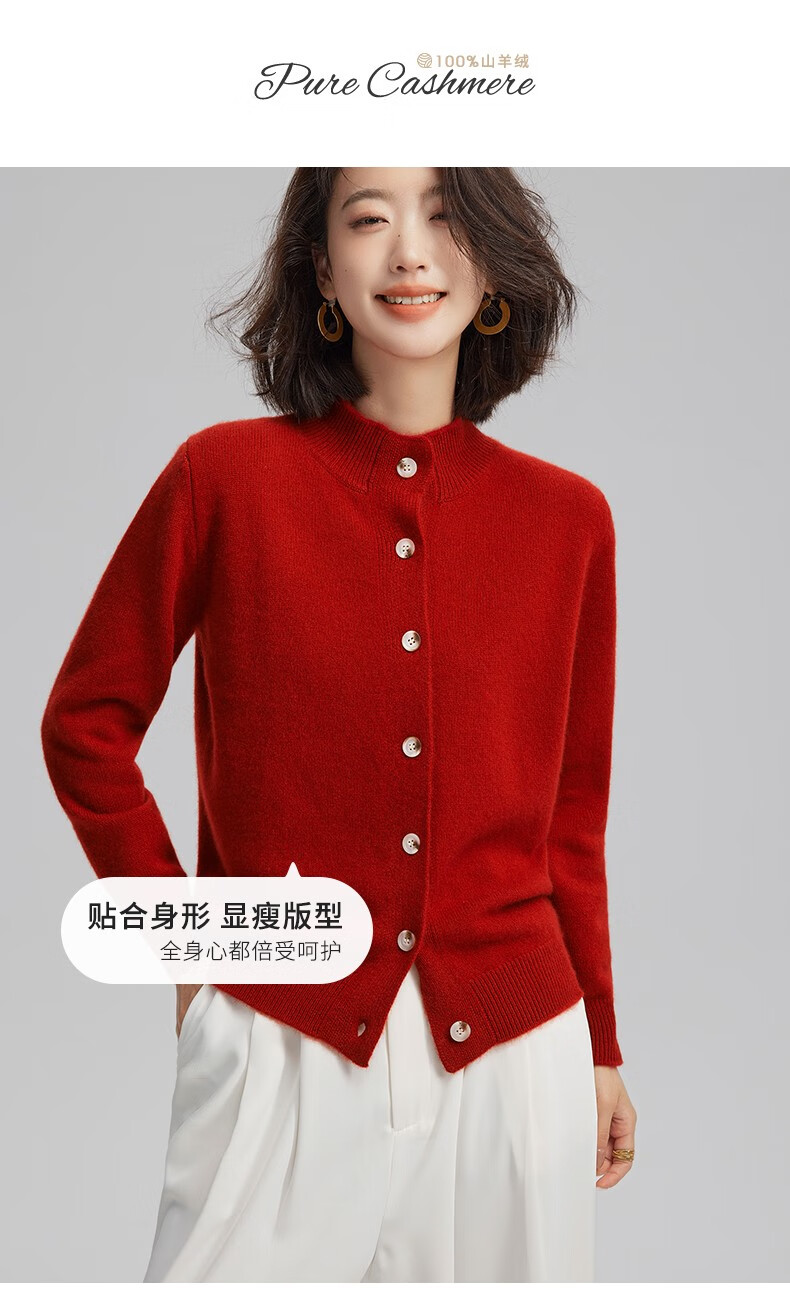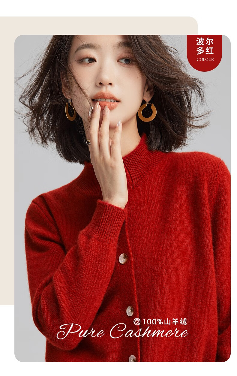 Pash Cashmere Sweater Women's Cardigan Half Turtle Collar 100% Cashmere 7-needle Thick Knitted Jacket PS-71 Bordeaux Red L (110-130 catties)