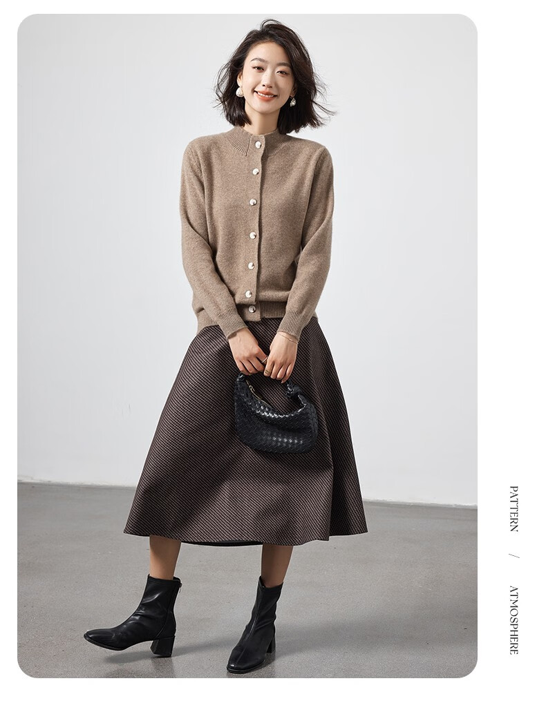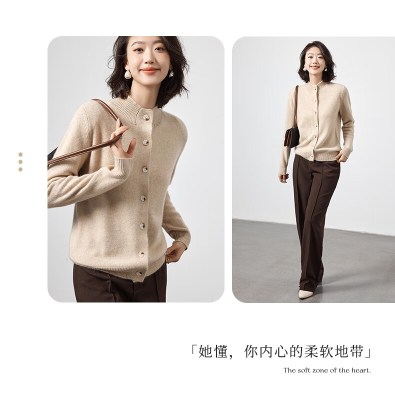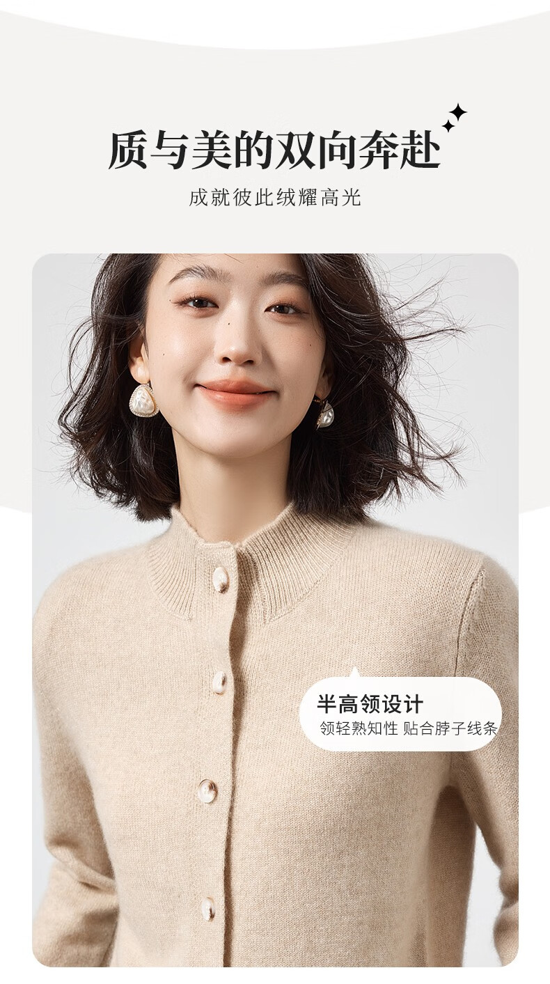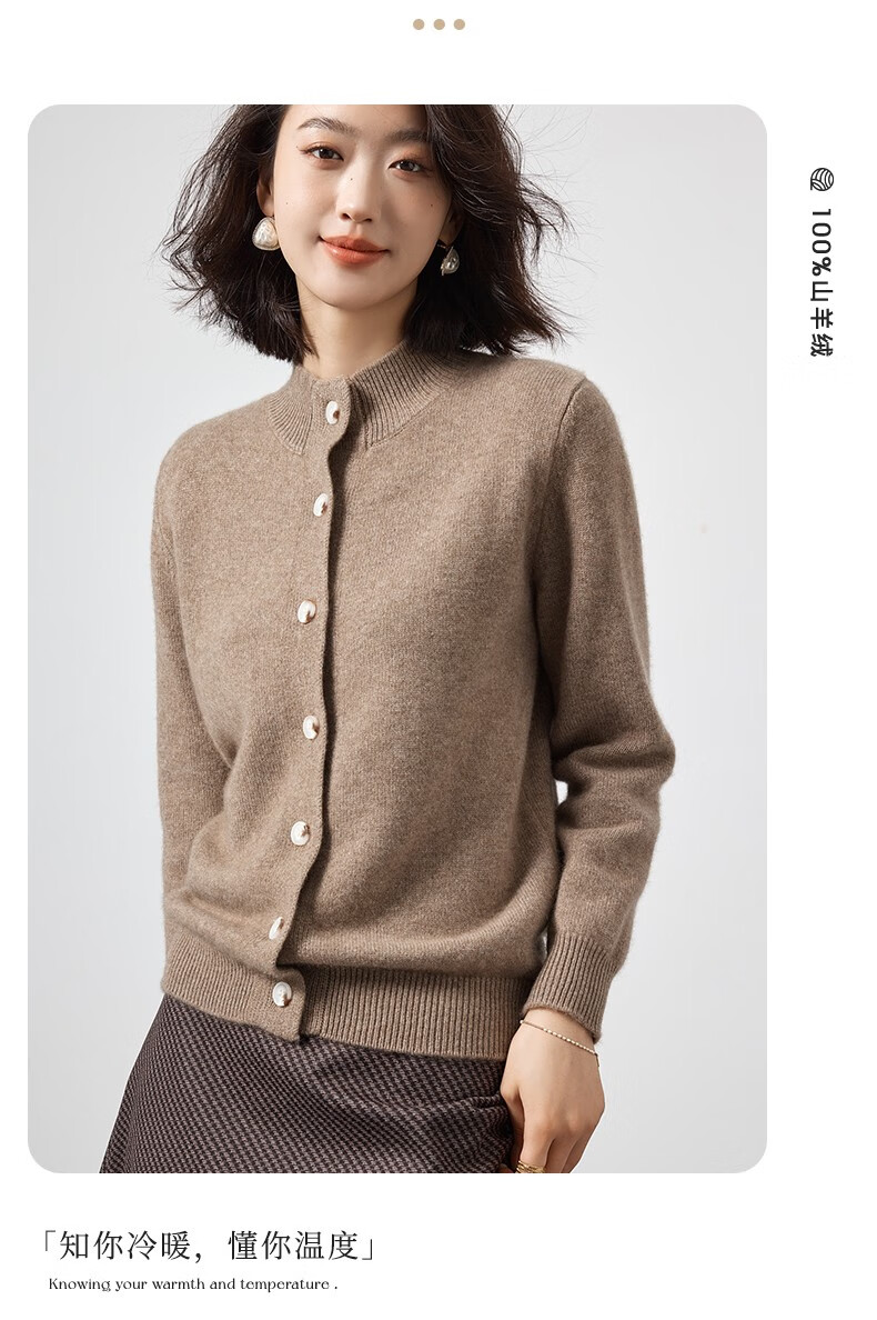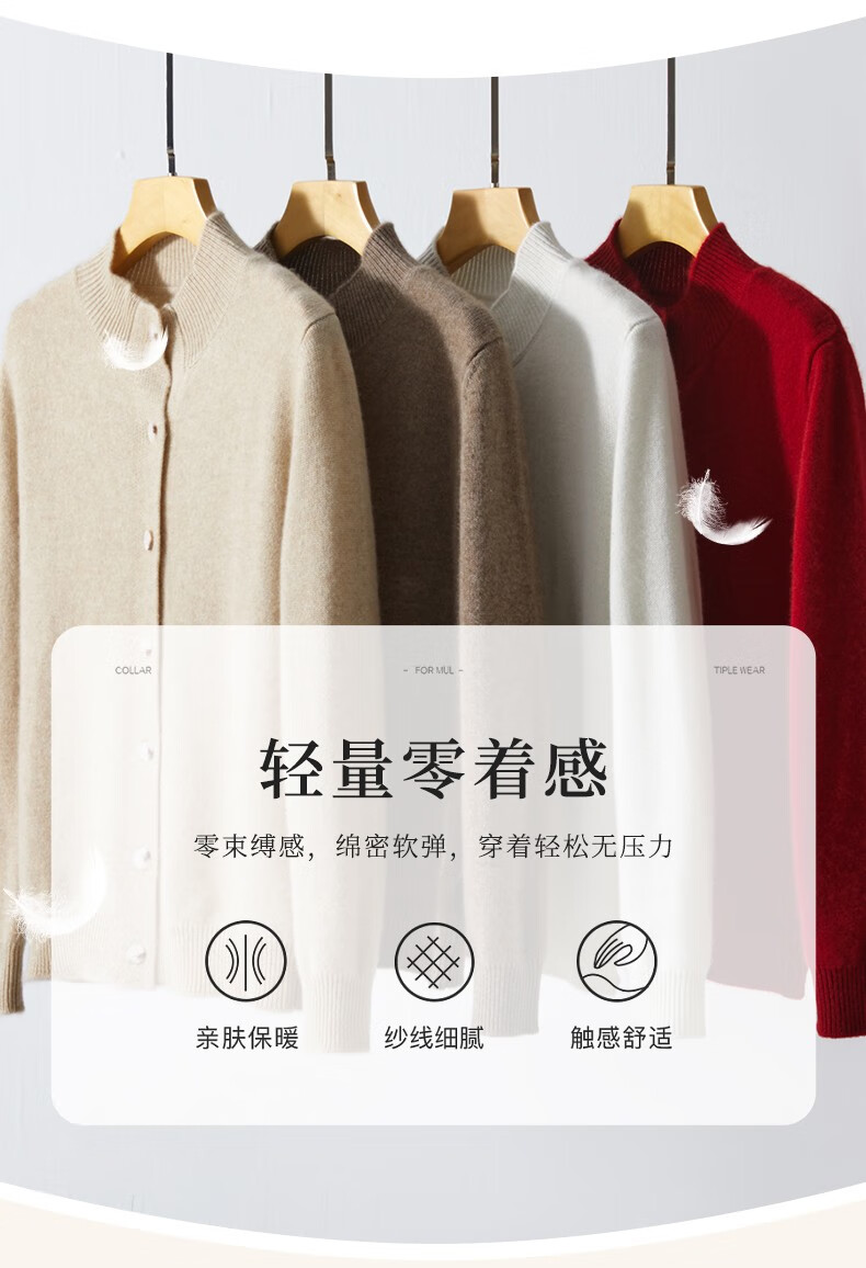 Pash Cashmere Sweater Women's Cardigan Half Turtle Collar 100% Cashmere 7-needle Thick Knitted Jacket PS-71 Bordeaux Red L (110-130 catties)