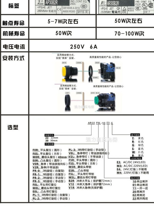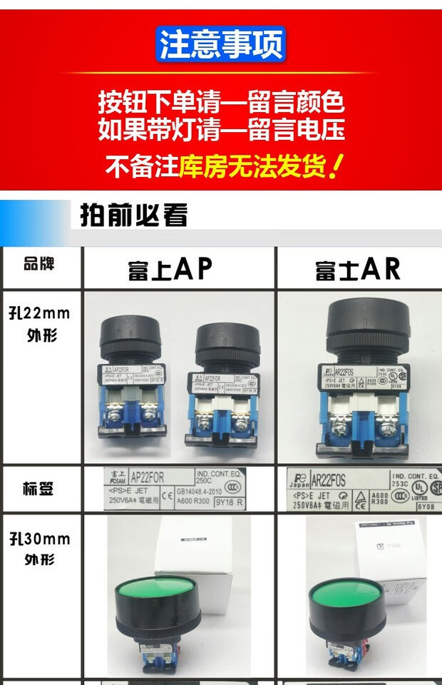72mm protective ring punch mushroom head emergency stop button switch AP/AR30V1E-11R 02R old customer model AR30V1E two normally closed (contact)