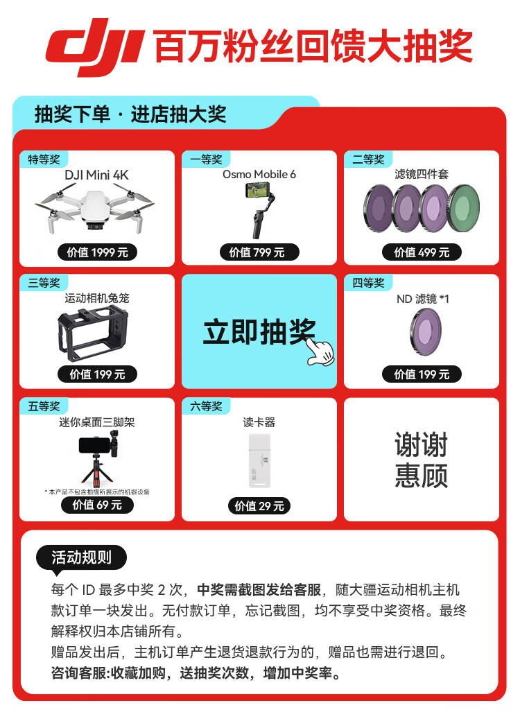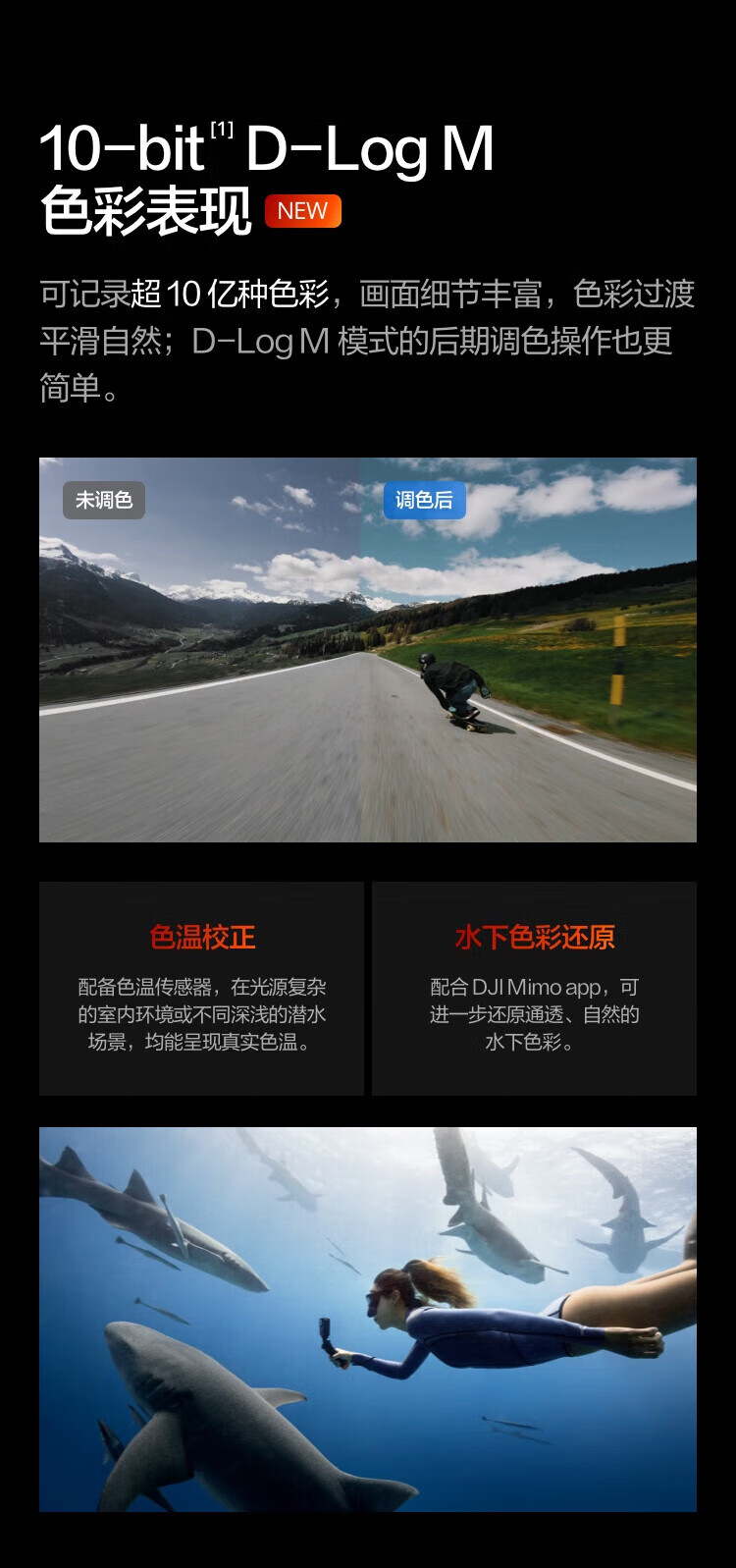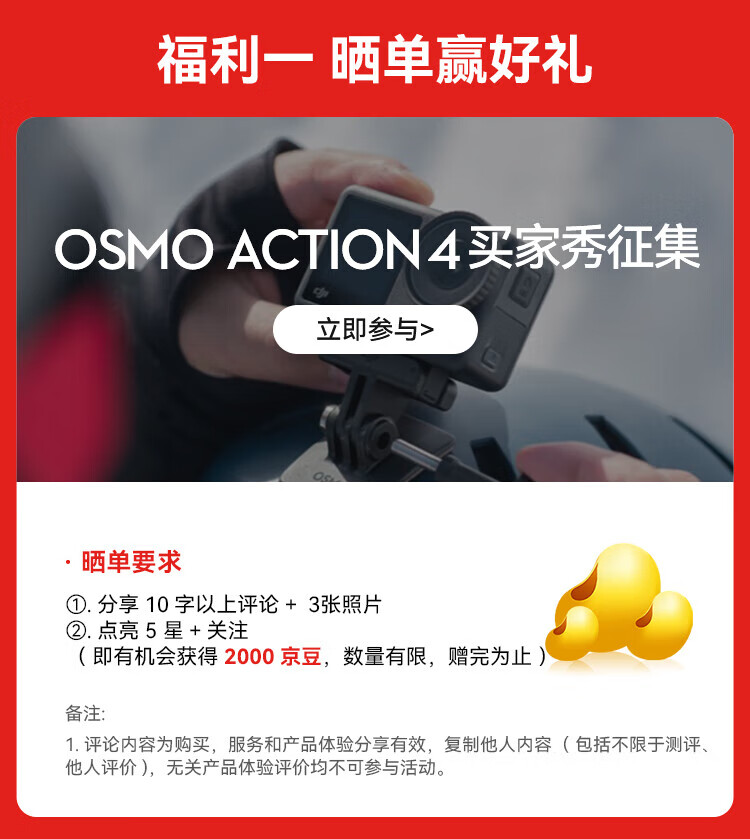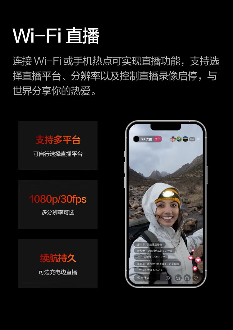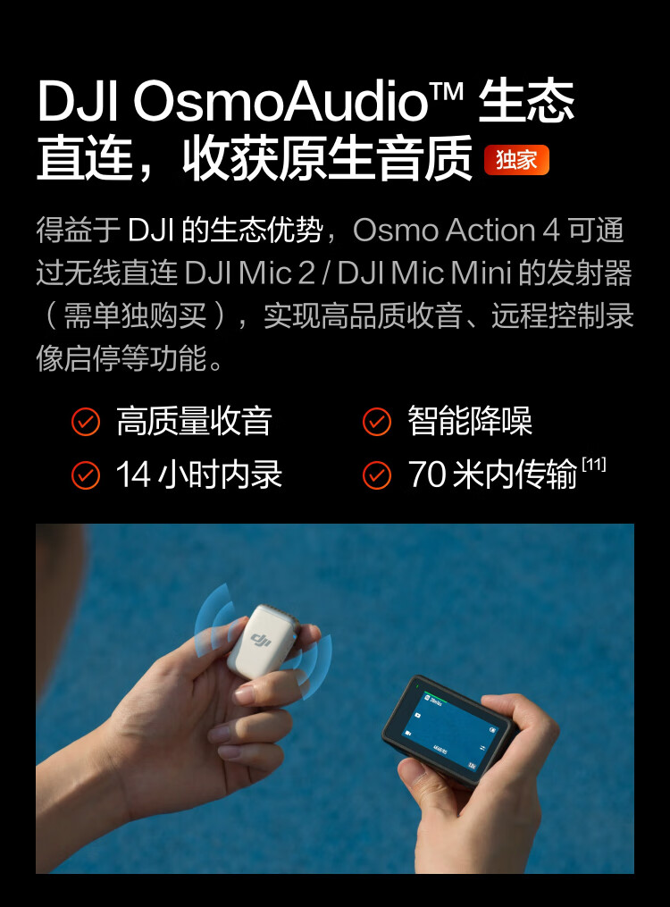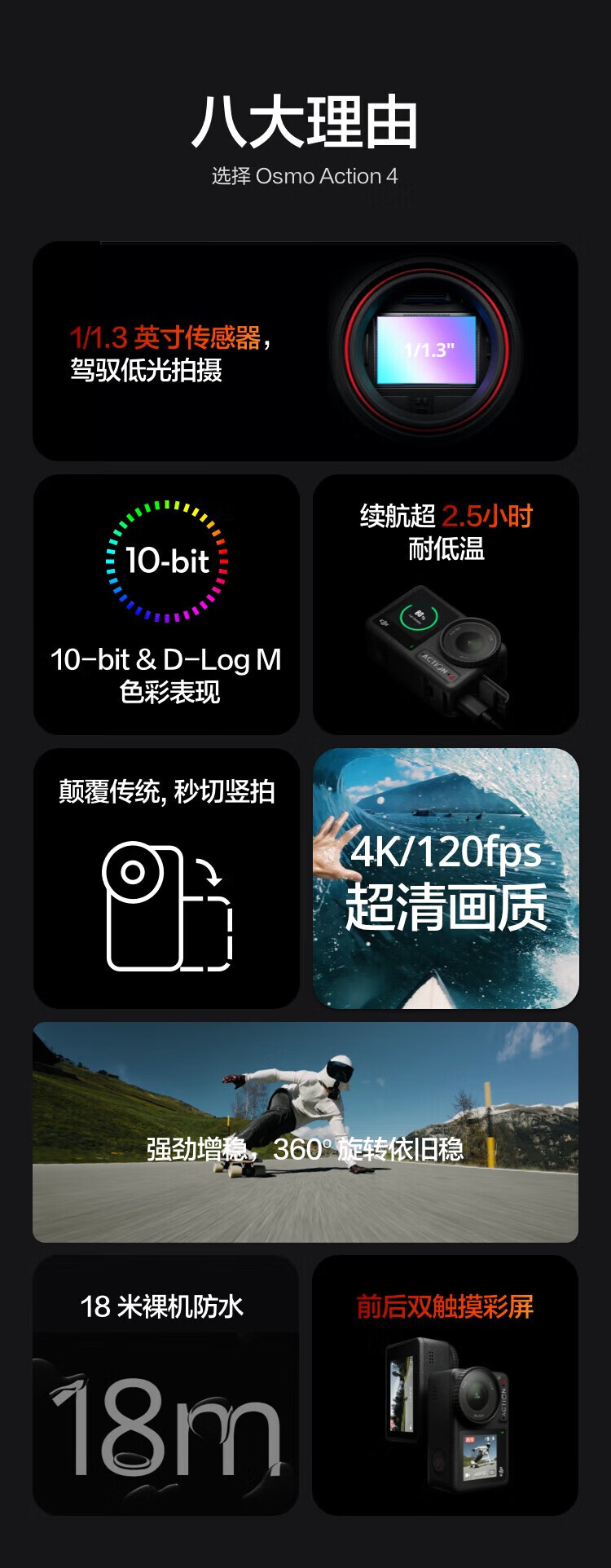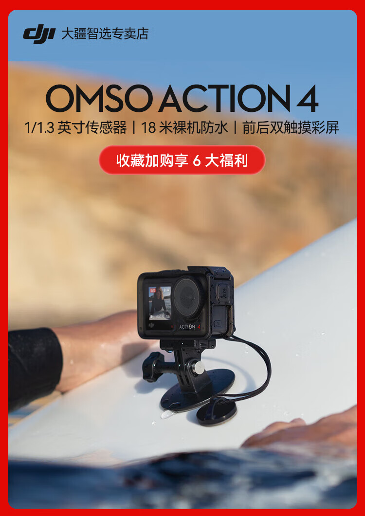DJI Osmo Action 4 action camera, motorcycle, mountain road riding, diving, anti-shake, outdoor vlog camera, standard version first-person shooting package, standard configuration (excluding optional replacement)