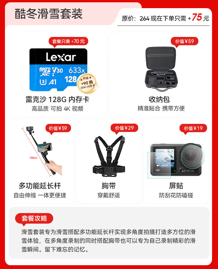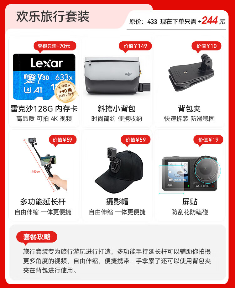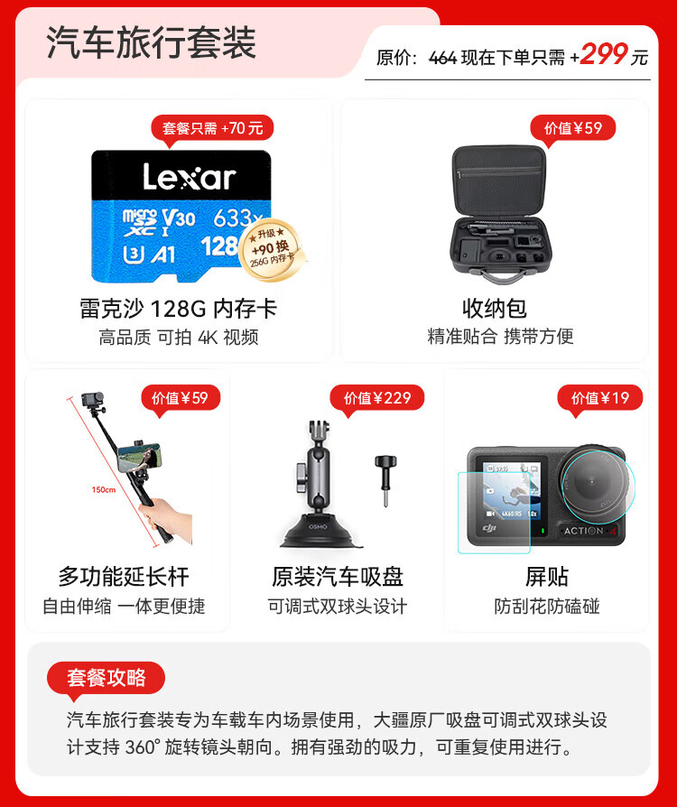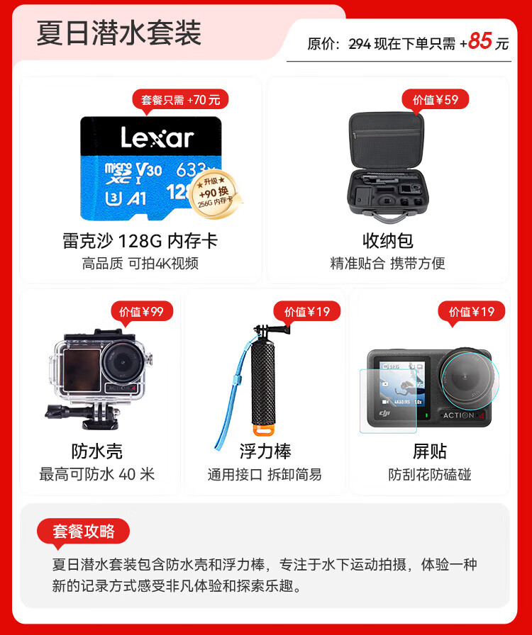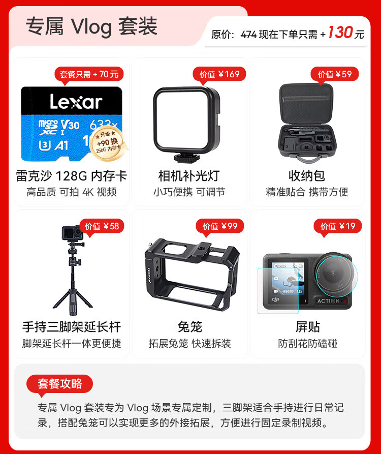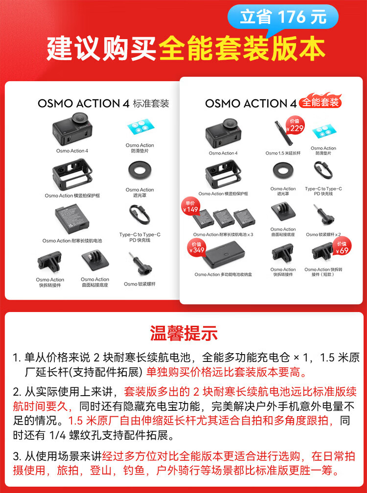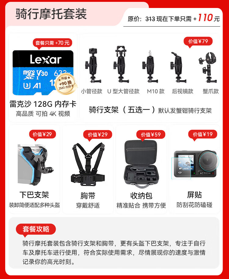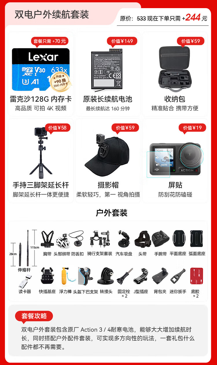DJI Osmo Action 4 action camera, motorcycle, mountain road riding, diving, anti-shake, outdoor vlog camera, standard version first-person shooting package, standard configuration (excluding optional replacement)