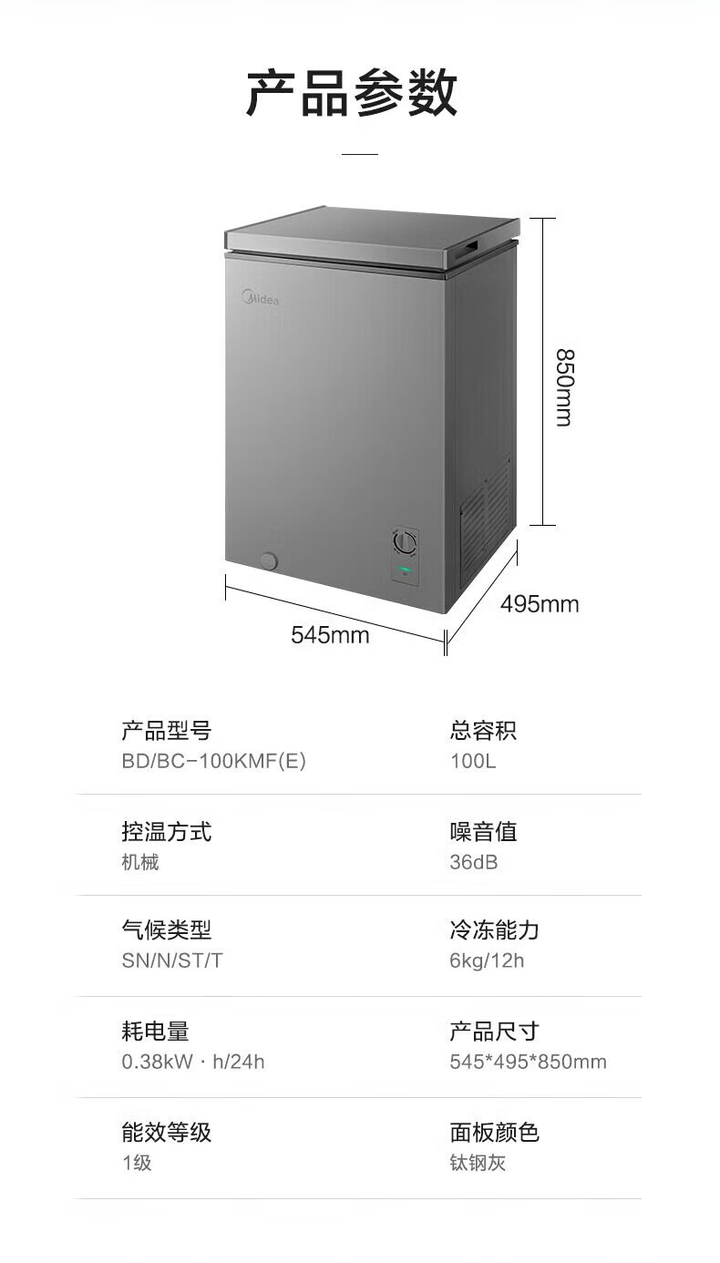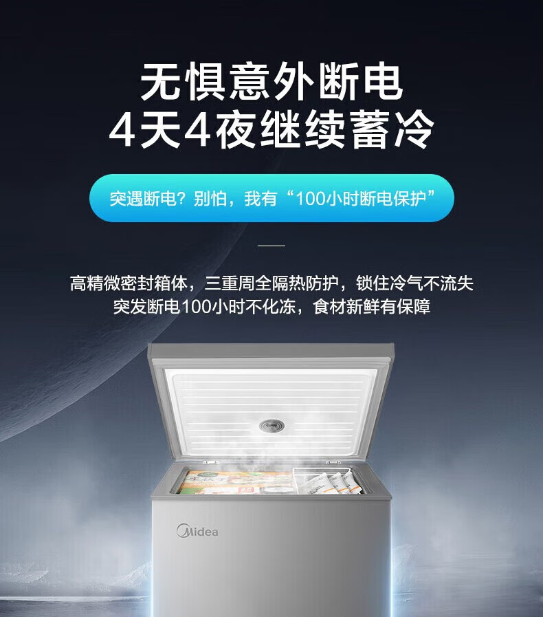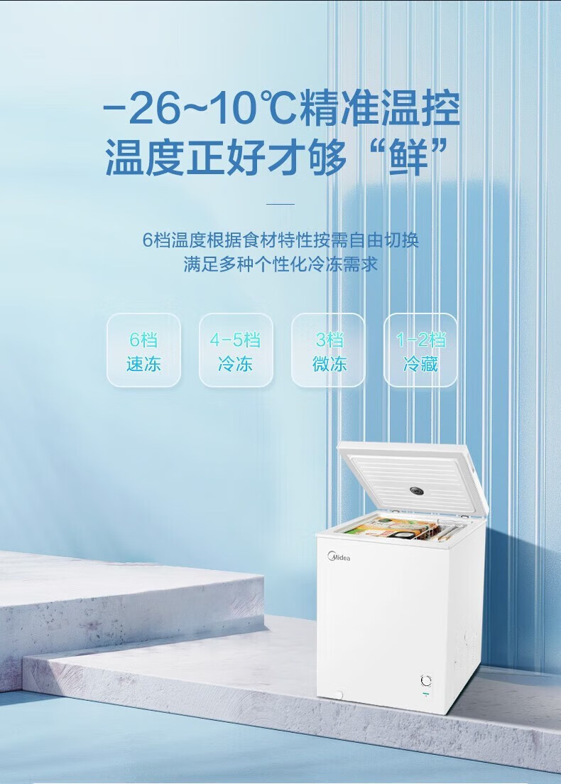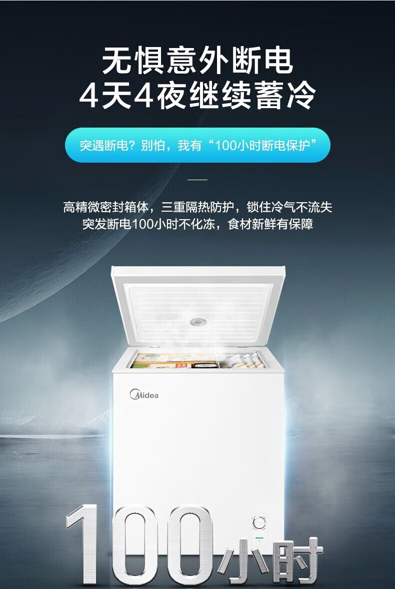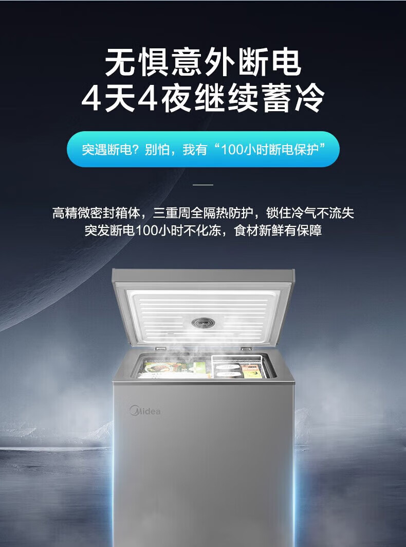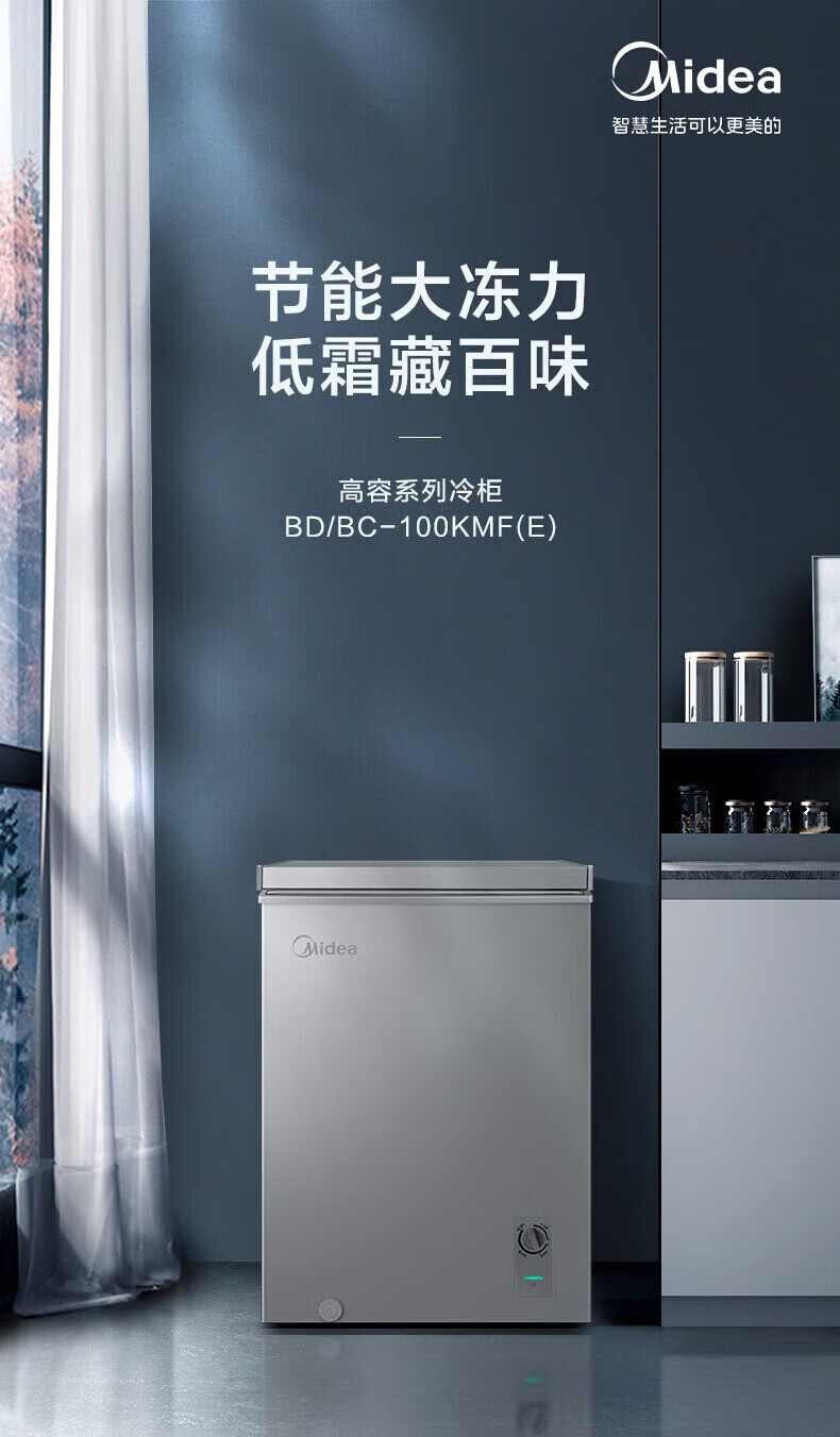 Midea upgraded anti-frost single-temperature household freezer refrigerator-freezer dual-purpose horizontal deep-freezing fresh-locking small freezer first-class energy efficiency energy-saving freezer small refrigerator BD/BC-100KMF(E) 100L