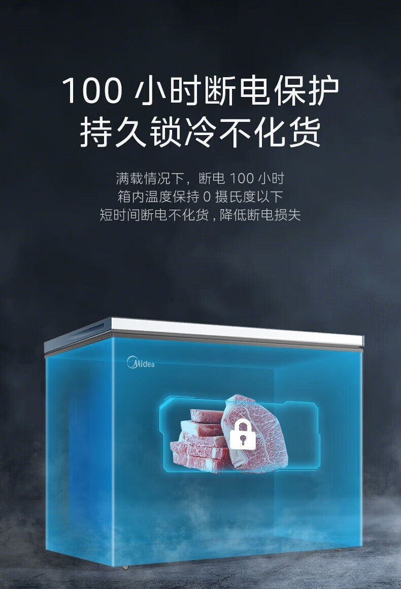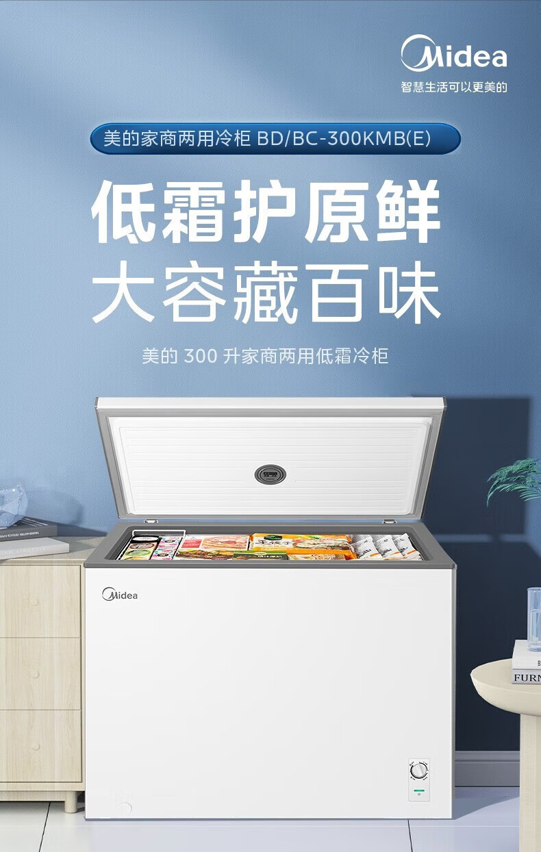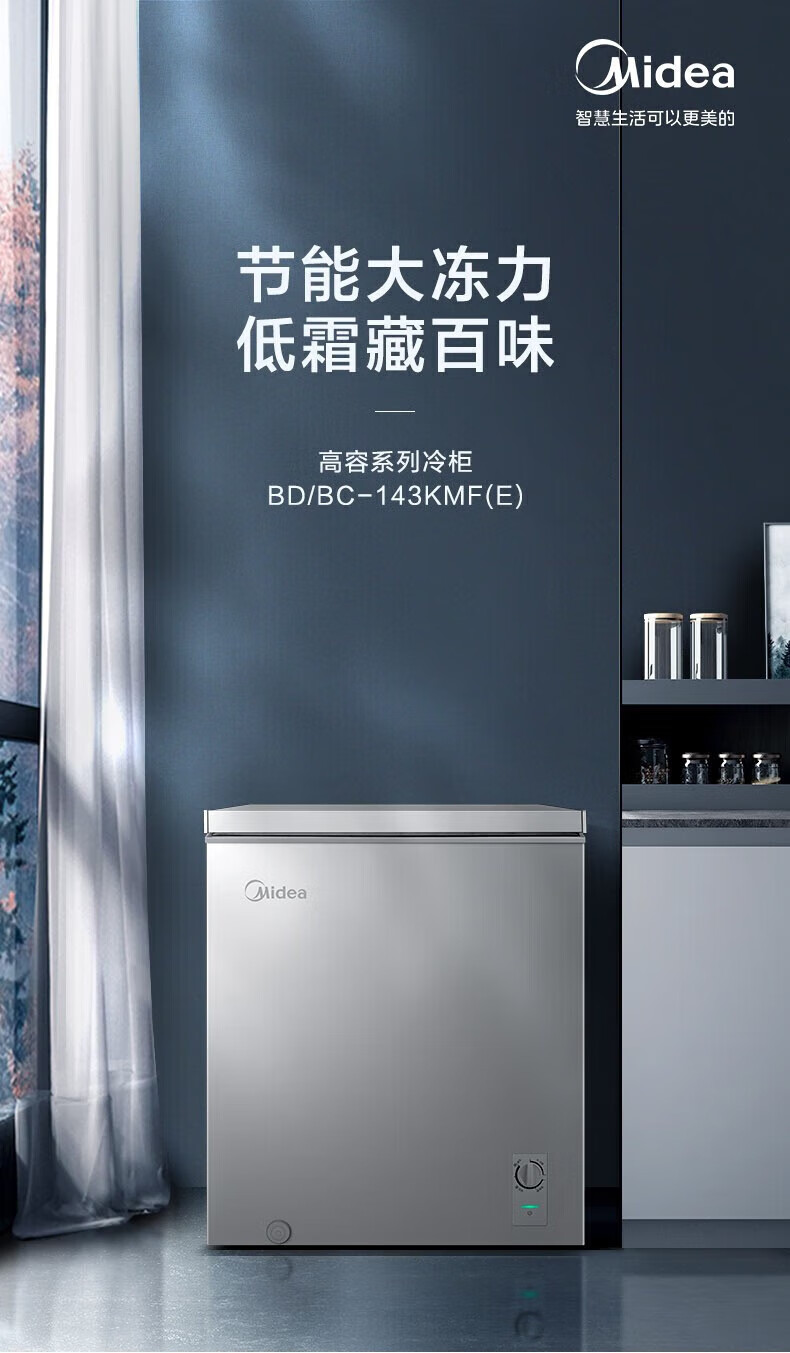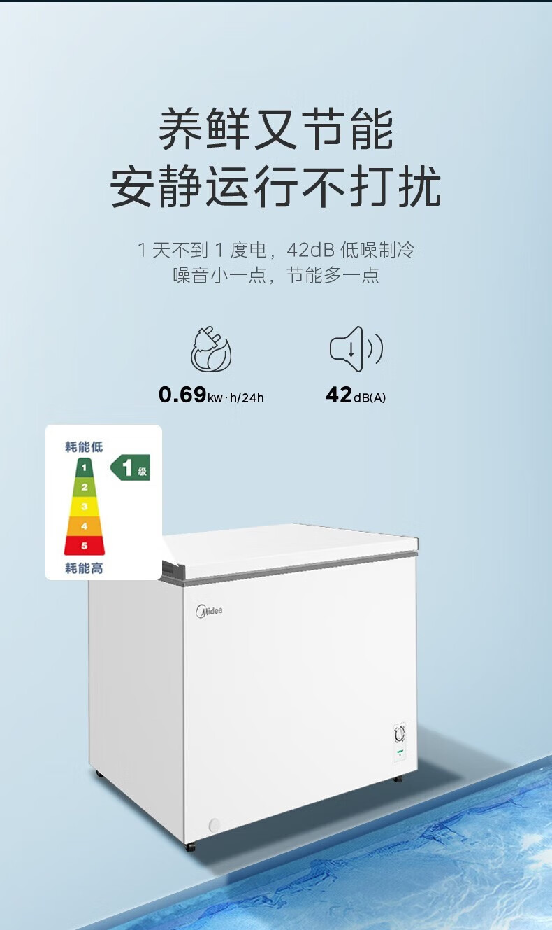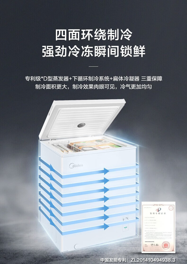Midea upgraded anti-frost single-temperature household freezer refrigerator-freezer dual-purpose horizontal deep-freezing fresh-locking small freezer first-class energy efficiency energy-saving freezer small refrigerator BD/BC-100KMF(E) 100L