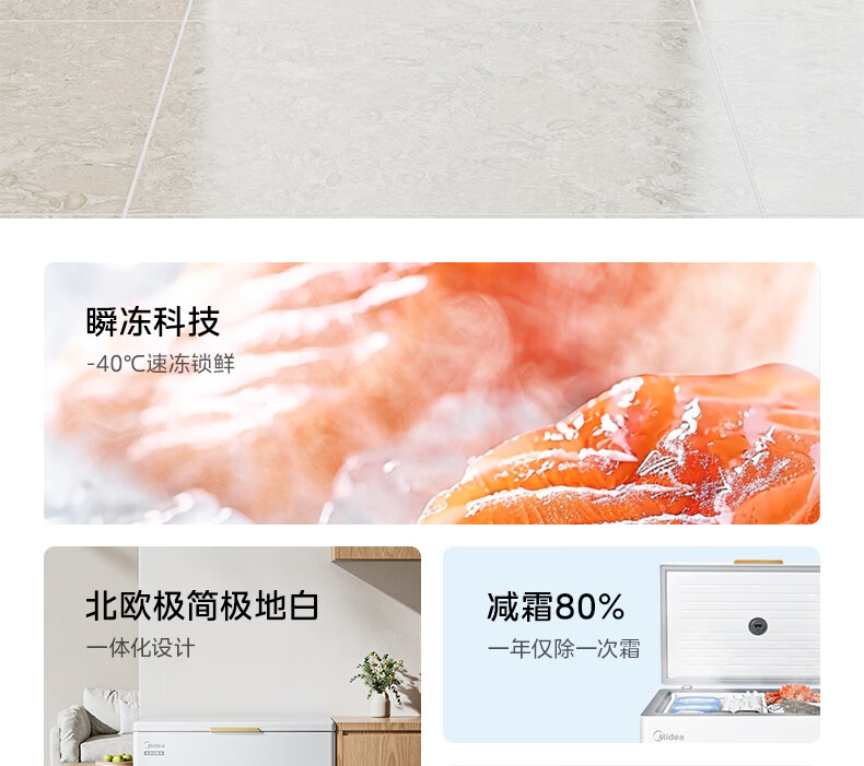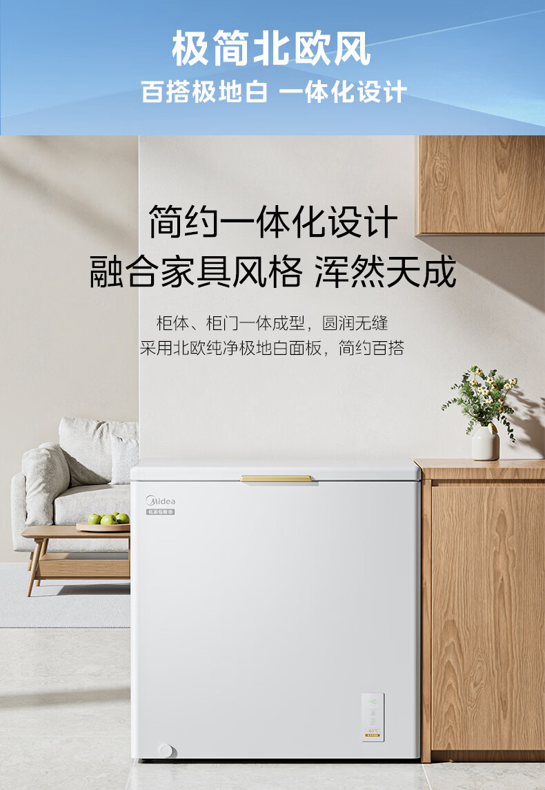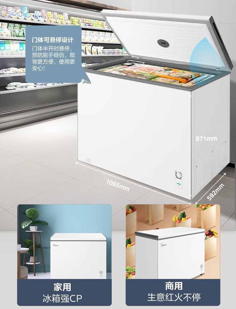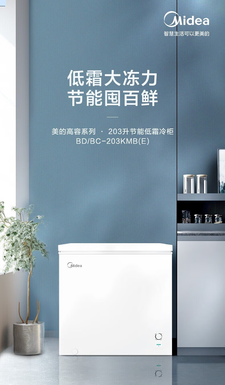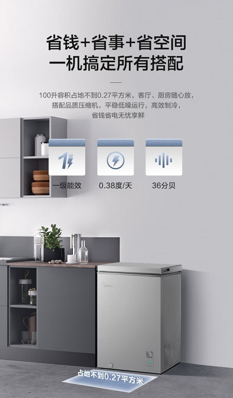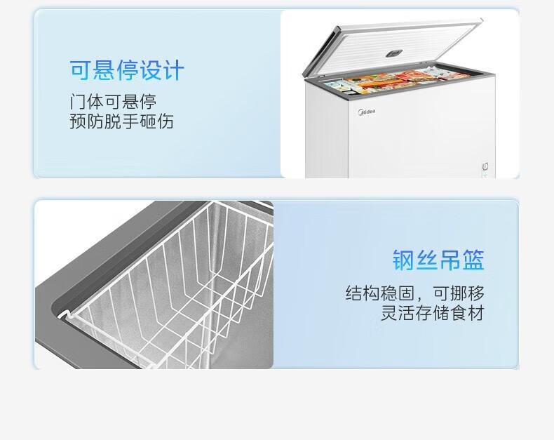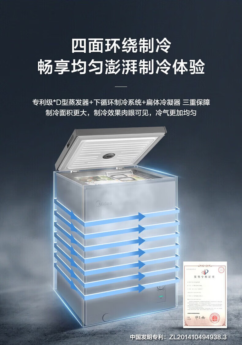 Midea upgraded anti-frost single-temperature household freezer refrigerator-freezer dual-purpose horizontal deep-freezing fresh-locking small freezer first-class energy efficiency energy-saving freezer small refrigerator BD/BC-100KMF(E) 100L